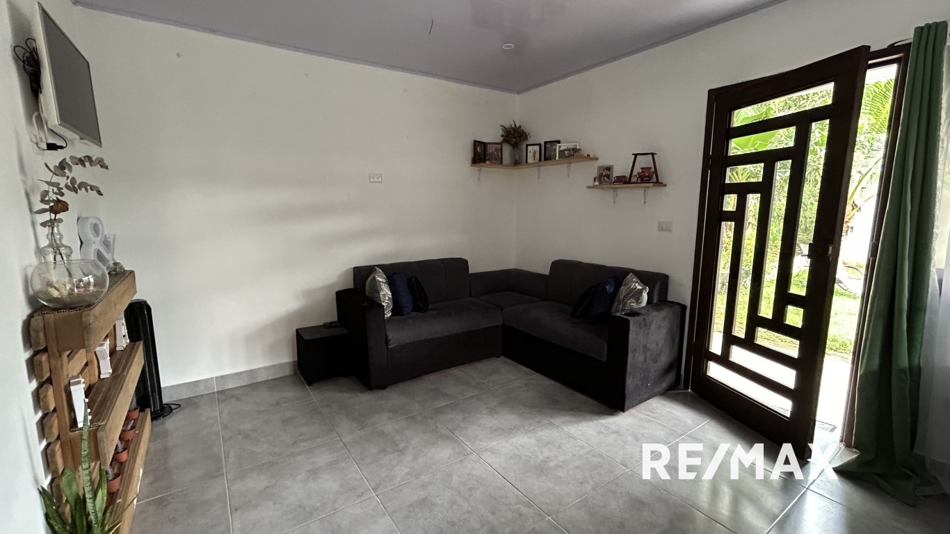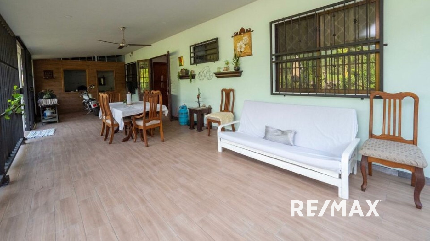 La casa principal de 185m2 fue construida en 2020. Tiene 3 habitaciones, 2 baños, cocina y sala de estar compartiendo un área abierta con techos altos. Aire acondicionado de tipo inverter nuevo en cada habitación. Terraza techada en la parte de atrás + una linda área verde donde podrás hacer tu propio jardín! Un gran garaje completa la casa. Esta casa se venderá completamente amueblada con algunas excepciones menores.