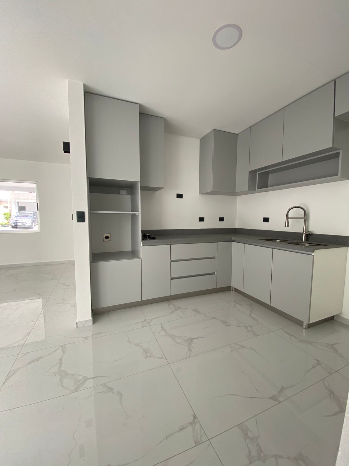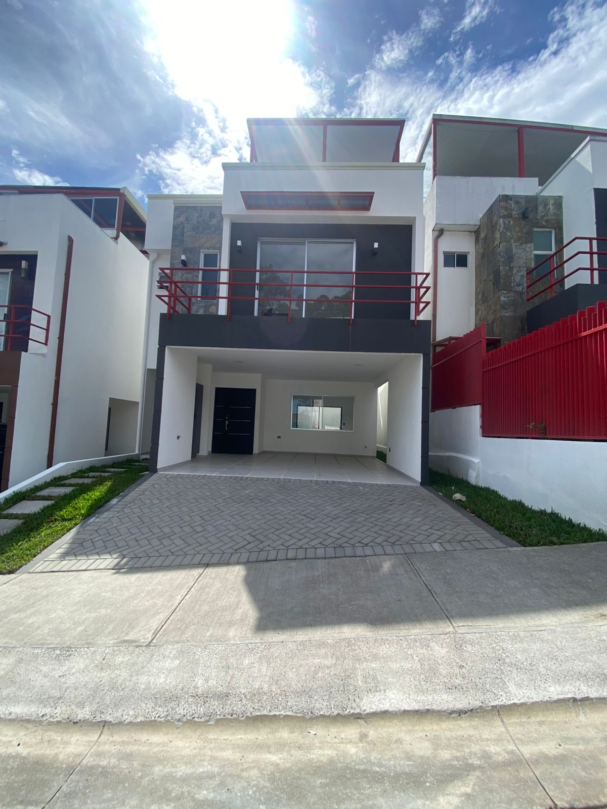 Located in the Socorro neighborhood of Santo Domingo de Heredia, this brand-new house is for sale in a modern condominium. Easy access via Route 32 or Tibás to schools, universities, shopping centers, and malls (Plaza Lincoln, Mall San Pedro, and Paseo de las Flores). Three-story house built of block and concrete. The 183 m² building sits on a 126 m² lot with luxury finishes.
