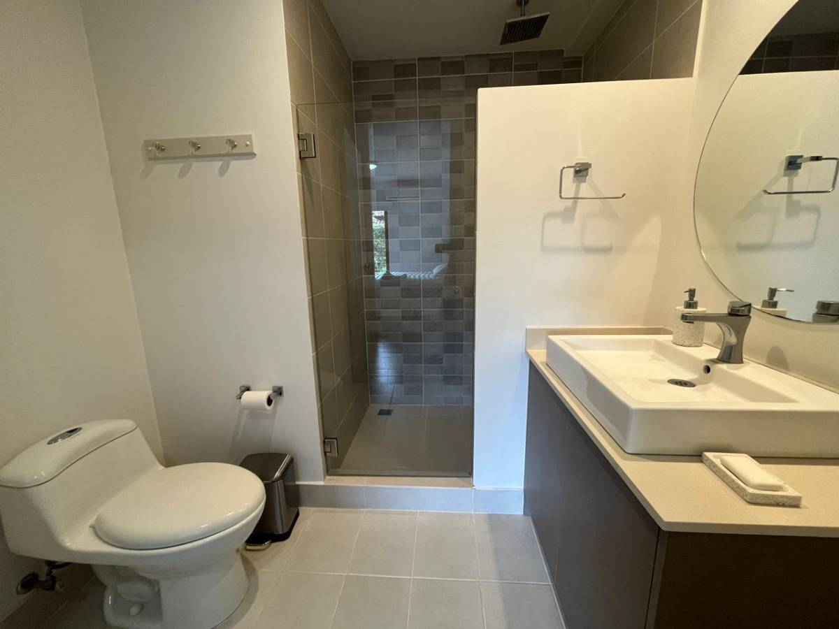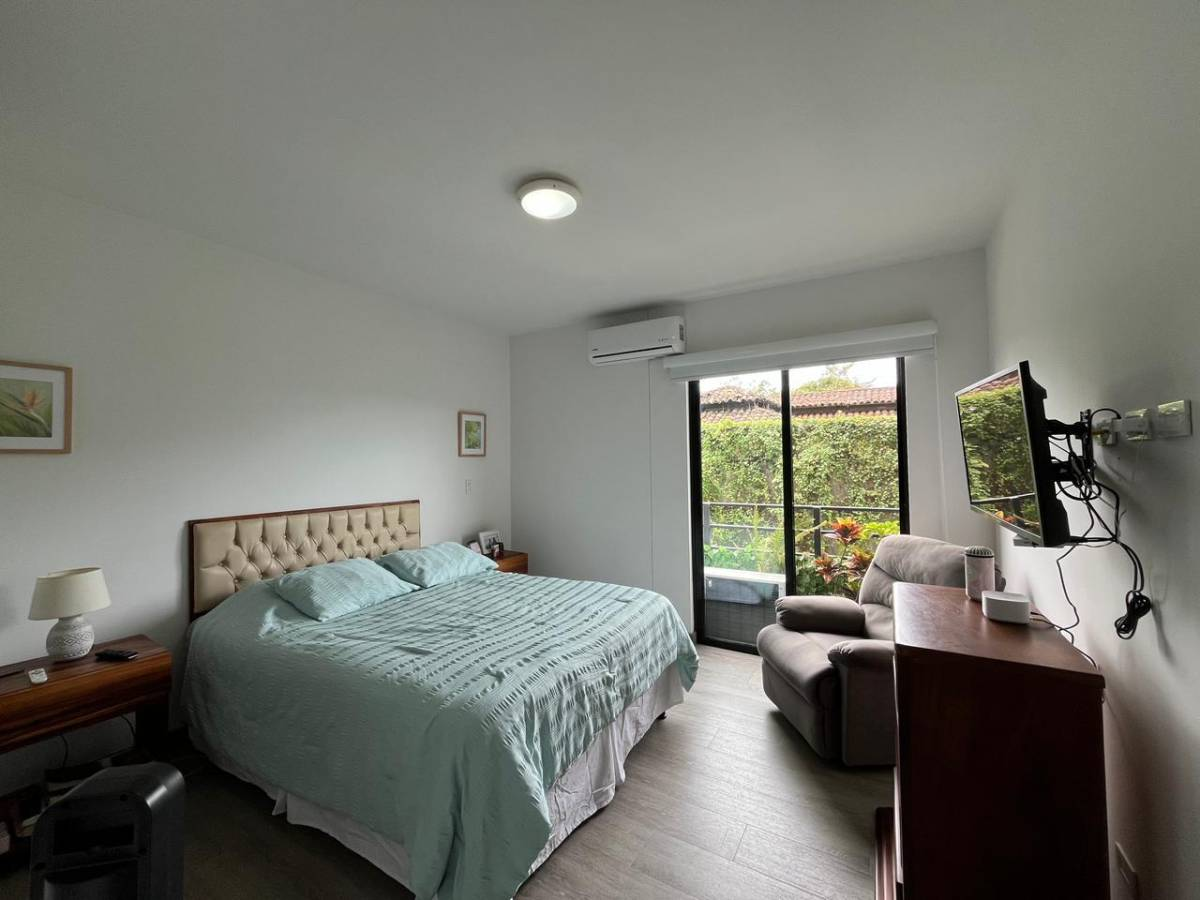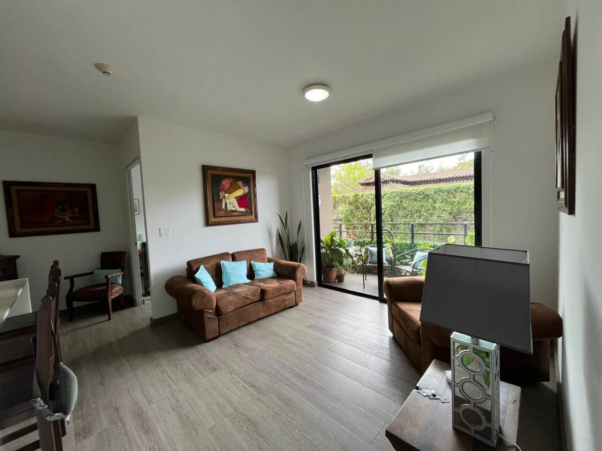 Beautiful apartment for sale in a condominium in Brasil de Santa Ana, San José. 85 m² of construction on one level, built with concrete blocks and cement with laminate flooring.