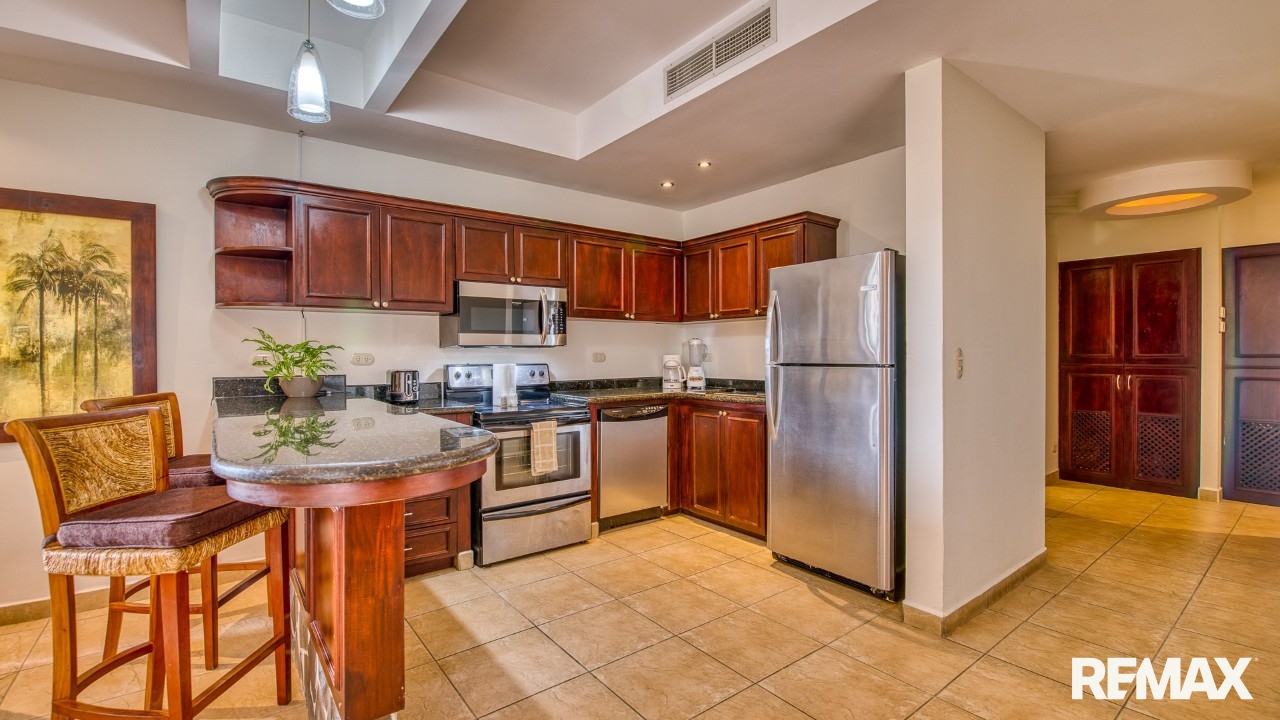 The open-concept living area boasts hardwood cabinetry, stainless steel appliances, making it perfect for entertaining or simply enjoying your tropical escape.