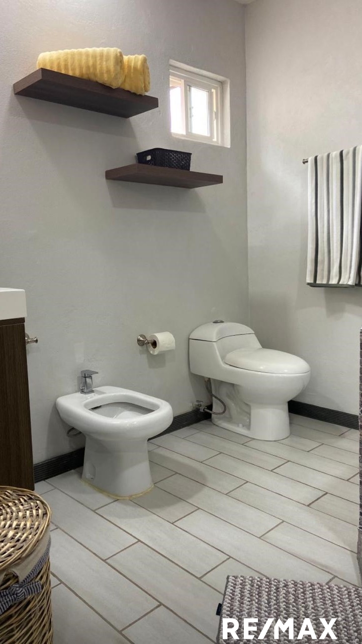 2 baños completos: uno privado en la habitación principal y otro compartido para las habitaciones secundarias.