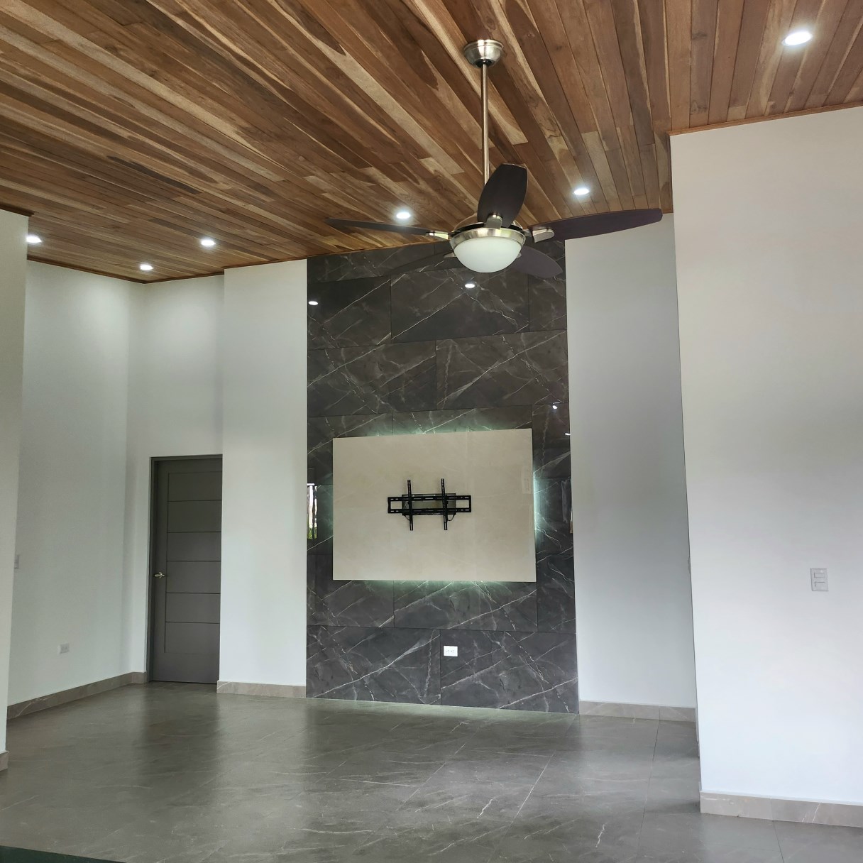 La casa esta construida en block con sobres de cocina de granito y muebles de cocina modernos. Tiene techo artesanado y abanicos de techo en todas las abitaciones. Una moderna pared iluminada adorna el centro de la casa lista para tu TV y crear una hermosa area de entrenenimiento. Tiene un amplio patio cubierto y area verde cmpletamente cercada.