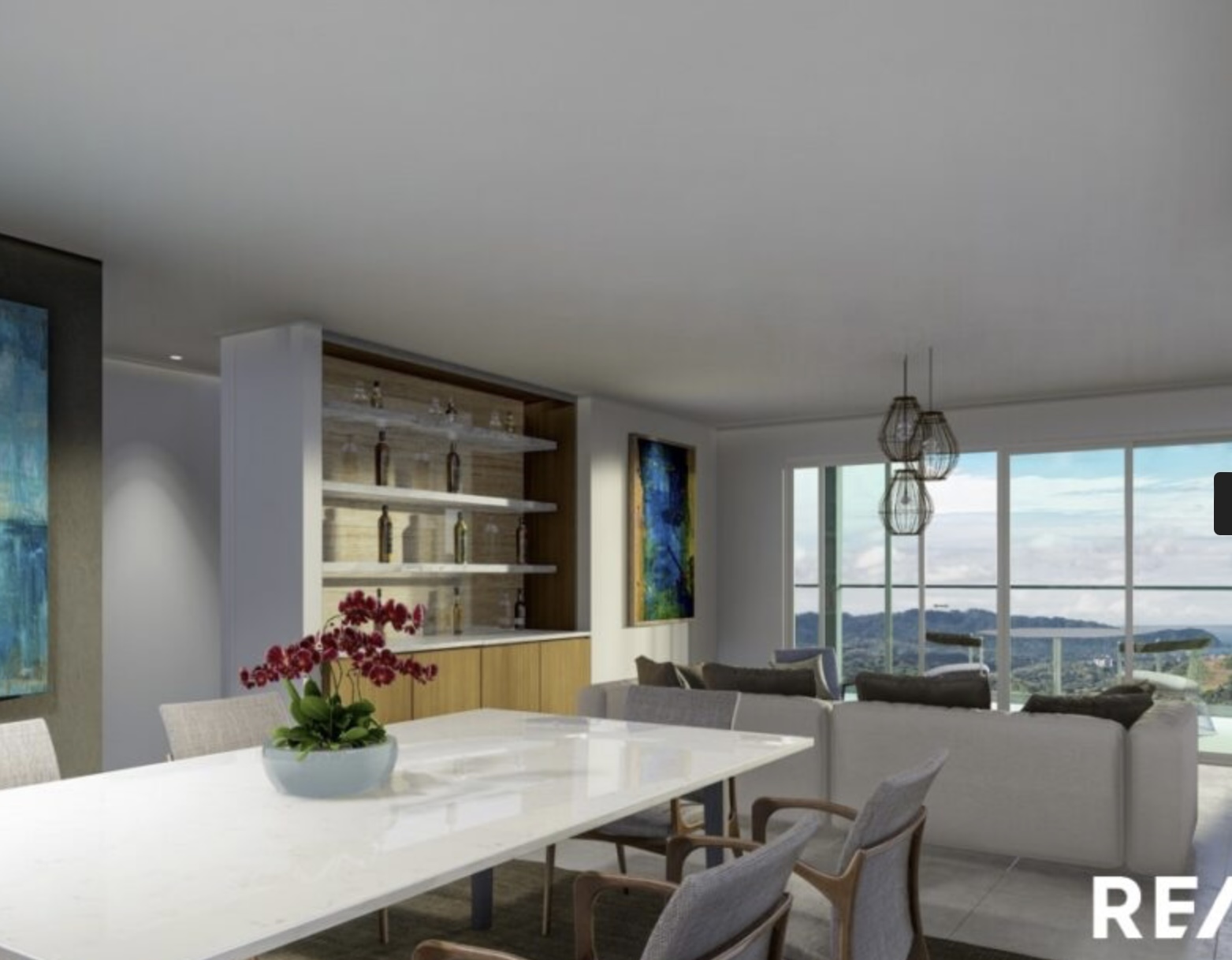 Cocina Gourmet: La cocina, totalmente equipada con electrodomésticos de acero inoxidable de alta gama, hermosos acabados en los mármoles y gabinetes personalizados, es perfecta para crear platos gourmet o simplemente disfrutar de un café por la mañana mientras contemplas la vista.