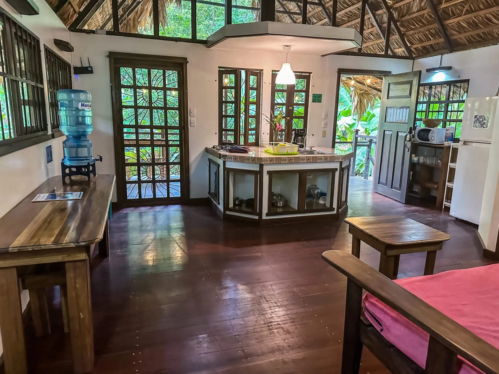 Located in Playa Negra, the house is just 5 minutes from the beach and 15 minutes from downtown Puerto Viejo, close to town yet far enough away to enjoy the peace and quiet of the jungle.