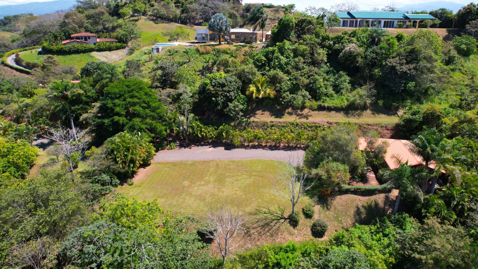 Más adentro de la propiedad, se encuentra una gran área de construcción con impresionantes vistas, ideal para cualquier tamaño de construcción que se ubicaría entre ambas casas con una gran área plana. La propiedad desciende por debajo de esta área y también tiene una parte superior del lote por encima de esta área de construcción. La propiedad está llena de exuberantes jardines tropicales maduros en todas partes.