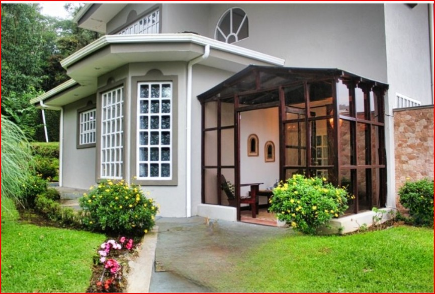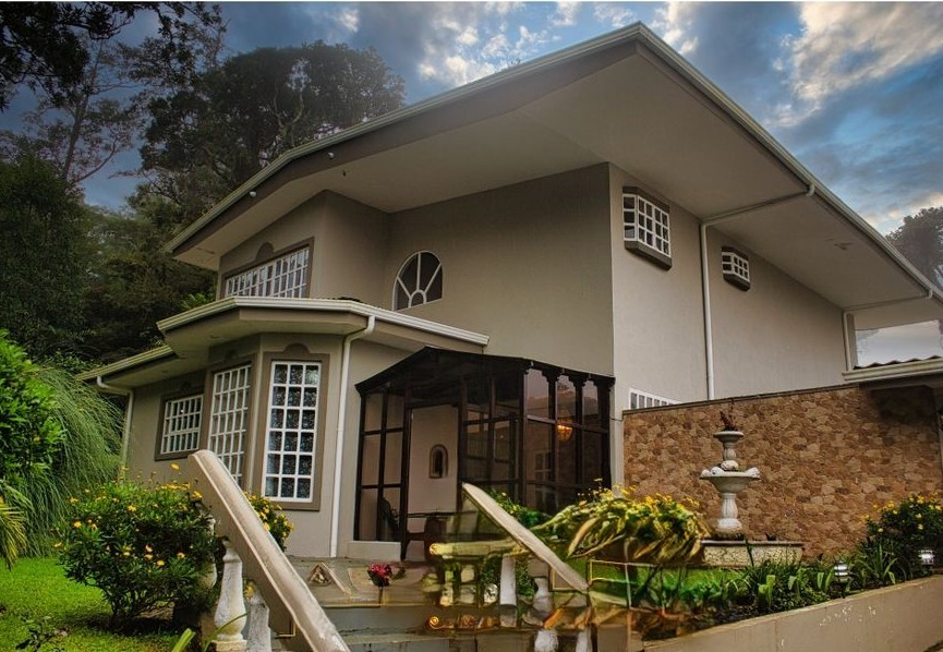Beautiful house in the mountains of Heredia, with mountain views, a garden surrounded by a crystal-clear river, beautiful gardens, and a covered barbecue area.