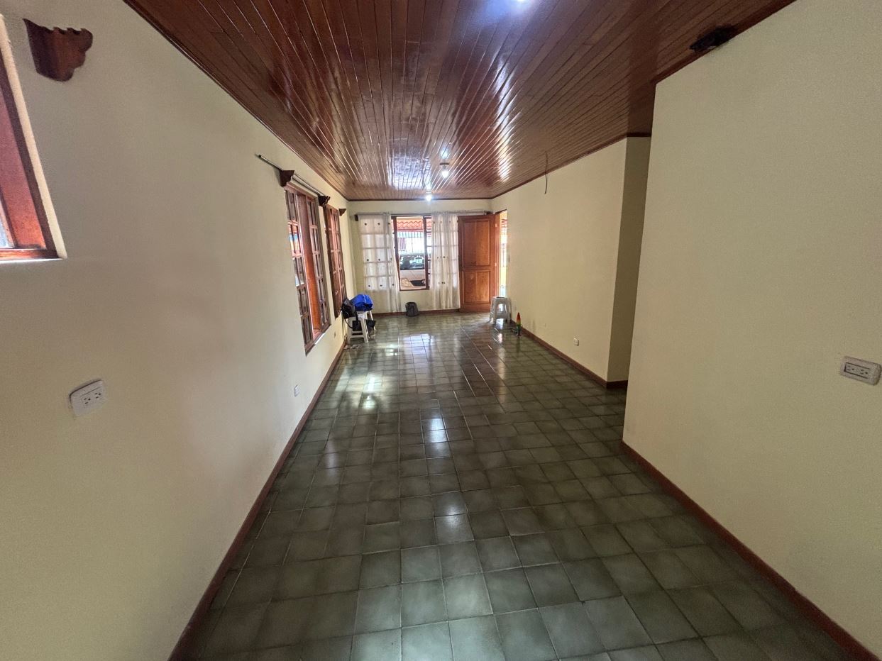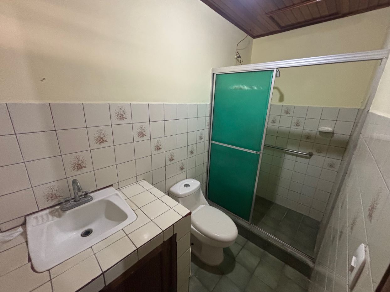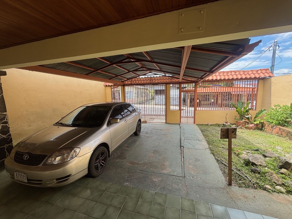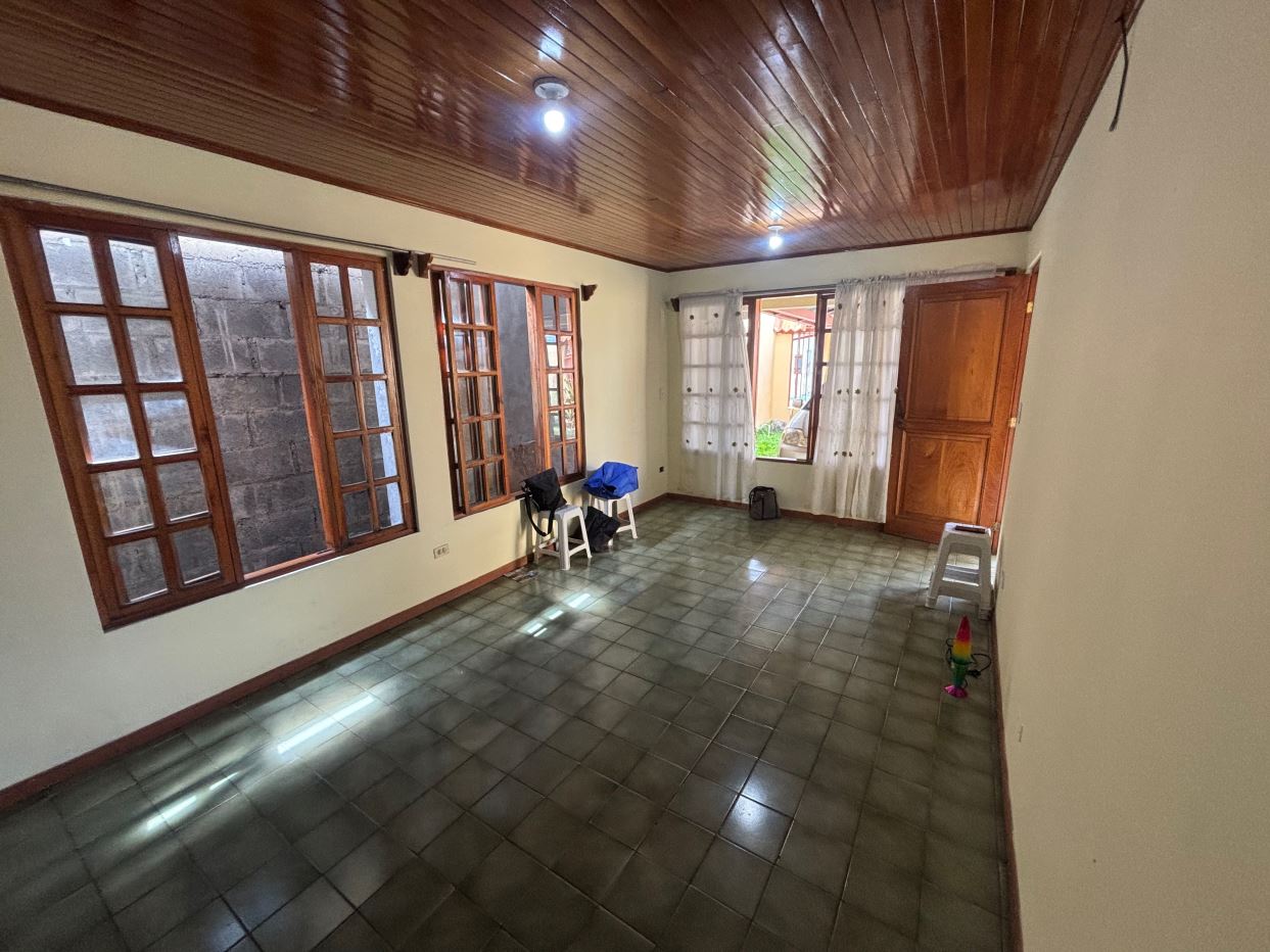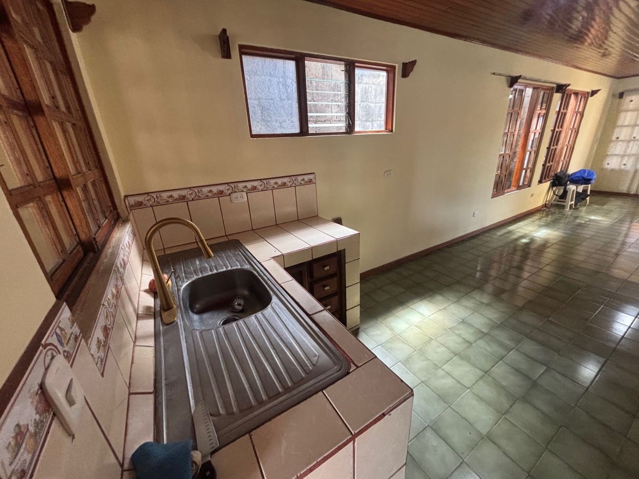This house in downtown Atenas, very close to everything, has 4 bedrooms, 2 bathrooms, a large garage, a living room, a dining room, a kitchen, a laundry room, and a ranch. There’s an additional apartment-style bedroom with a bathroom. There’s also a green area behind the house.