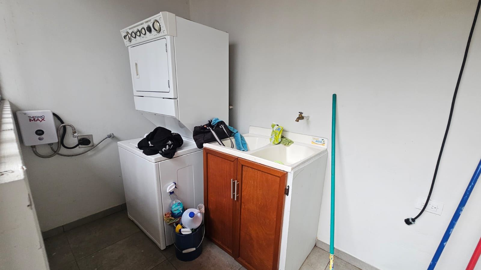 Al entrar, encontrará una distribución amplia y luminosa que incluye una oficina, ideal para teletrabajar o para actividades creativas, además de una acogedora sala de estar y una lavandería bien equipada con lavadora y secadora. La casa viene parcialmente amueblada, lo que facilita su instalación o alquiler.