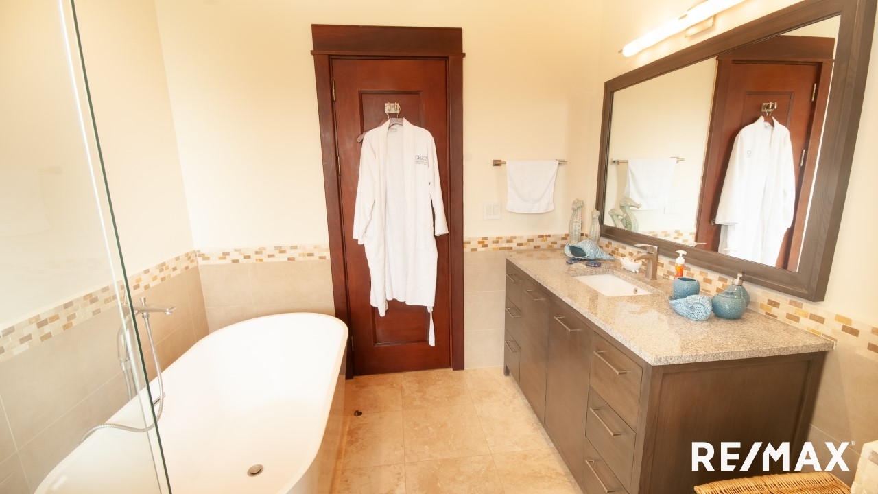 Take the stairs to the upper level where you have 3 bedrooms that each with ensuite bathroom. The master bedroom faces the Pacific Ocean and the oversized master bathroom hosts the most amazing ocean view hot tub. Bedroom number two with twin beds also faces the ocean and bedroom three with king bed affords amazing views to the mountains.