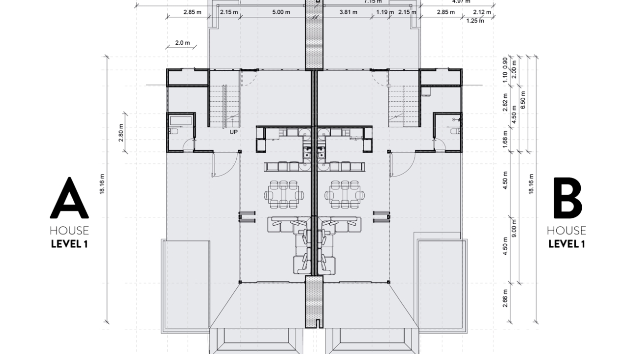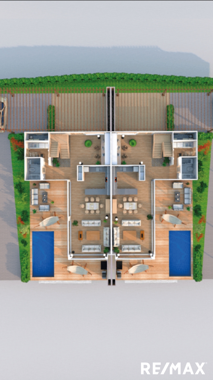 Pre-construction project featuring two luxurious, contemporary 3-bedroom homes, each with a private pool