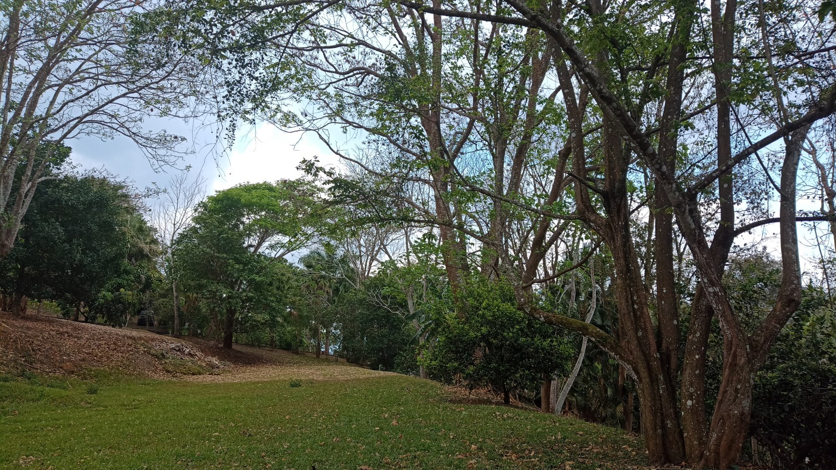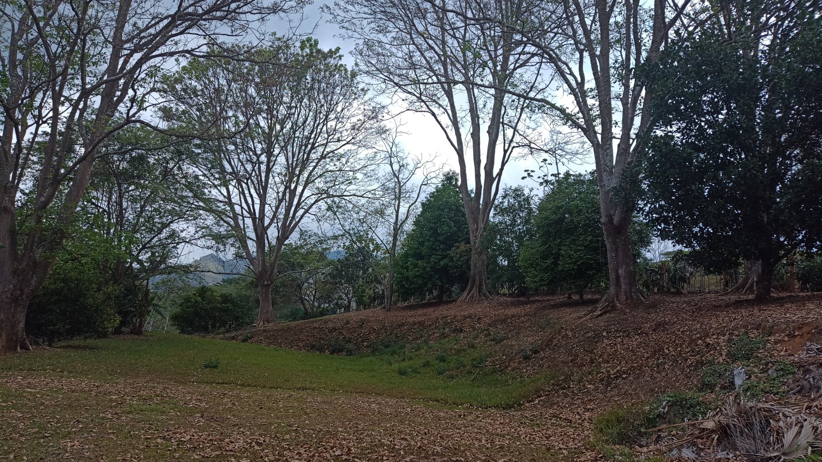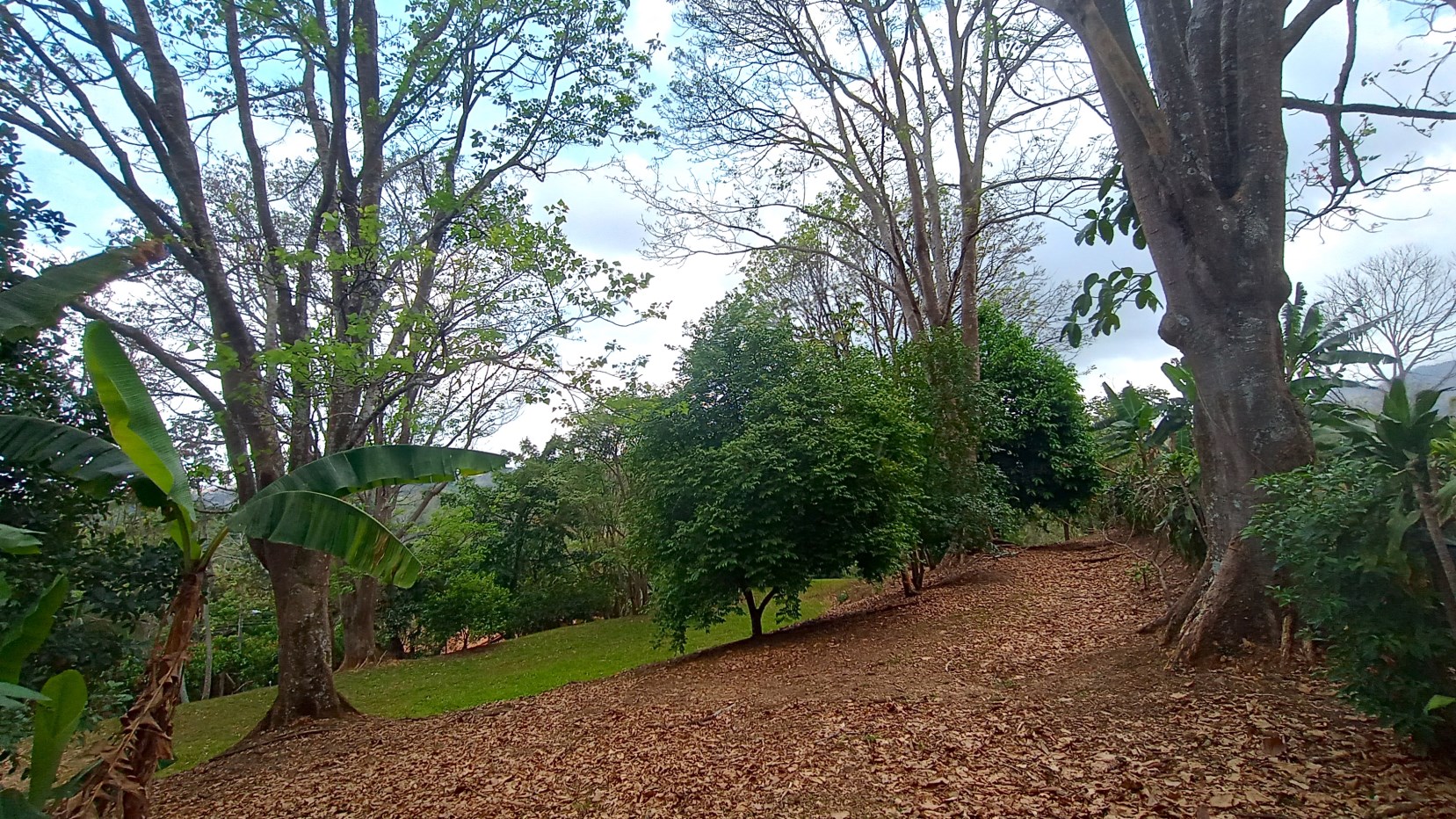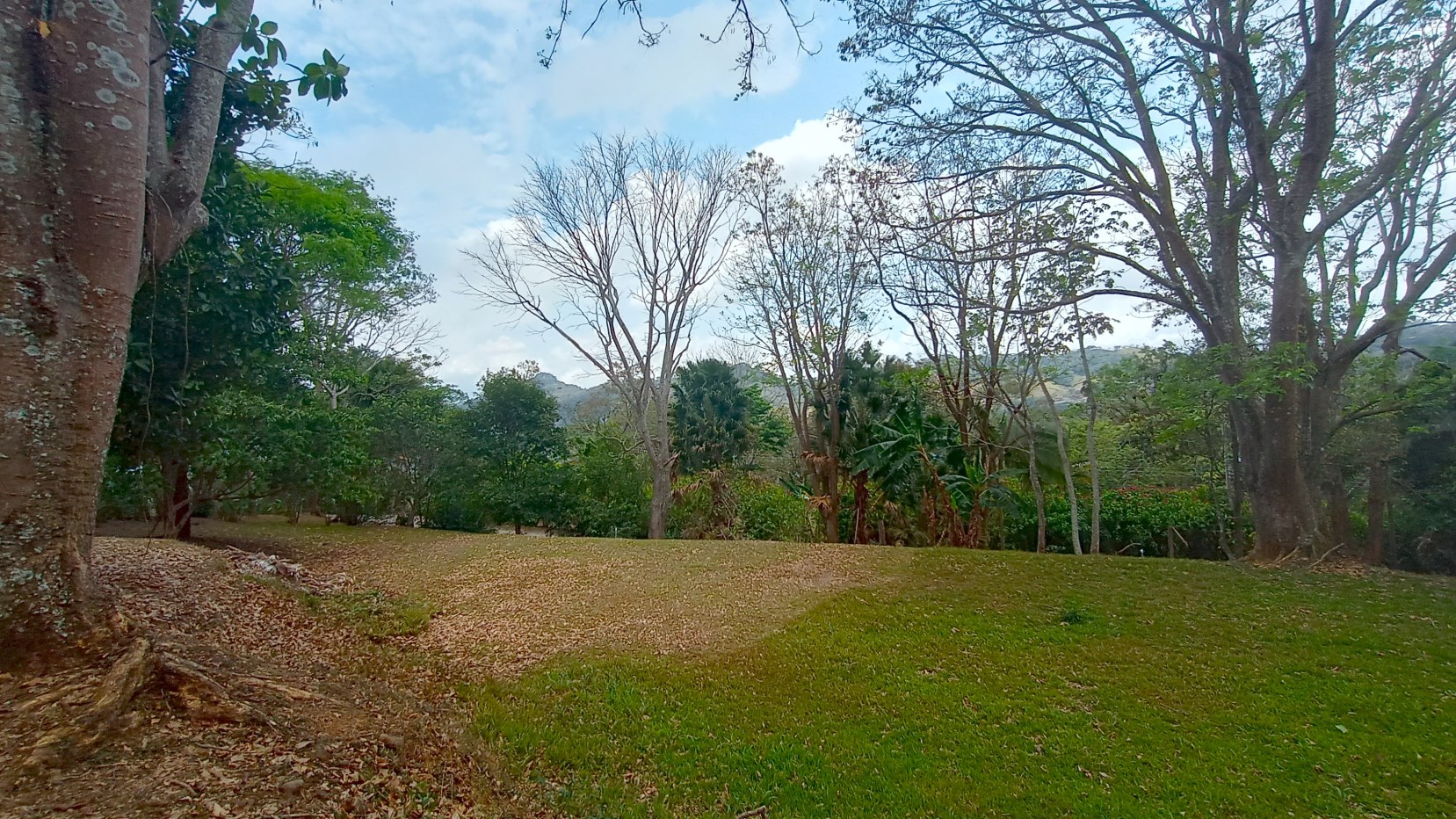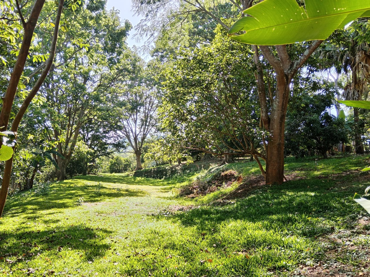 There are many timber trees, fruit trees, mountains views and many birds.
