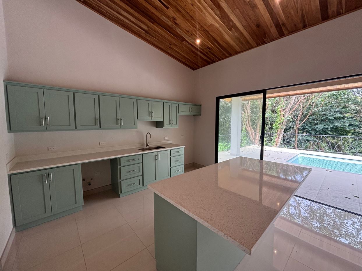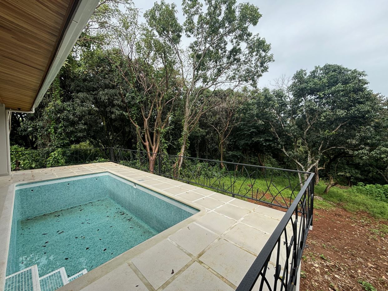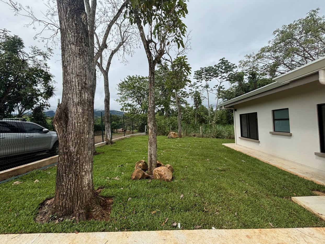 Gorgeous new modern-style home in exclusive neighborhood with 1/2 acre of land is located less than 10 minutes from Atenas Center in a natural setting in an established area with many neighboring homes. The home has a large back yard with plenty of trees that leads to an inviting back deck and pool area with a nice size covered terrace perfect for outside living. The home has an open floor plan with artesenal cabinetry kitchen with an ample living and dining area. One wing has the master bedroom and bathroom suite area with a nicely designed terrace just outside a sliding glass door. There is a nice size walk in closet. On the other wing are two guest rooms, a shared bathroom and adjacent the kitchen a living and storage area.
