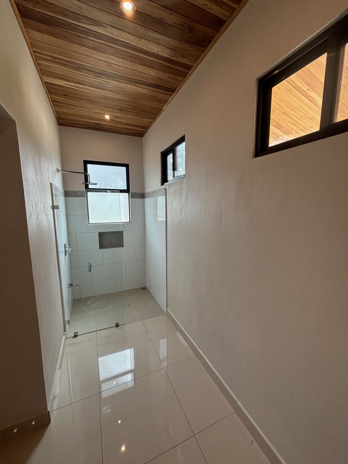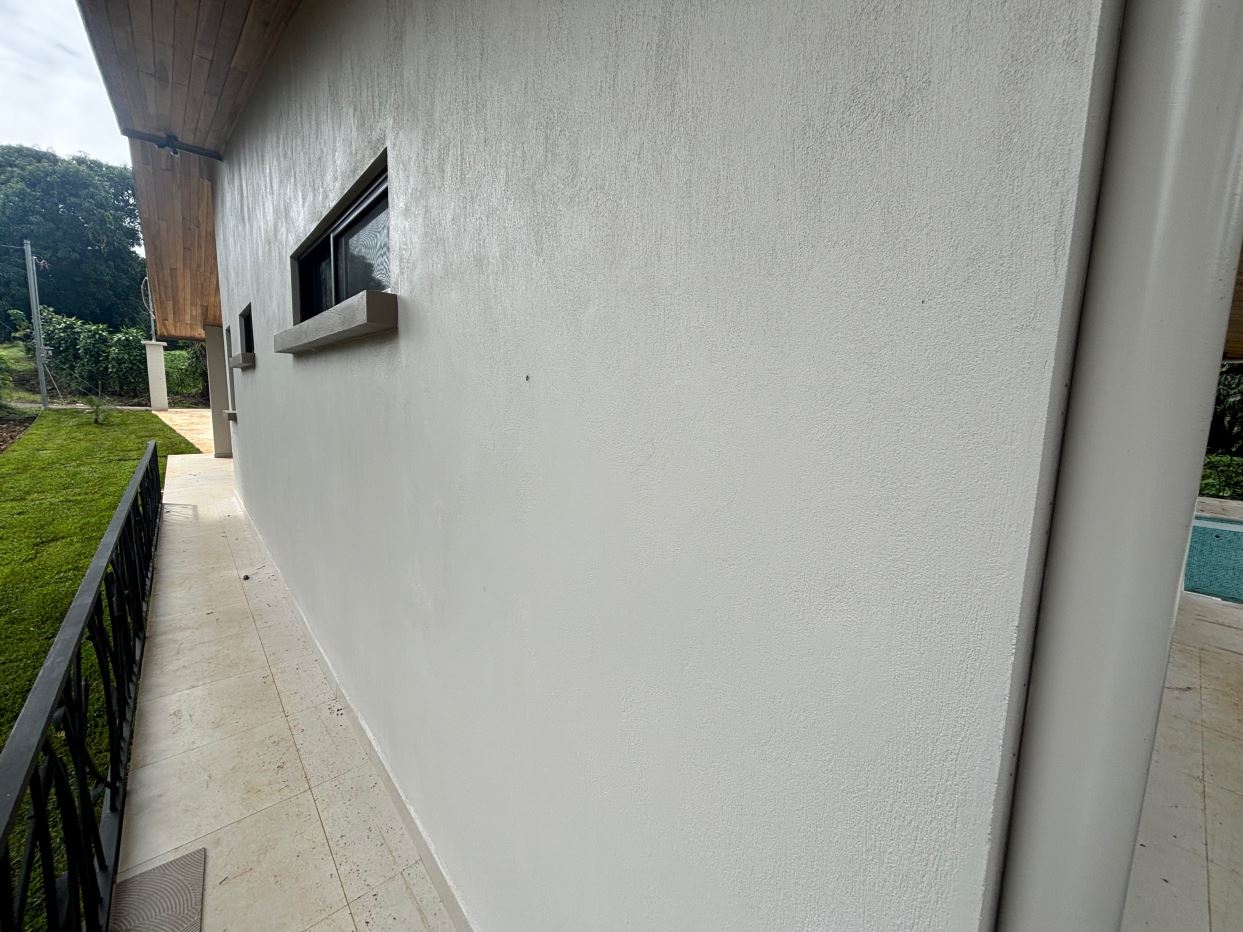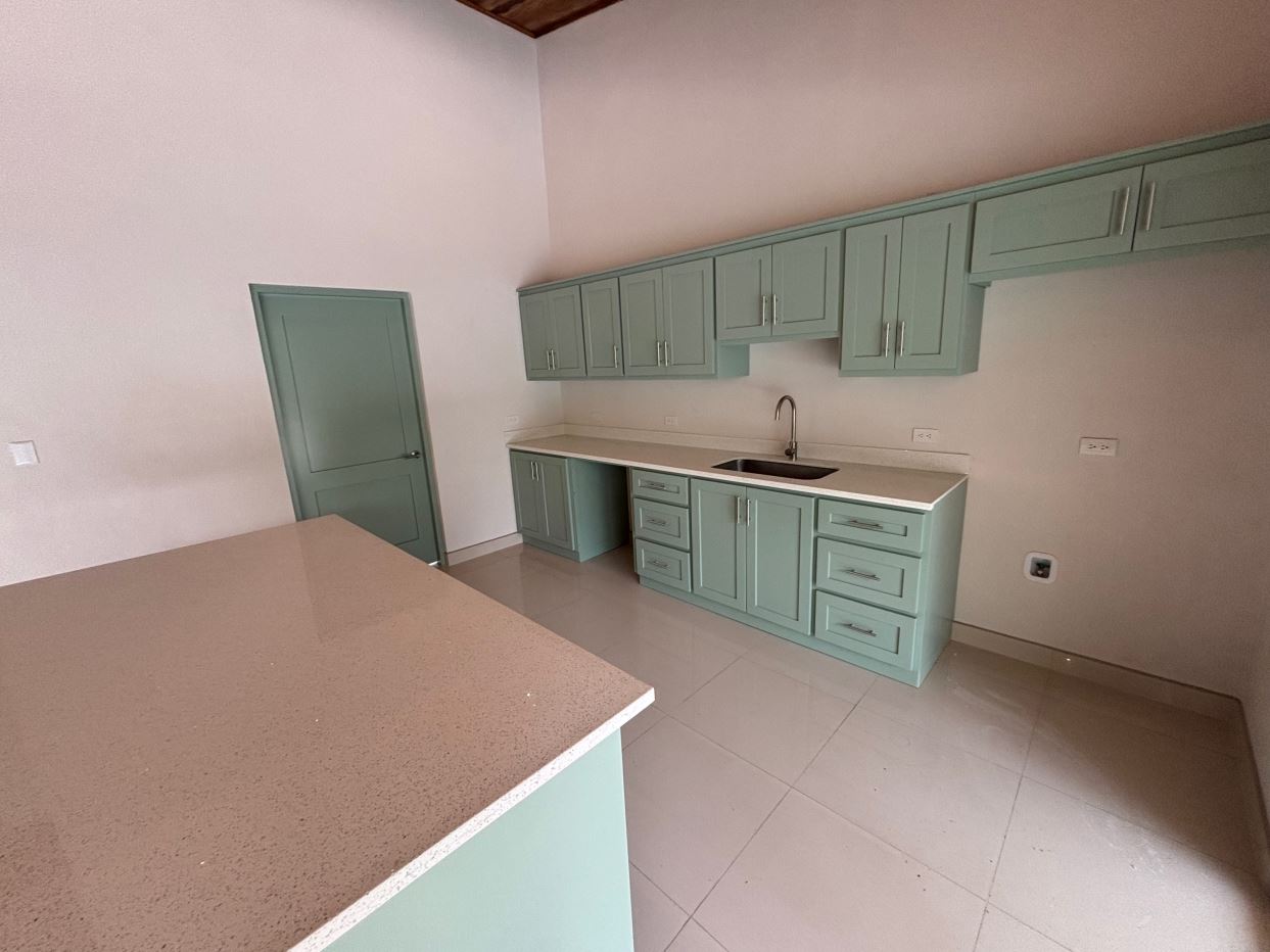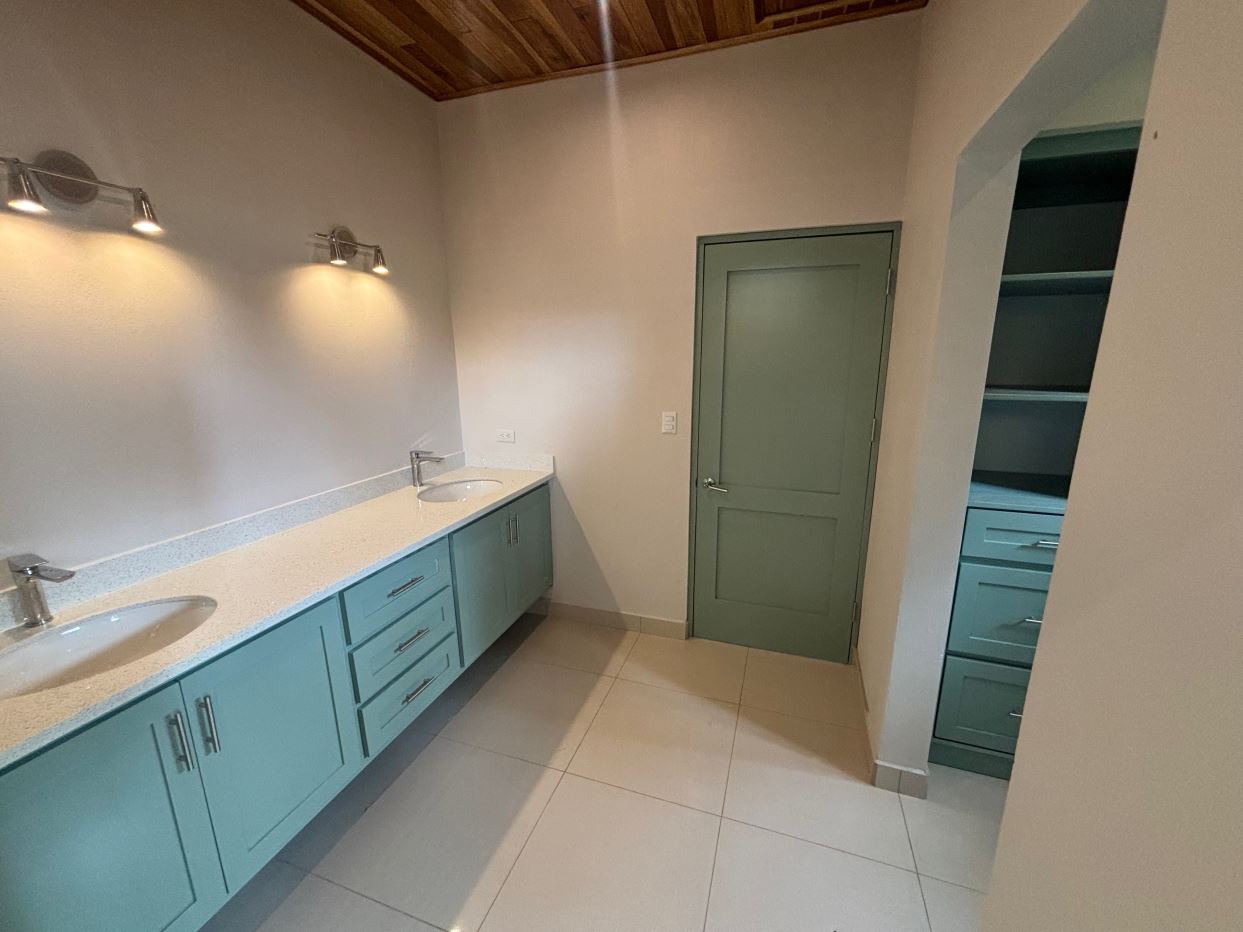 Gorgeous new modern-style home in exclusive neighborhood with 1/2 acre of land is located less than 10 minutes from Atenas Center in a natural setting in an established area with many neighboring homes. The home has a large back yard with plenty of trees that leads to an inviting back deck and pool area with a nice size covered terrace perfect for outside living. The home has an open floor plan with artesenal cabinetry kitchen with an ample living and dining area. One wing has the master bedroom and bathroom suite area with a nicely designed terrace just outside a sliding glass door. There is a nice size walk in closet. On the other wing are two guest rooms, a shared bathroom and adjacent the kitchen a living and storage area.