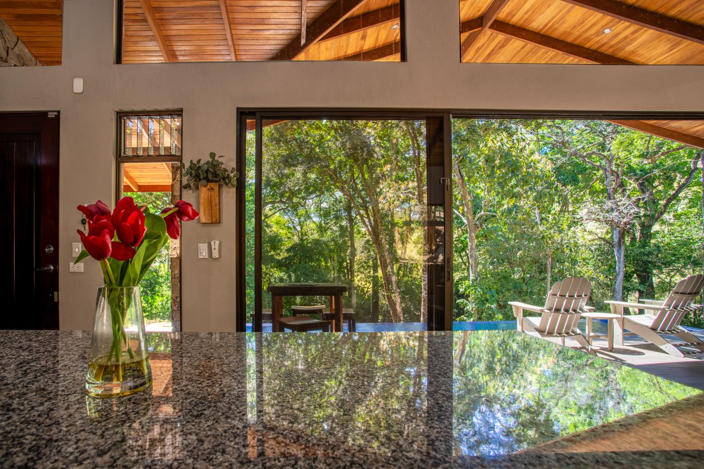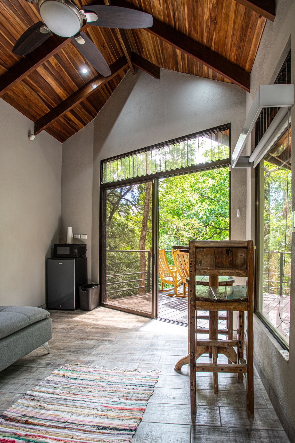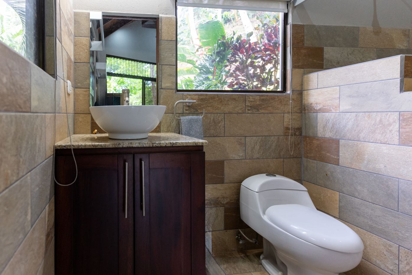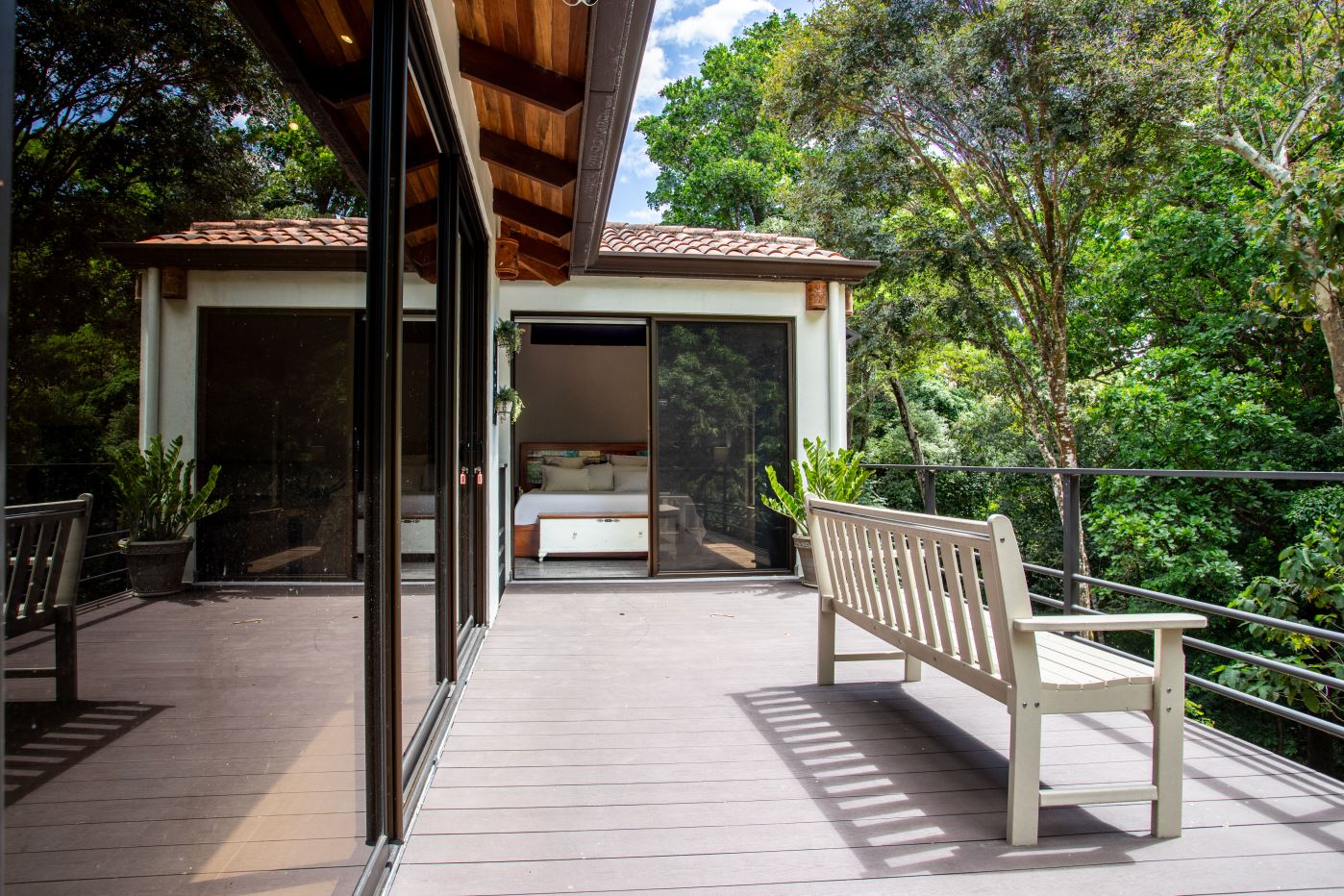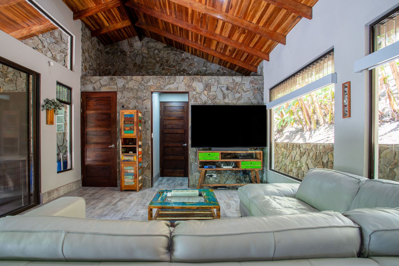 The property also has a small separate Casita that matches the main house. The Casita is essentially a third bedroom. It has a full sized futon bed and a bathroom with shower. A massive porch, just off the sliding glass doors, extends out over the cliffside high above the river while kissing the jungle canopy at the same time. Listen to the babbling river below with its mini waterfalls that run all year around. Truly an awe inspiring view filled with peace.