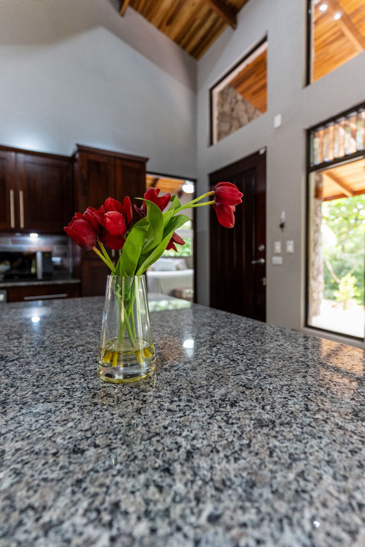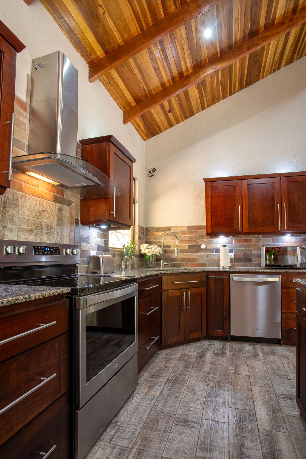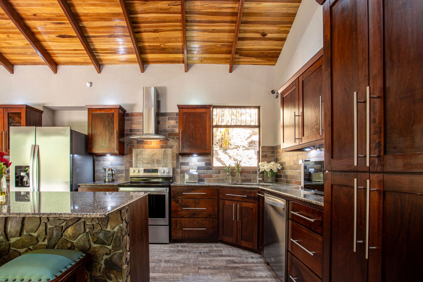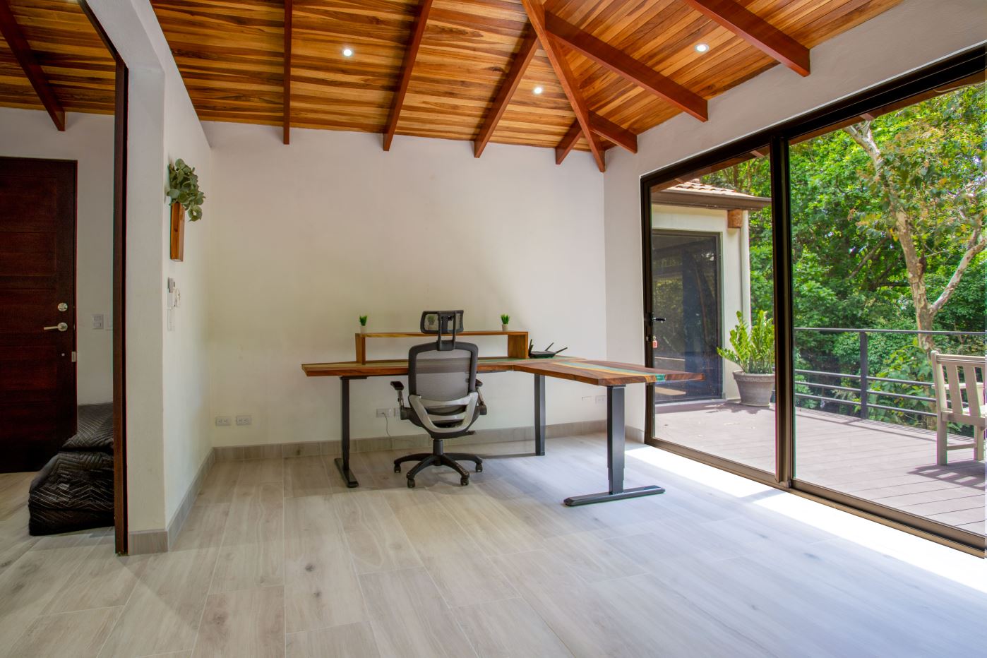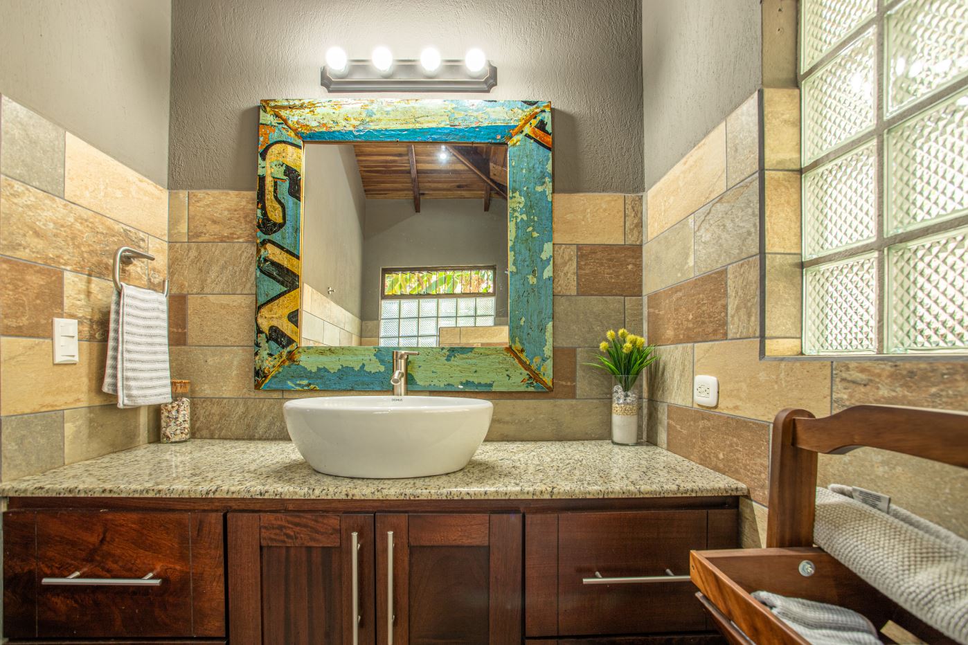 The property also has a small separate Casita that matches the main house. The Casita is essentially a third bedroom. It has a full sized futon bed and a bathroom with shower. A massive porch, just off the sliding glass doors, extends out over the cliffside high above the river while kissing the jungle canopy at the same time. Listen to the babbling river below with its mini waterfalls that run all year around. Truly an awe inspiring view filled with peace.