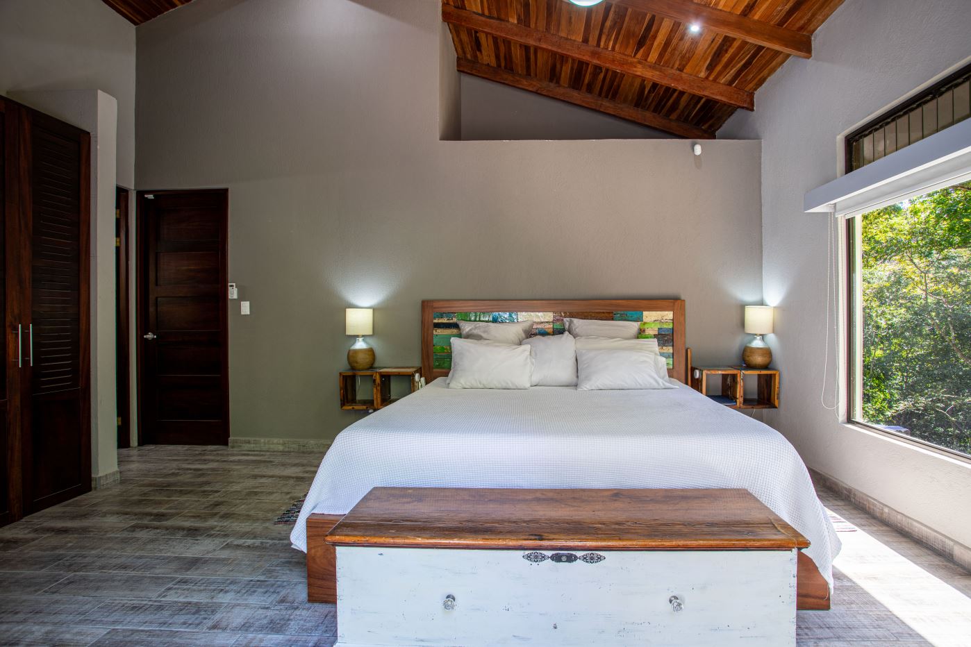 La propiedad también cuenta con una pequeña Casita separada que hace juego con la casa principal. La Casita es esencialmente un tercer dormitorio. Tiene una cama futón de tamaño completo y un baño con ducha. Un enorme porche, justo al lado de las puertas corredizas de vidrio, se extiende sobre el acantilado muy por encima del río mientras besa el dosel de la jungla al mismo tiempo. Escuche el murmullo del río abajo con sus mini cascadas que fluyen durante todo el año. Verdaderamente una vista impresionante llena de paz.