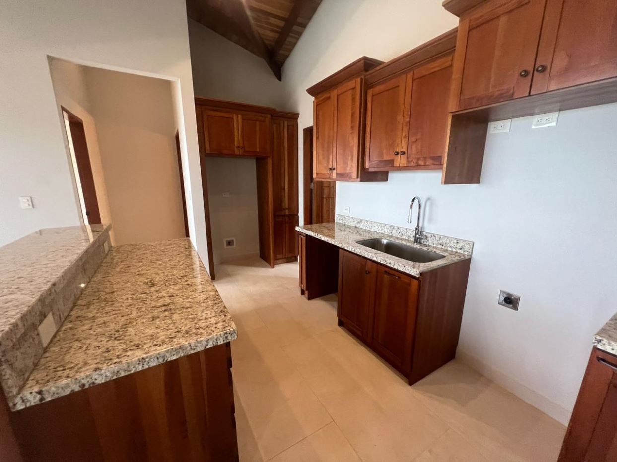 La casa está construida con concreto reforzado y cuenta con finos acabados, que incluyen sobres de granito, gabinetes de cocina, closets y techos hechos con maderas finas. Las ventanas y puertas de vidrio ofrecen vistas panorámicas y permiten que la luz natural inunde los espacios interiores, creando un ambiente acogedor y relajante.