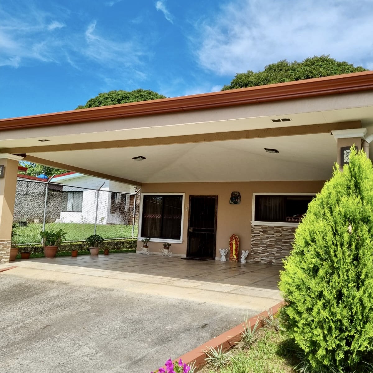 Esta casa de 3 habitaciones se encuentra en una calle sin salida muy tranquila a solo 2km del centro de Atenas. La casa tiene dos salas de estar, una cocina abierta con amplios espacios y muebles de madera. La habitación principal cuenta con baño privado y walking closet. La casa tiene una iluminada area para oficina con puertas corredizas que van al patio trasero. Toda la casa tiene agua caliente y un tanque extra de reserva de agua.Ademas de sistema de alarma y cámaras de seguridad.En el patio trasero encuentras una amplia area verde con arboles frutales de mandarina, limón, aguacate. Con un amplio rancho para disfrutar de un barbecue y una bodega para almacenar tus herramientas. El perímetro de la casa es totalmente cerrado lo que brinda mucha privacidad.