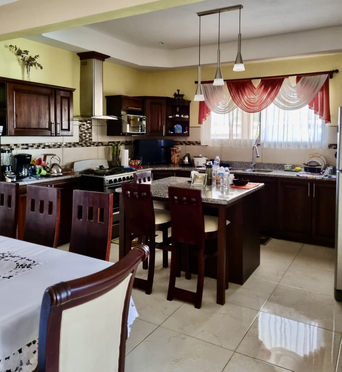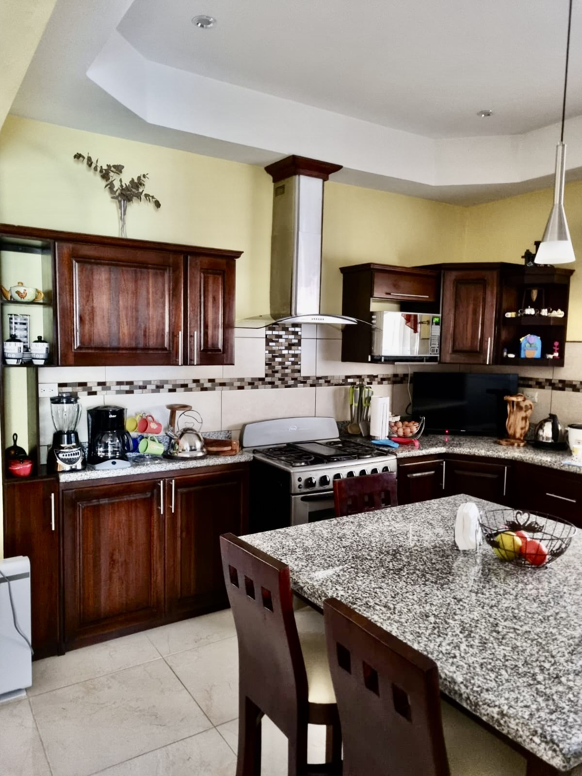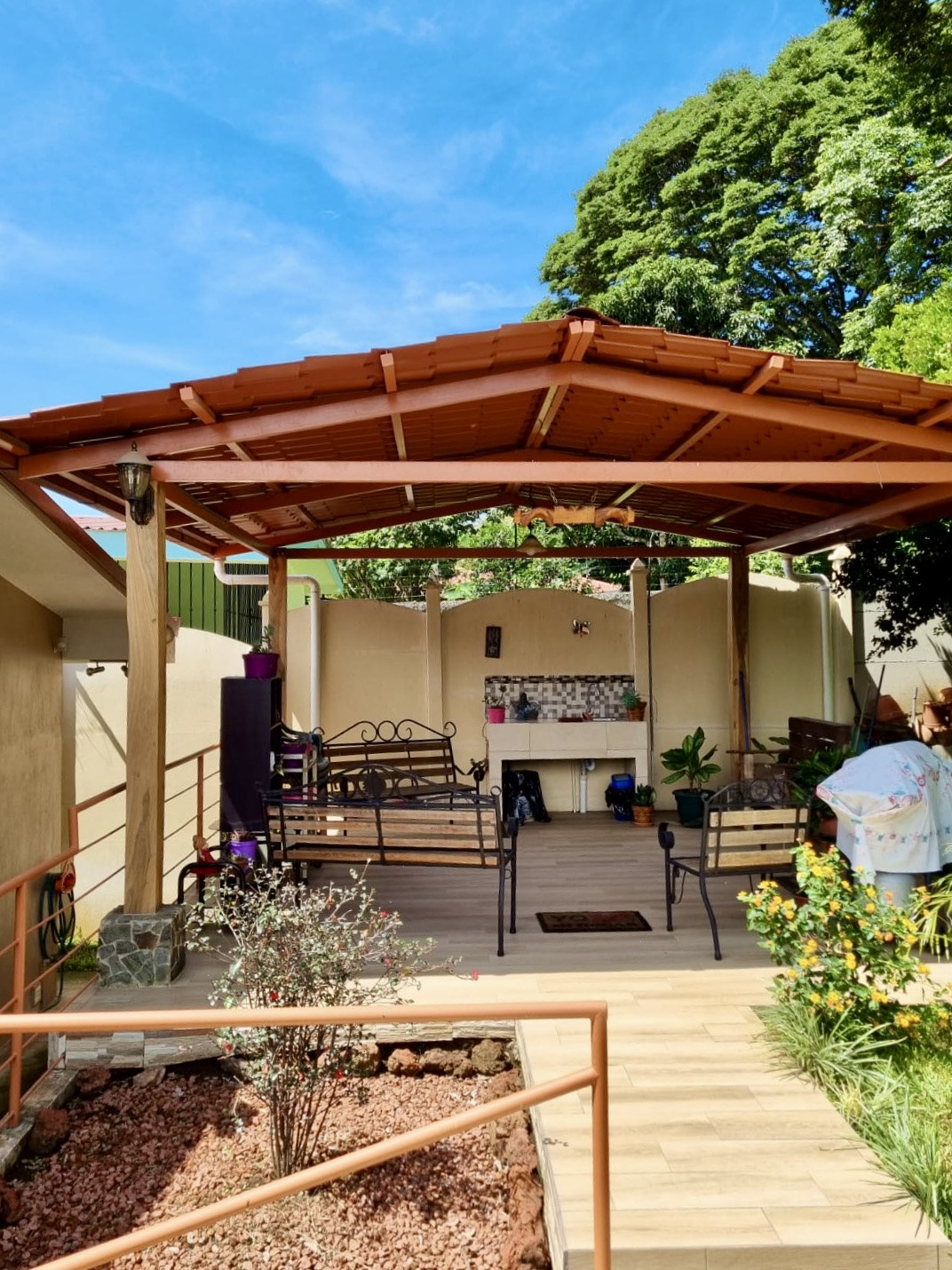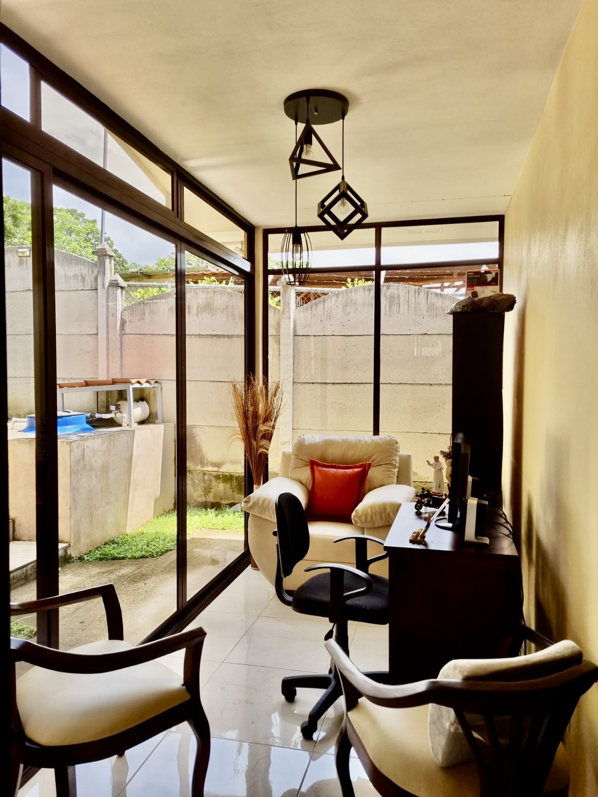 This 3-bedroom house is located in a very quiet end street just 2km from the Atenas center. The house has two living rooms, an open kitchen with large spaces and wooden furniture. The main room has a private bathroom and walking closet. The house has a bright office area with sliding doors leading to the backyard. The whole house has hot water and an extra water reserve tank.In addition to alarm system and security cameras.In the backyard you find a large green area with fruit trees of tangerine, lemon, avocado. With a large ranch to enjoy a barbecue and storage room for your tools. The perimeter of the house is completely closed, which provides a lot of privacy.