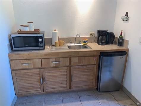 The beautifully landscaped gardens with fruit trees lead to the large inviting swimming pool area with outdoor kitchenette and BBQ area with a rancho bathroom.  On the opposite side of the property lies the comfortably designed 4 1Bd/1Bth suites each with their own private porch areas.  There is an added small guest home with 2Bd/2Bth.