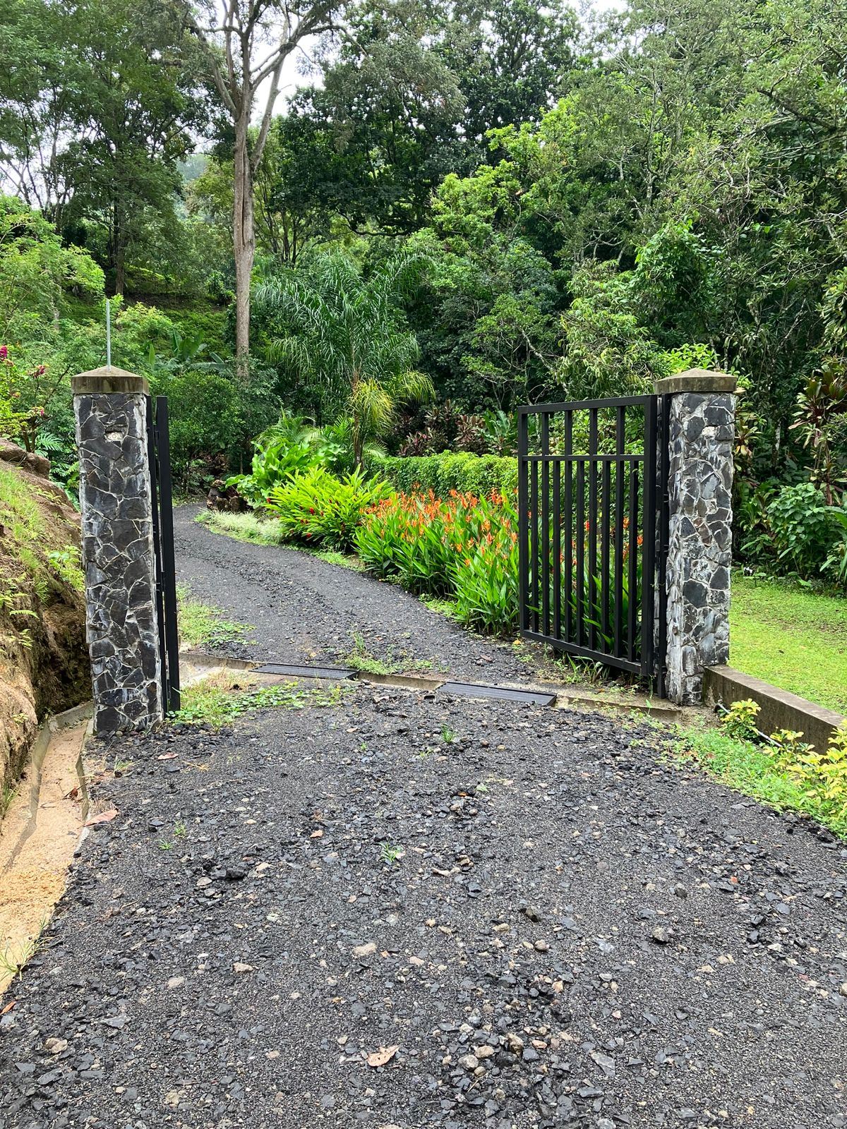 Main FarmThe remaining 11,475 m2 (2.8 acres) has a gravel access road and cement gutters (approximately 150 m2 (492 ft2) long), a metal gate, and entrance columns. It has a working electric and water meter.This property has at least two terraces ready for construction, complete with contour plans.One of the terraces has construction plans for a 50 m2 (538 ft2) riverfront cabin with all current permits.The property is aligned with the INVU river system.This farm has a variety of fruit trees in production, trails, gardens, and an irrigation system with a 2,000-liter tank fed by water from the Cacao River.The entire farm is fenced with cement posts.