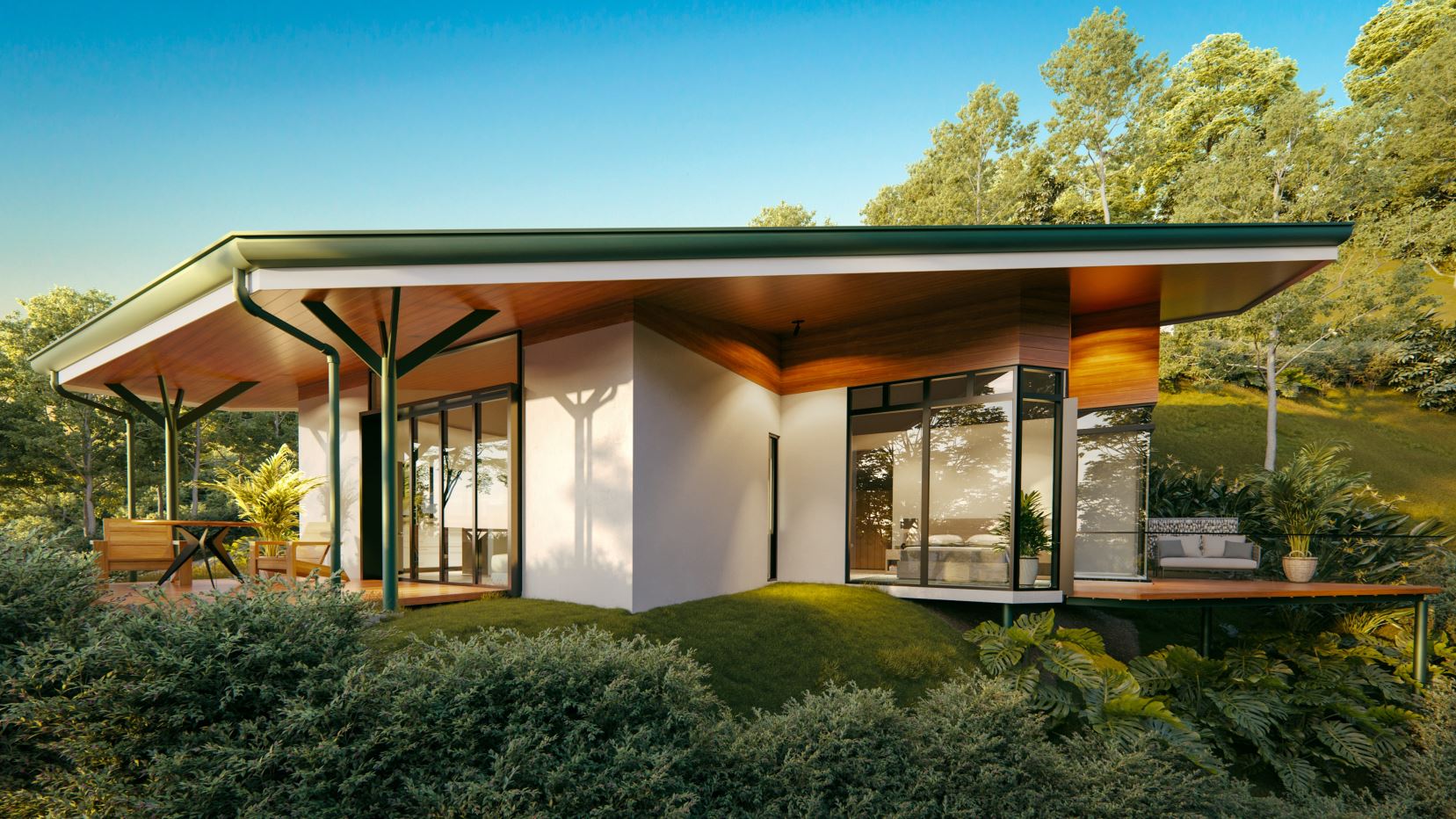 Una de las terrazas cuenta con planos constructivos para una cabaña frente al rio de 50m2 (538 pies 2)  con todos los permisos vigentes.
