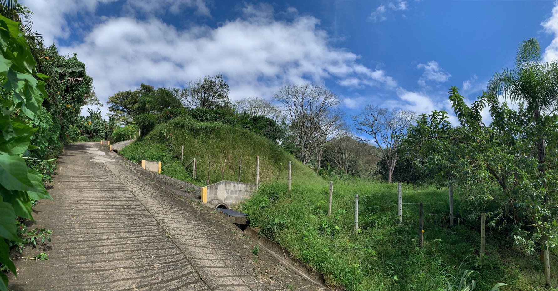 El frente de la finca cuenta con alcantarillado (cunetas y cajas de registro) y puentes de acceso independiente para cada lote. El tercer lote tiene acceso de cemento y portones de metal.