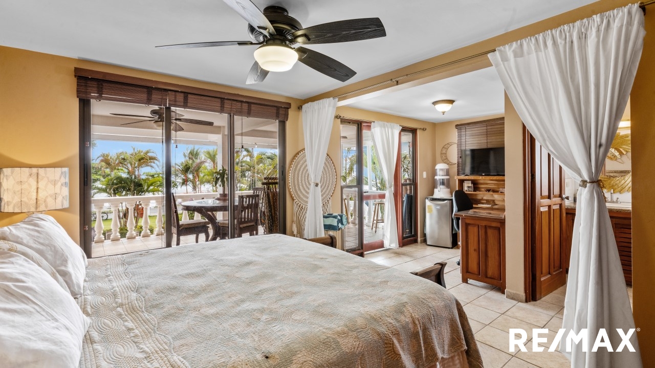 Welcome to La Paloma Blanca A-1, a magnificent direct oceanfront condo located on the Sound end of Jaco Beach. This exquisite residence offers 2 bedrooms and 3 bathrooms, spanning approximately 2,000 square feet of luxurious living space. The main level features a spacious living area, a modern kitchen, and a full bathroom, while the two bedrooms are nestled on the second floor.