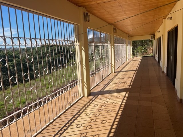 Large home with 3.5 acres with views and orchard in Atenas, located just 10 minutes away rom the picturesque town of Barrio San Jose. The property features a large home with tall ceilings tucked in the side of the hill away from direct neighbors. The large porch runs the extent of the back patio and has panoramic views of the area. A side path takes you to the large 3 acre citrus grove ideal for a private farm or can be further developed and has a secondary access from the main road. There is a separate enclosed garage area.