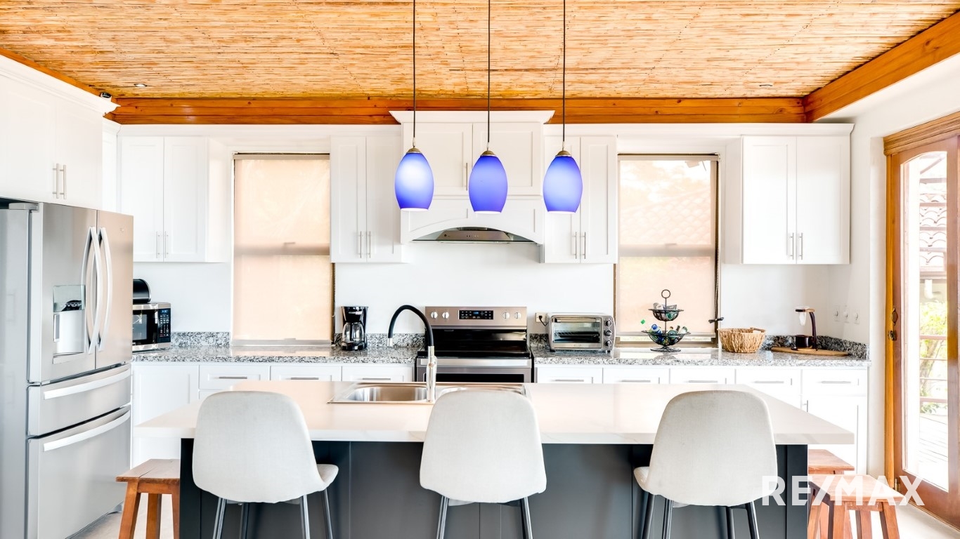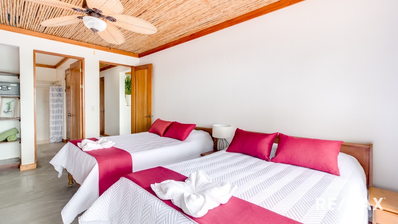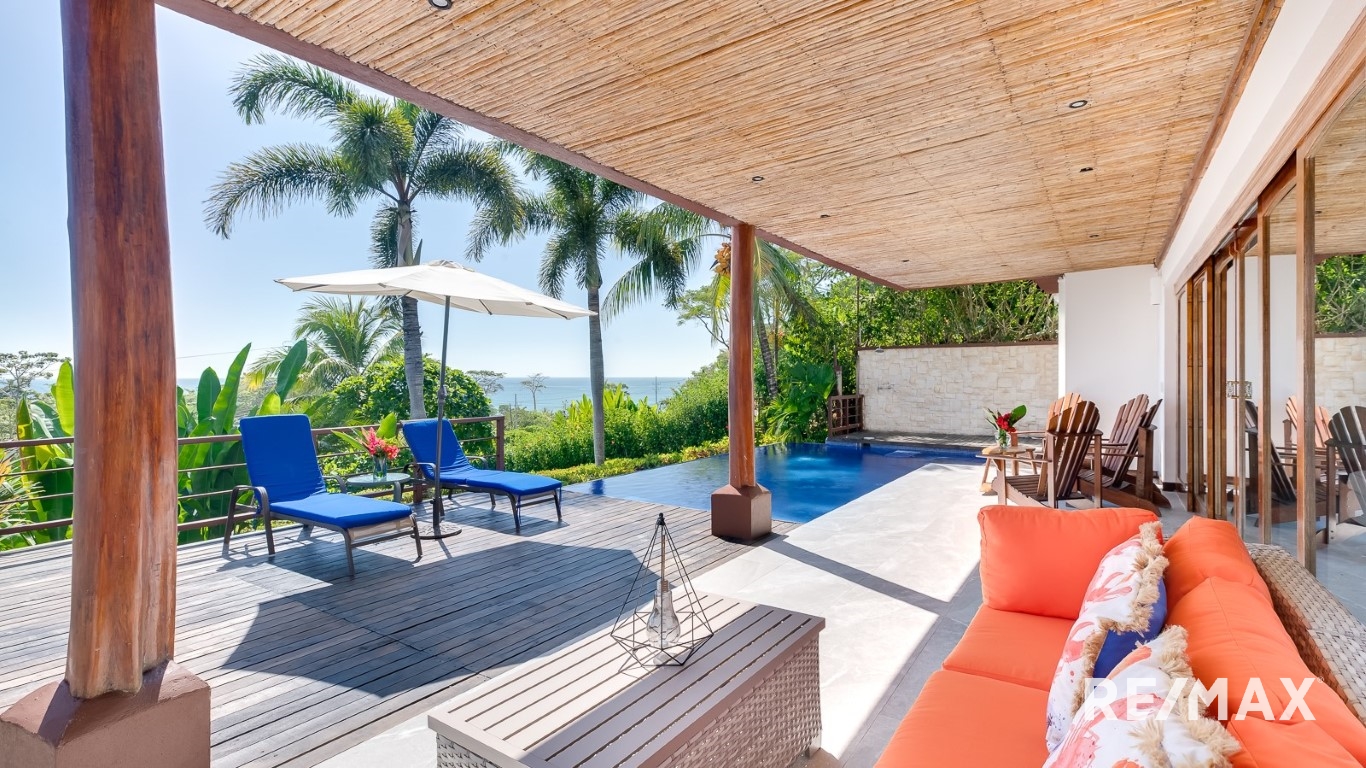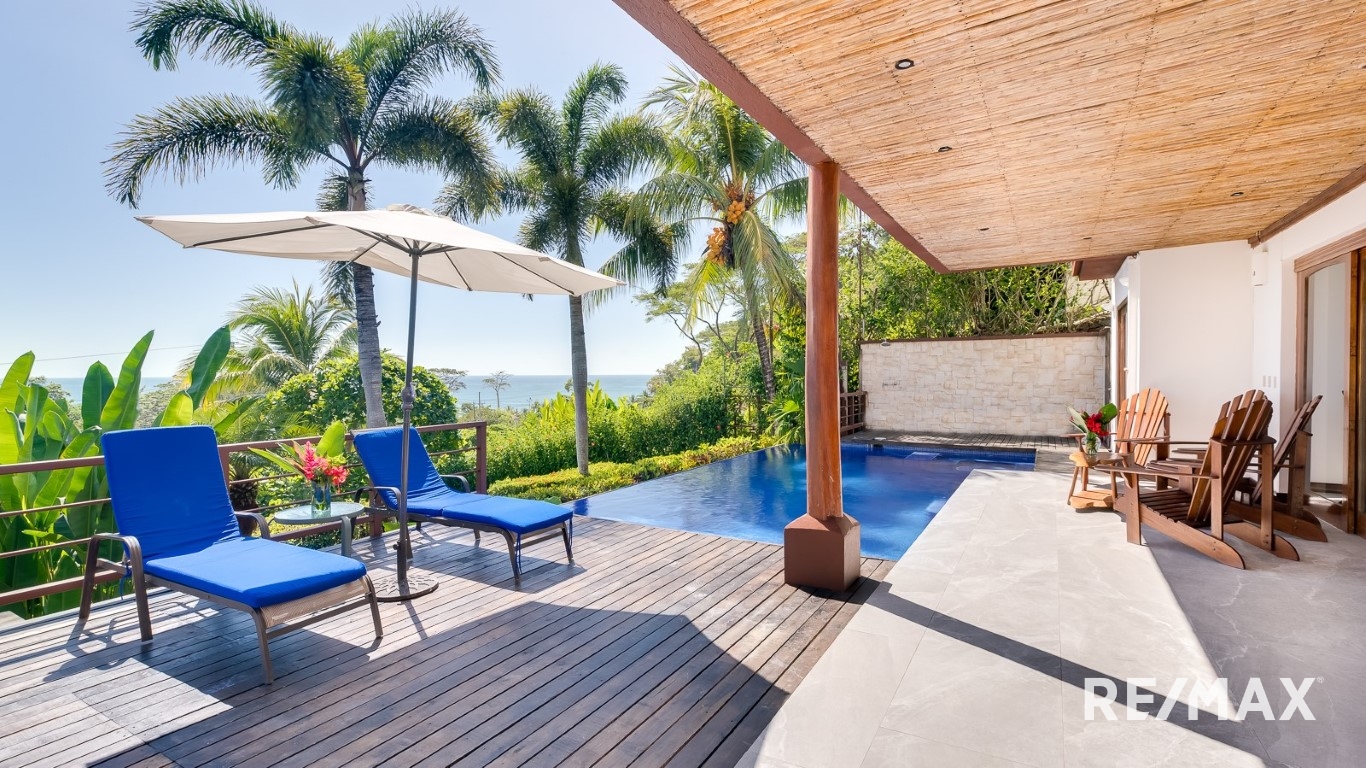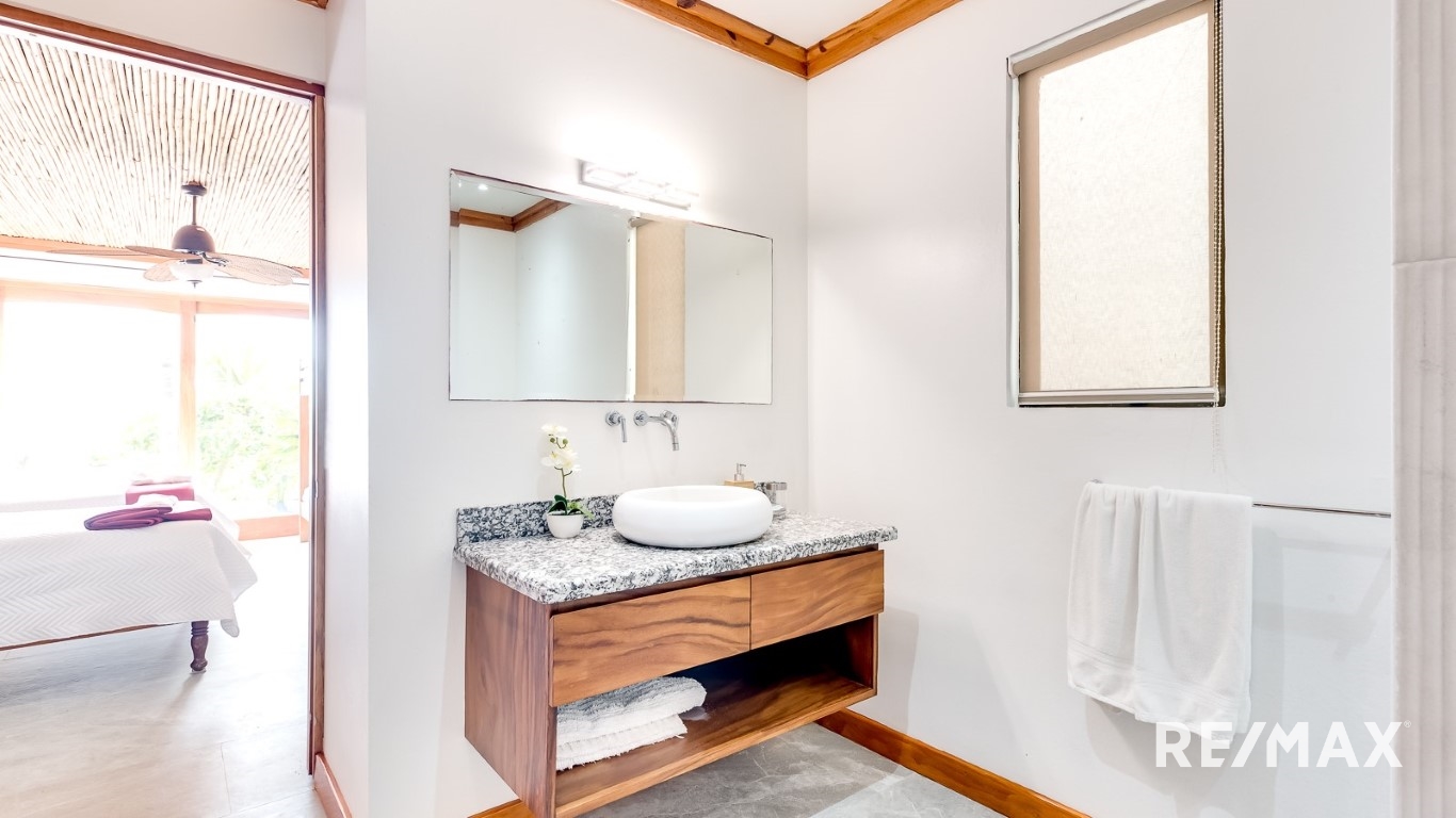 Vida Elegante con Vistas Espectaculares: Cada uno de los tres amplios dormitorios es un refugio de comodidad, ofreciendo vistas espectaculares. Despiértate con el relajante sonido de las olas y báñate en la belleza de los famosos atardeceres de Costa Rica.