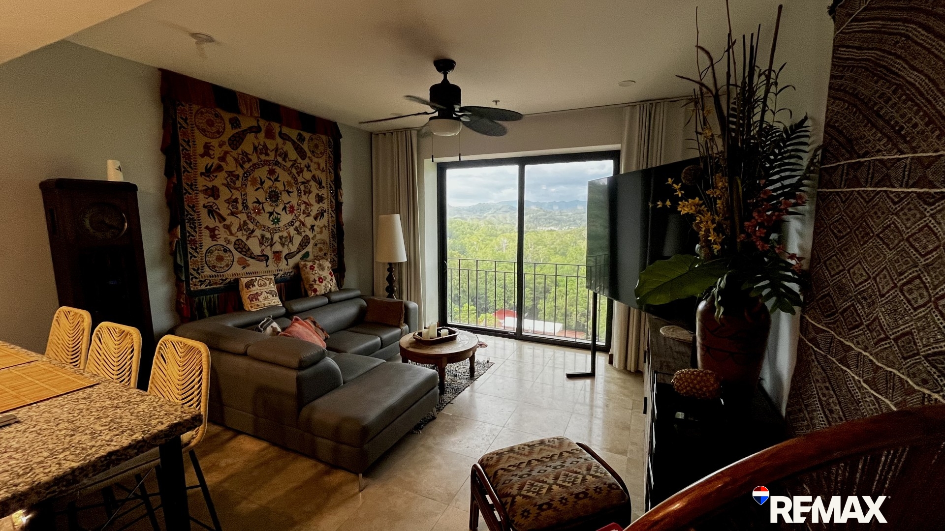 La unidad se entrega completamente equipada, con un diseño de concepto abierto, cocina moderna y acabados de calidad. La sala de estar es luminosa y permite apreciar las impresionantes vistas a las montañas directamente desde el interior del hogar. El dormitorio es cómodo, con buen espacio de almacenamiento, ideal para vivir a tiempo completo, utilizar como casa de vacaciones o como inversión rentable.