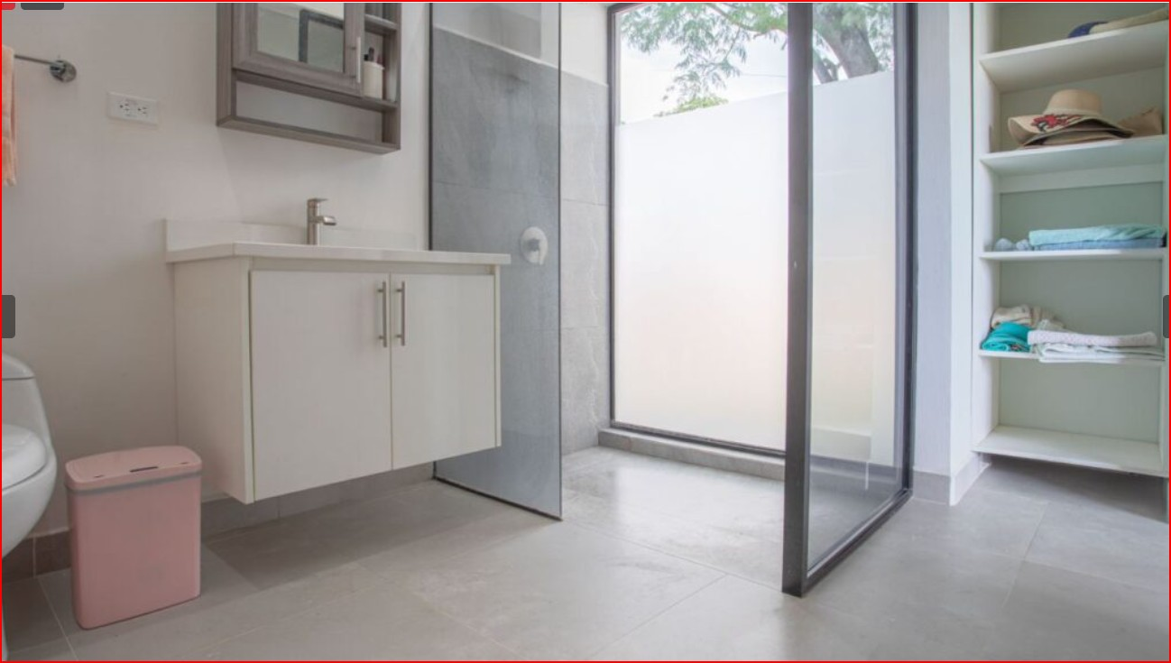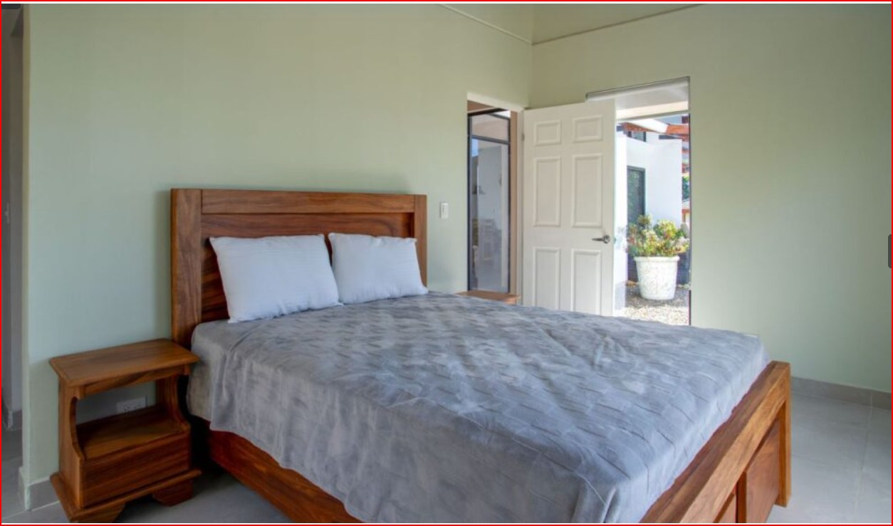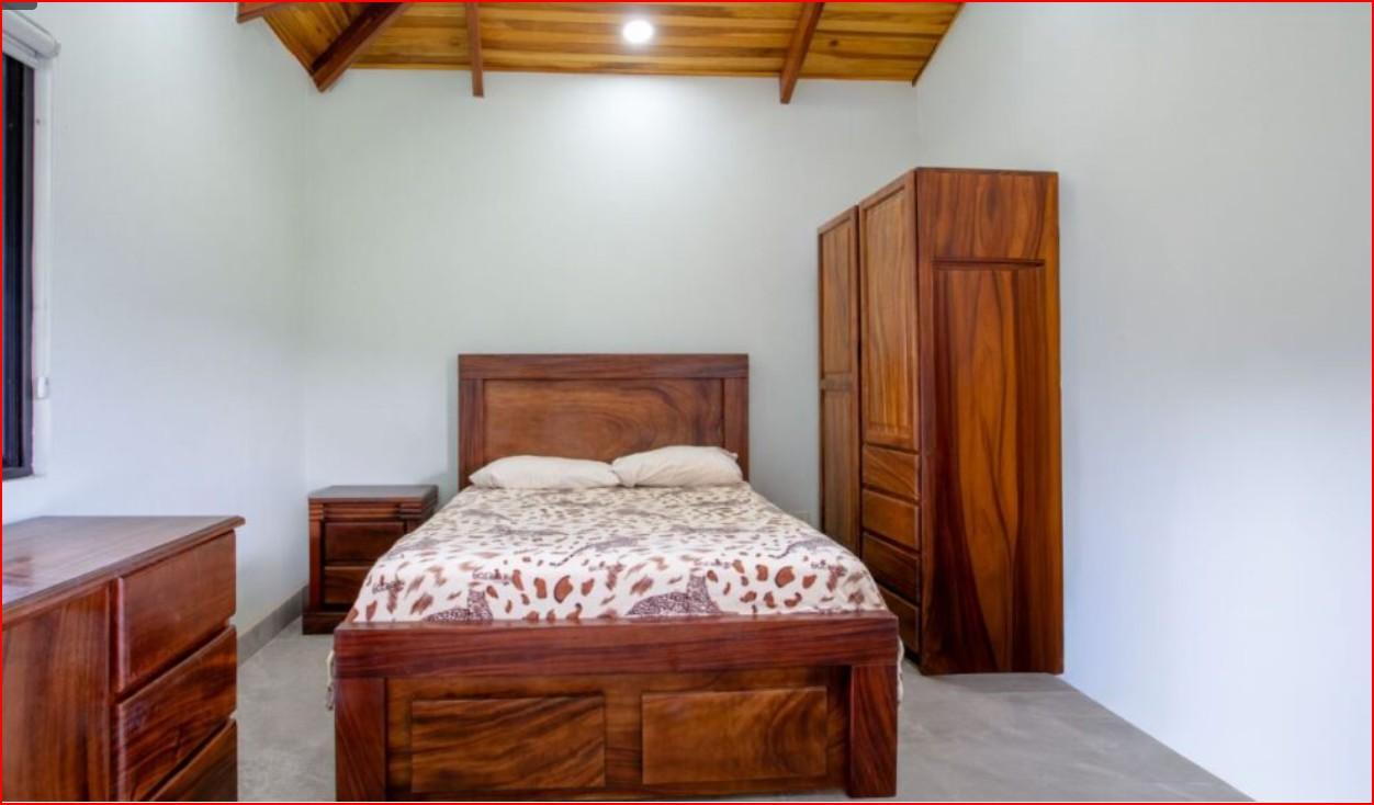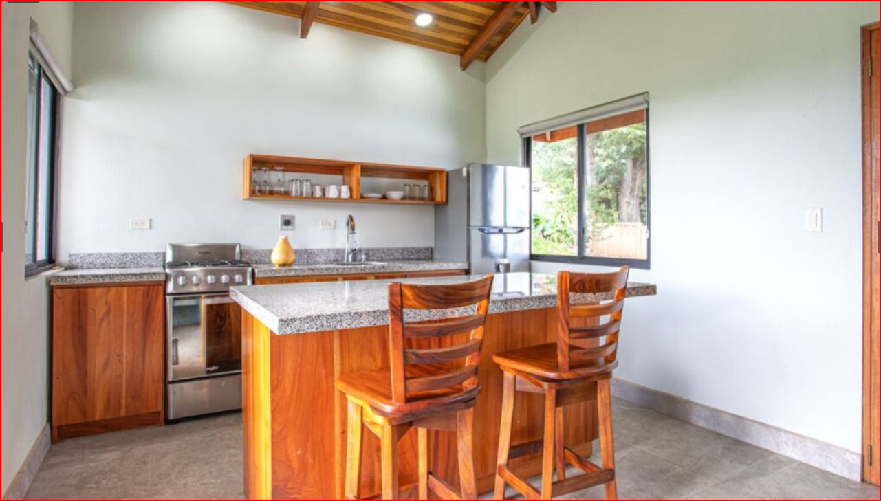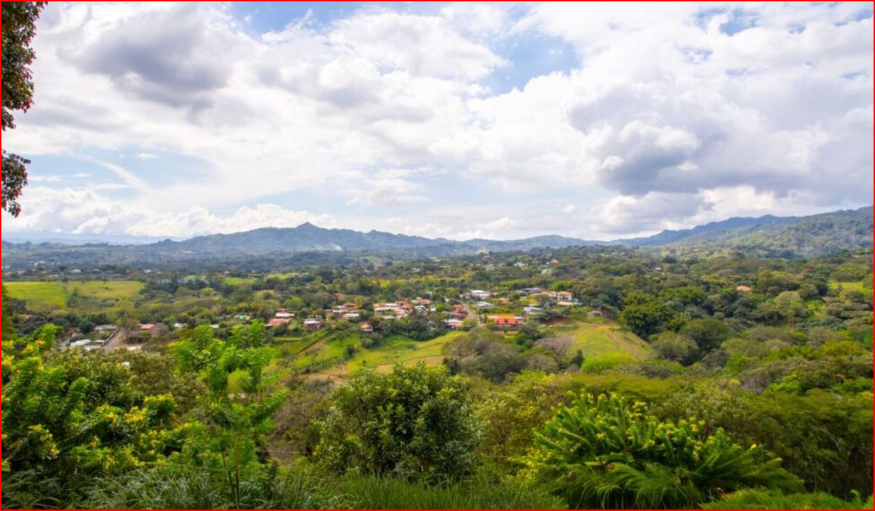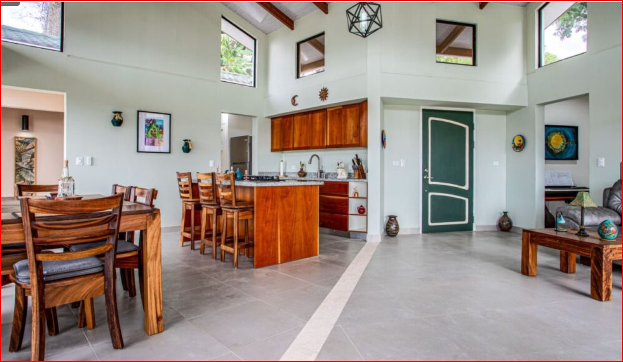 Modern designs can be found in this gated community in a natural setting in the Atenas countryside. This home is located in the private community of Cerro Luna in Barrio San Jose, about 12 minutes from town center. The property features 300 degree views towards the capital of San Jose, the area mountains and a good part of the small town of Atenas. The home’s layout features a common social open floor plan living and dinig room adjacent to a modern kitchen with artesenal woodwork throughout. This area leads to the inviting covered porch area and swimming pool. The master bedroom with ensuite bathroom can be found on one end of the home and two guest bedrooms on the opposite end with guest bathroom. The property is surrounded by nicely landscaped gardens and one also can find an independent guest studio on the opposite end of the lot with a kitchen-dining area and full bathroom.