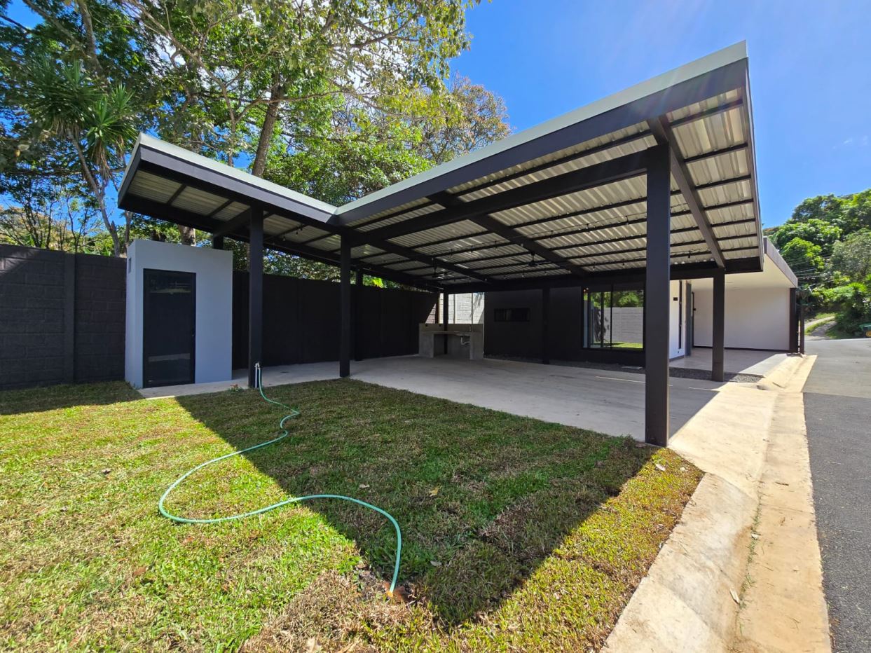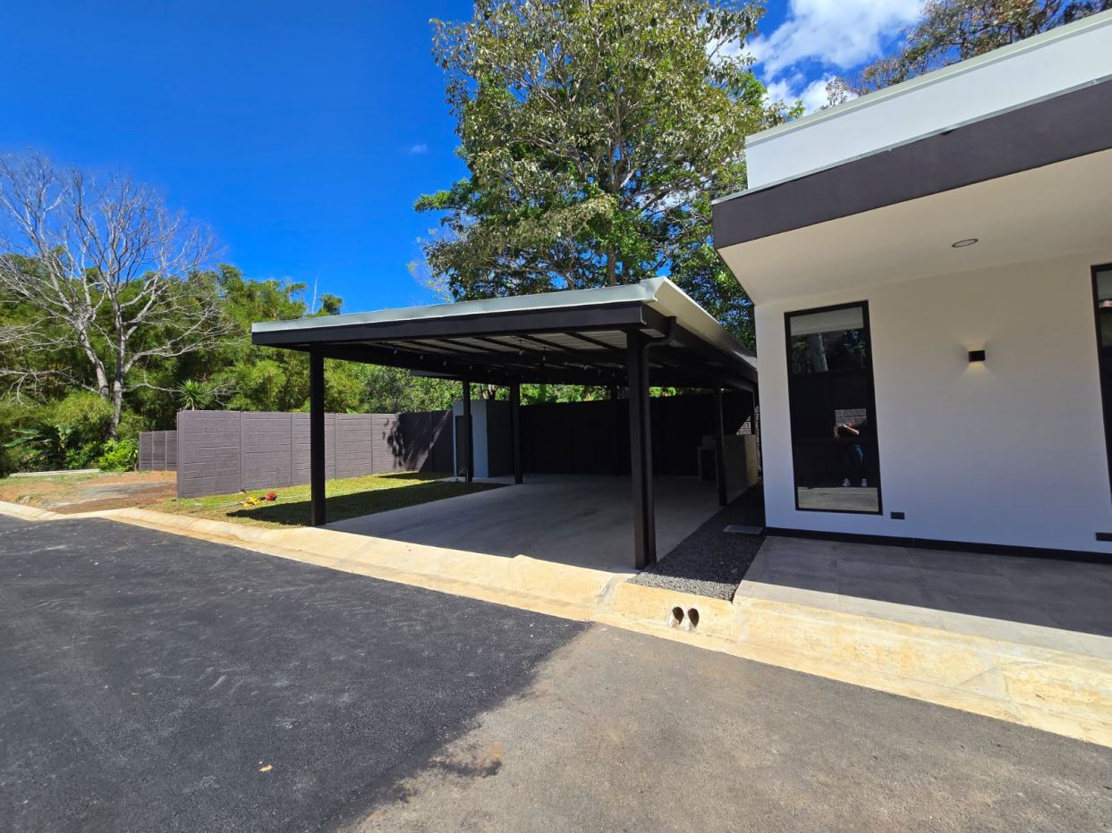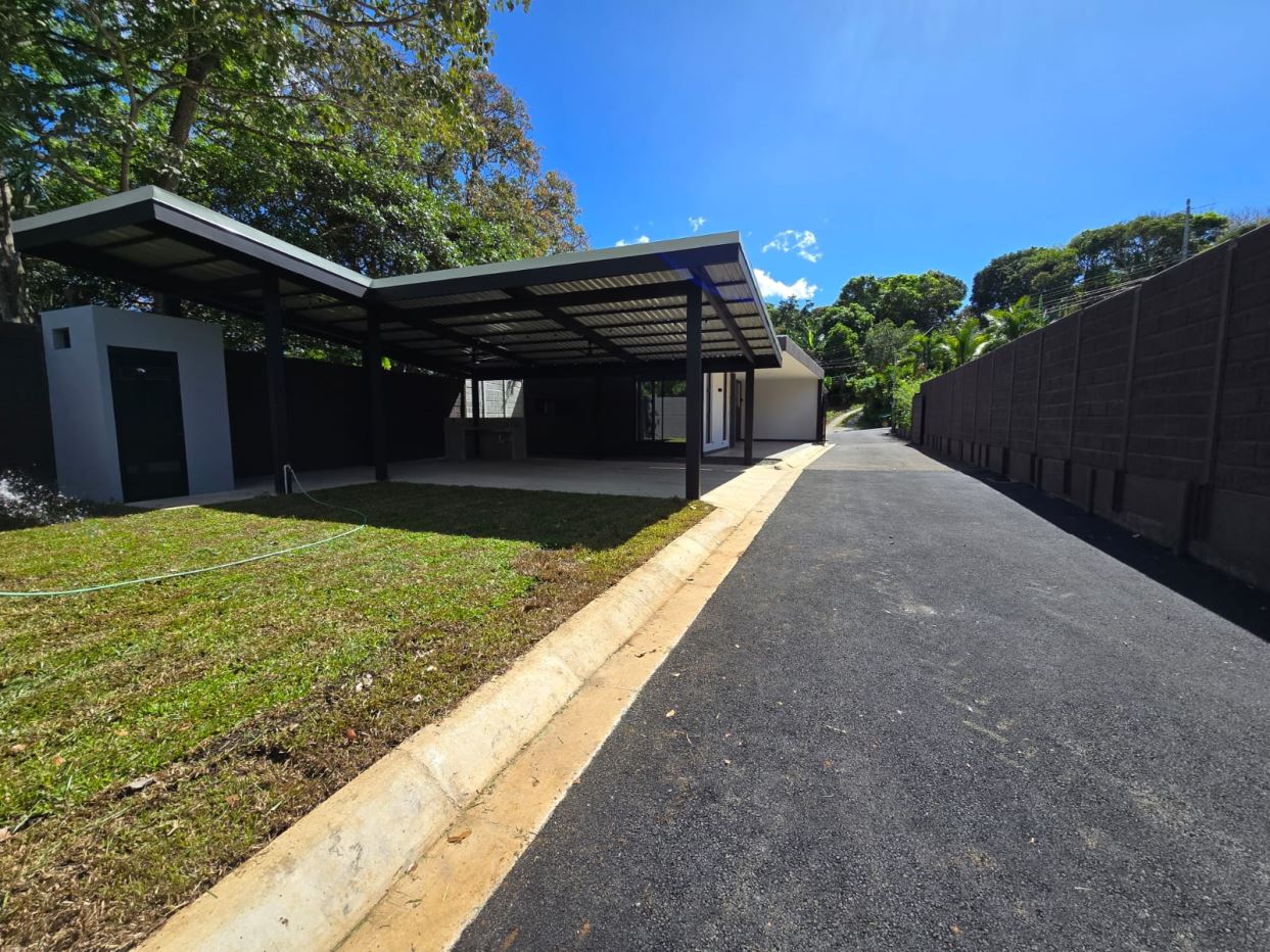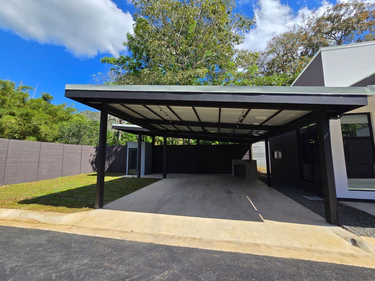 Ideal house for a couple with a child or a single person. Value is very accessible and even negotiable. Newly built all in block located 10 minutes from Atenas Center in Morazan de Atenas. Land is 281m2 and construction is 60m2. 30 meters from the public street in a very quiet and safe area in the best climate in the world. Surrounded by nature, beautiful views. It has 1 bedroom with bathroom, an office that can also be a small room, half bathroom, dining room with an island all in granite as well as the sink. There is a large 2-car garage that can also double as an inviting social bbq area with an adjacent 1/2 bathroom Wide glass windows and doors. All fenced and with electric gate and alarm in the house.