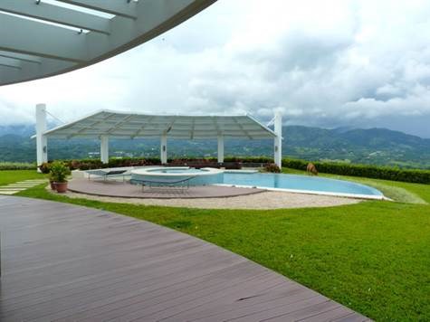 This amazing home is the epitome of modern meeting the beauty of the Atenas countryside. This home features wide panoramic views of the city and town area of Atenas. This home features a contemporary shell-like pool area with pool side seating perfect for entertaining guests. The home’s kitchen and living areas provide the utmost in comfort and modernity.