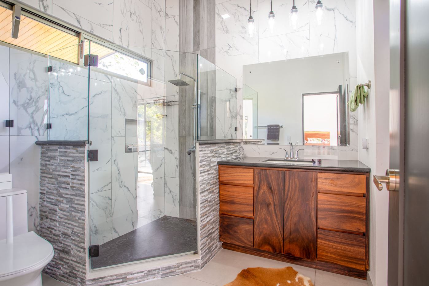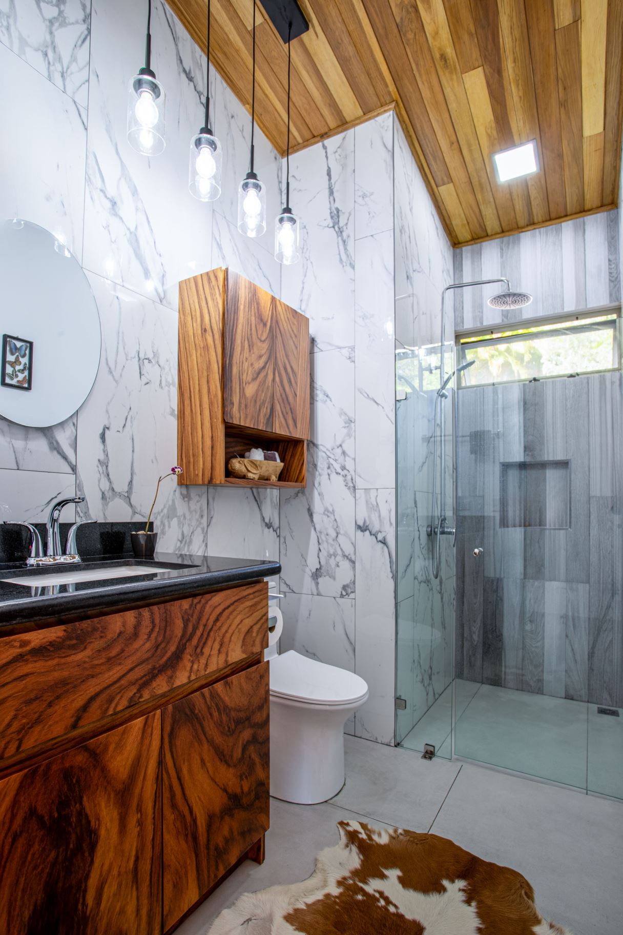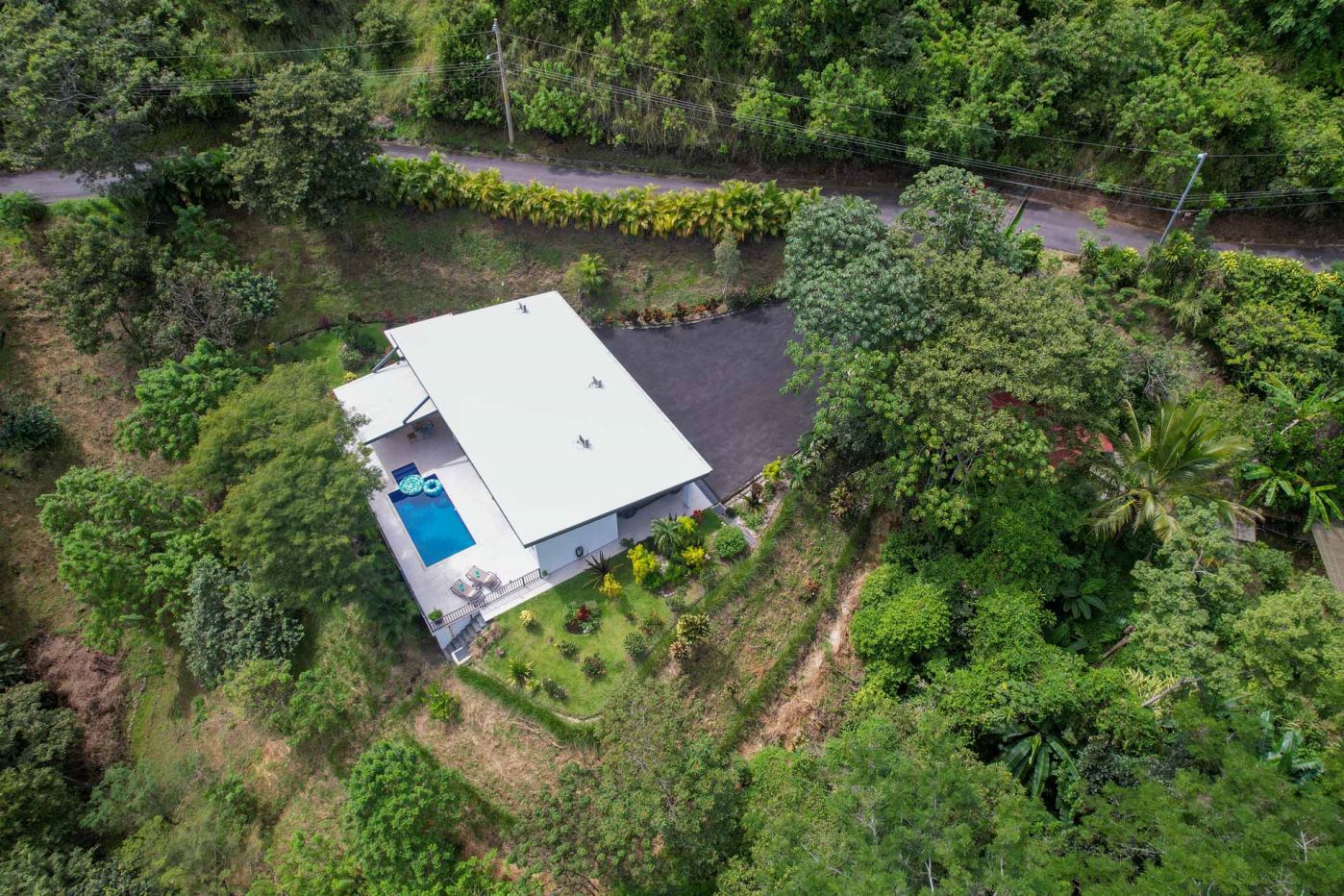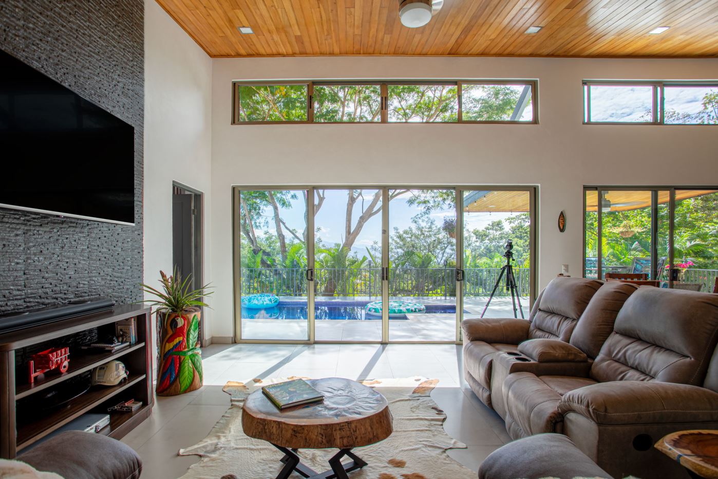 This modern furnished gem that features the latest in modern amenities and finishes can be found in the natural primary forest setting of Hacienda Atenas, on of the most premier communities in town. Located just 9 minutes from town center this home is tucked in a private enclave with plenty space in between the neighbors on a 1.75 acre lot. The long private driveway leads to the 2 car carport and the the formal entry.