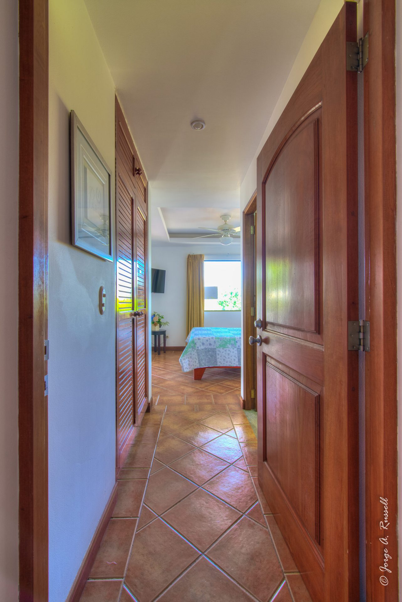 The residence unfolds across three thoughtfully designed levels. On the first floor, you will find two bedrooms that share a peaceful terrace overlooking the tropical surroundings. This level also includes covered parking for two vehicles and generous storage space. It’s ideal for long-term living or extended stays.