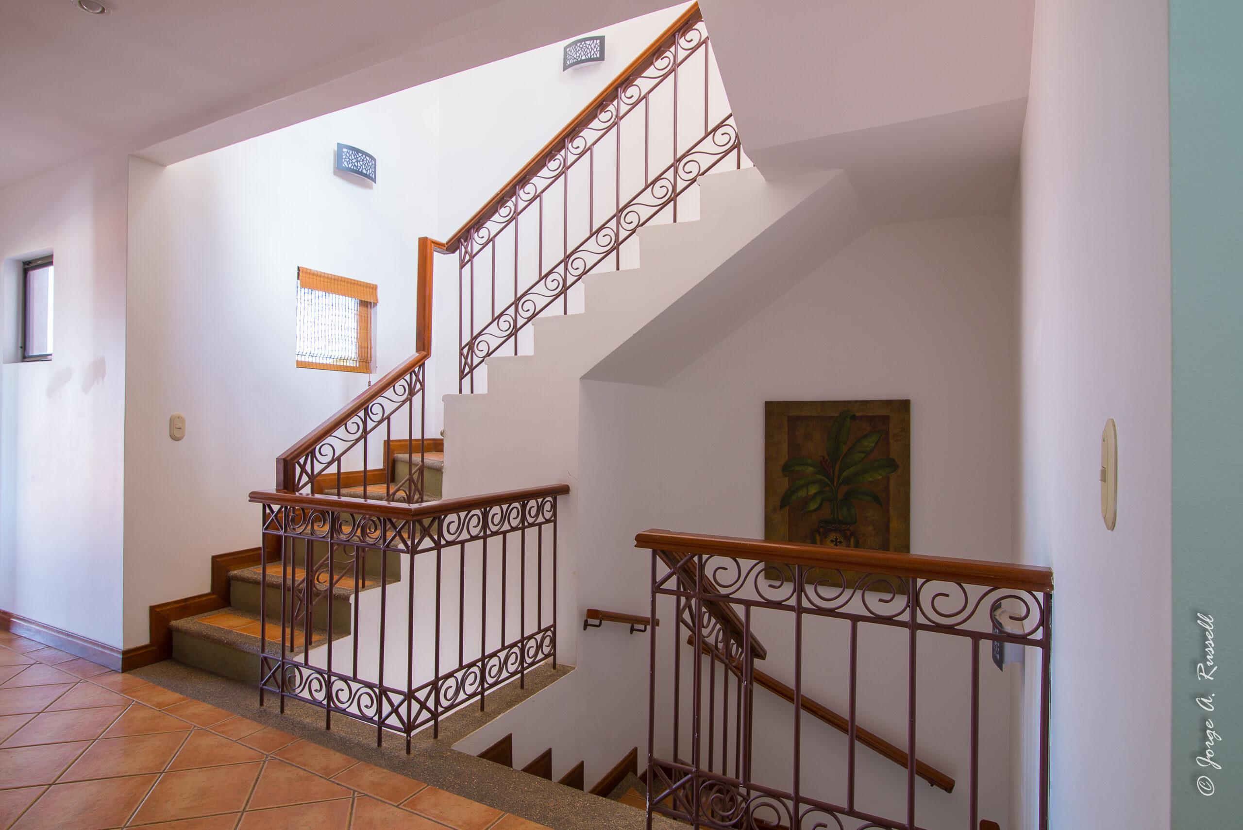 The second floor is dedicated to the master suite. It features a spacious closet, a full bathroom with a relaxing tub, and its own balcony where you can enjoy serene moments and gentle breezes. Transitioning to the upper level, the home reveals its most captivating space: the social area. A large living room, dining space, and a beautifully equipped kitchen open onto a wide terrace and private pool. From here, you can enjoy sweeping views of the Gulf of Nicoya, the peninsula, and the captivating sunsets that paint the sky each evening.