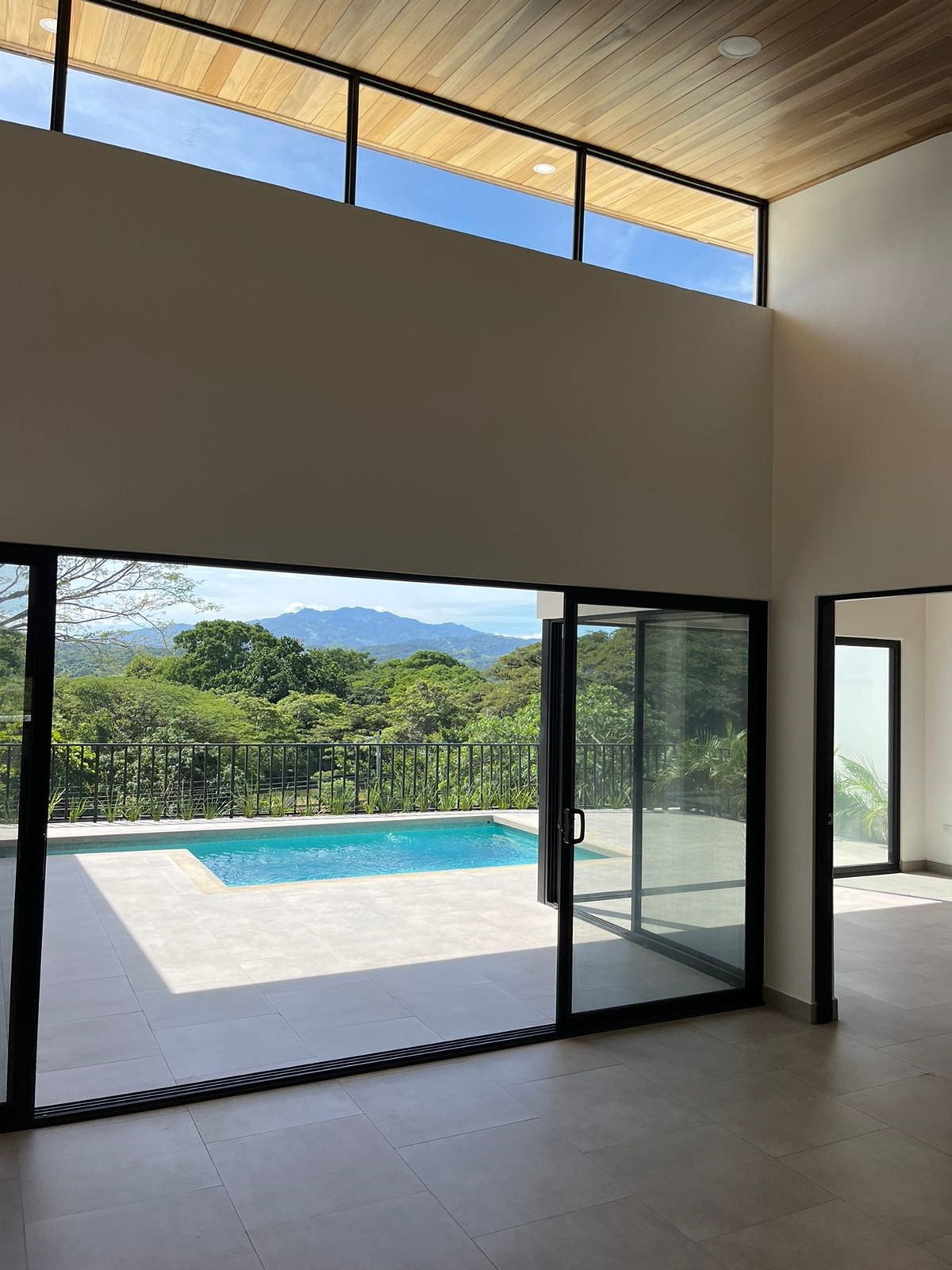 New modern home in Atenas located just a couple minutes from the new highway 27 and a short drive to town center. This nicely designed home features an inviting pool and deck area with views of the area mountains. There is more than enough room for a formal living and dining room as well as space for an office niche. There two parking stall areas and plenty of room in the storage area.