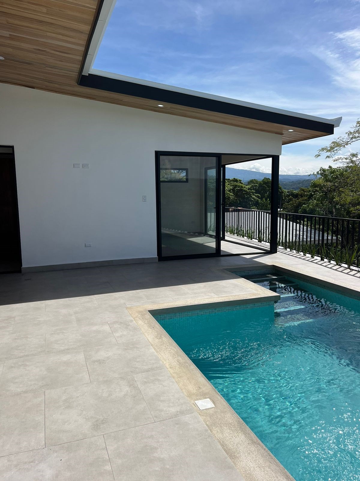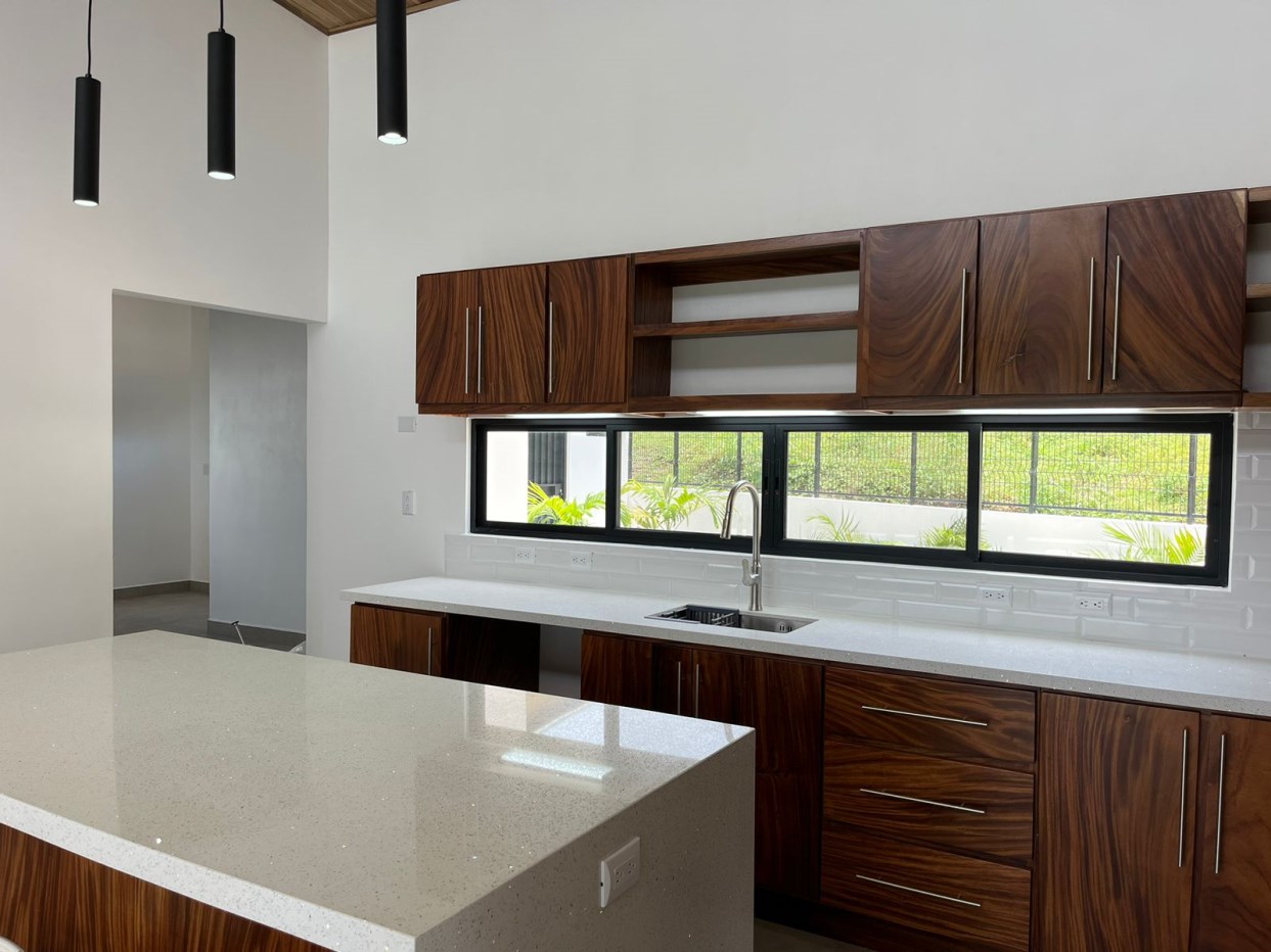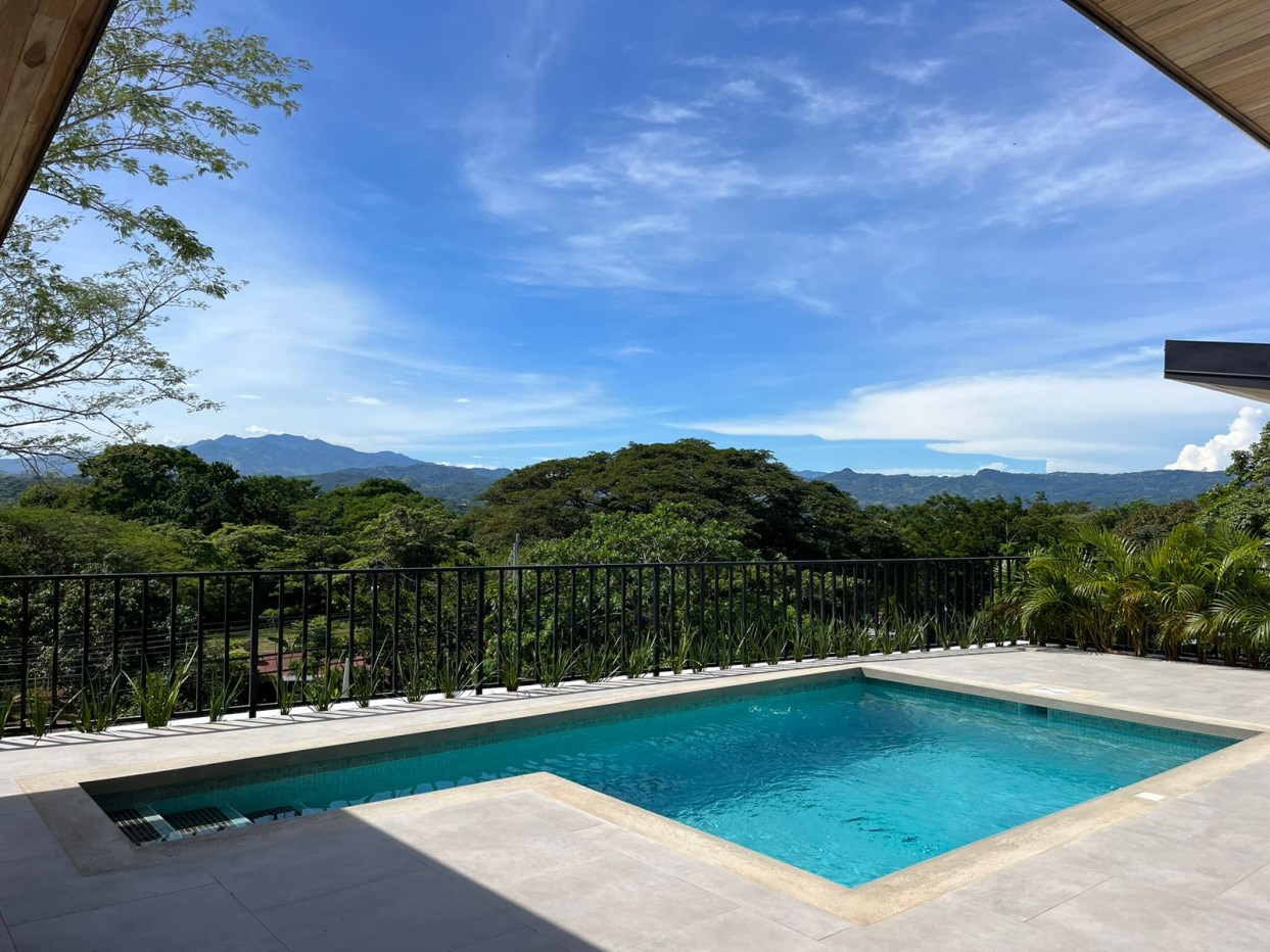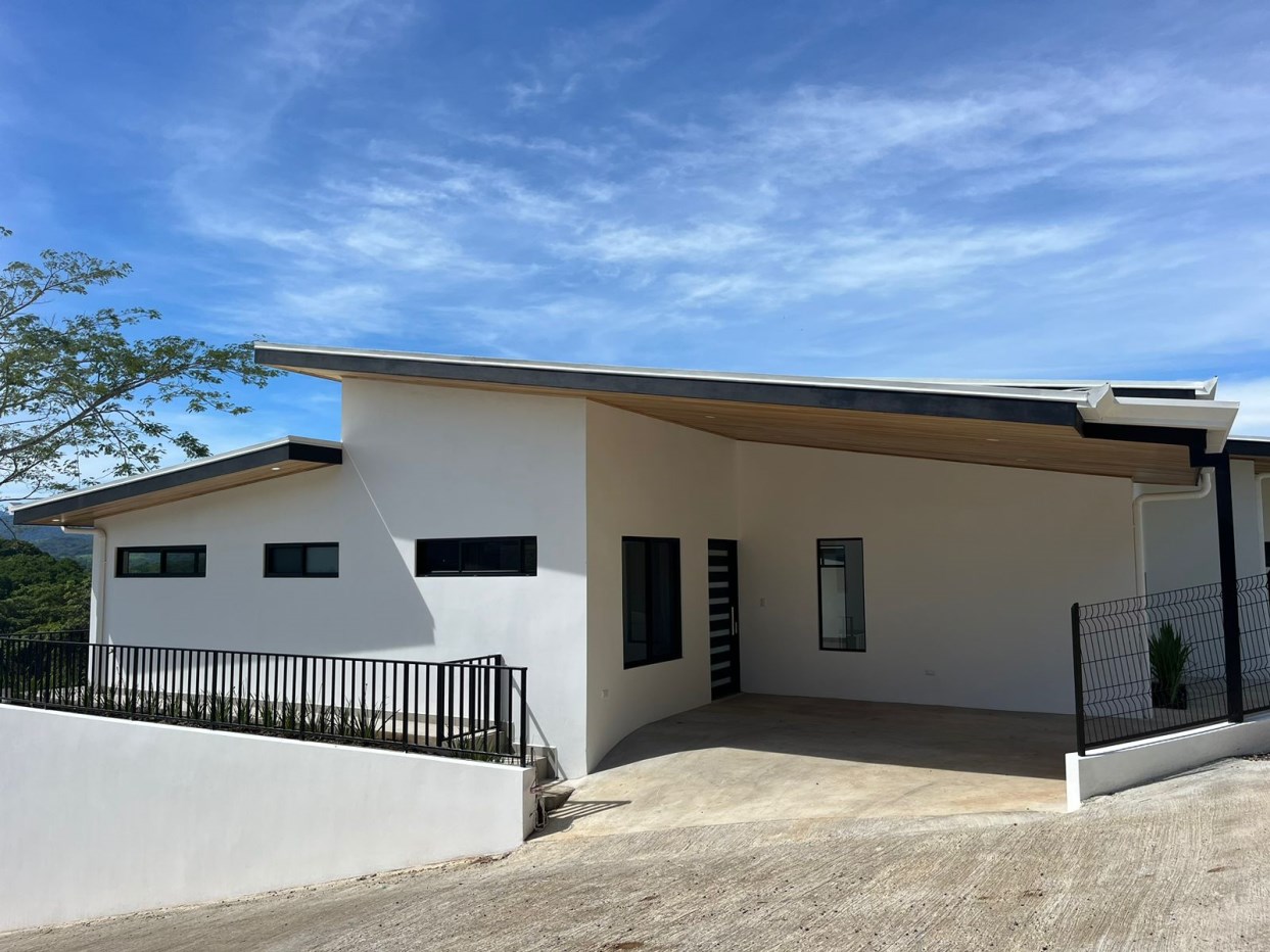 New modern home in Atenas located just a couple minutes from the new highway 27 and a short drive to town center. This nicely designed home features an inviting pool and deck area with views of the area mountains. There is more than enough room for a formal living and dining room as well as space for an office niche. There two parking stall areas and plenty of room in the storage area.