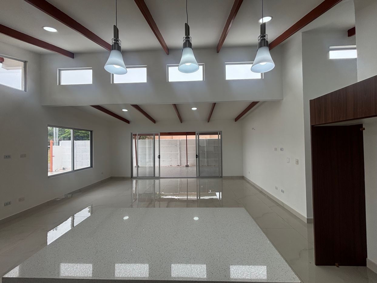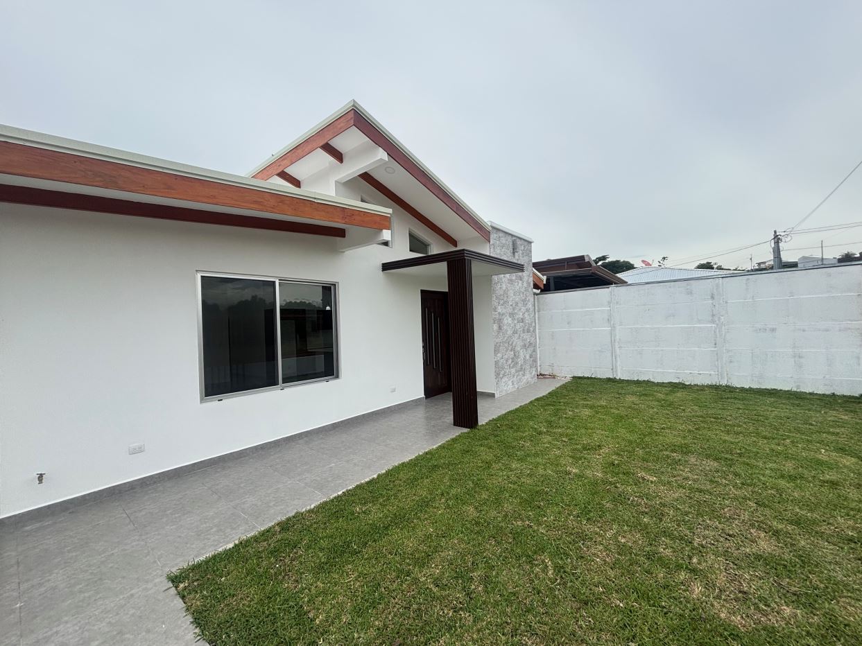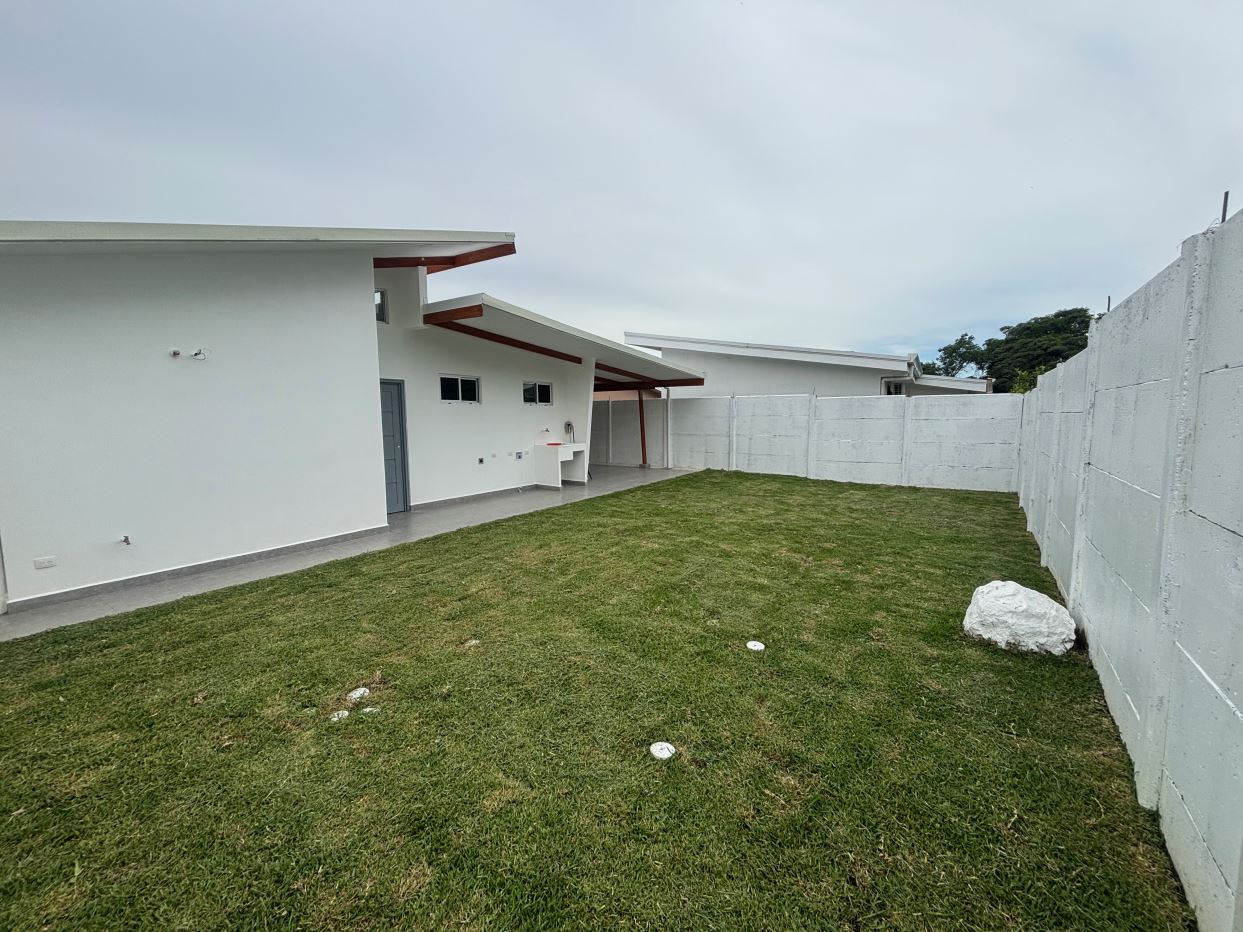 New modern style home in the Atenas countryside with big canyon views.  This 3 bedroom and 2 bath home is less than 10 minutes from town center in the countryside in a newer neighborhood with plenty of nice similar newer homes with a paved road and all services to the property..  This home is at the end of a small street and has modern sleek finishes throughout.  An ample and inviting living room with kitchen.  The is a nice size yard with a big porch ideal for outdoor living.