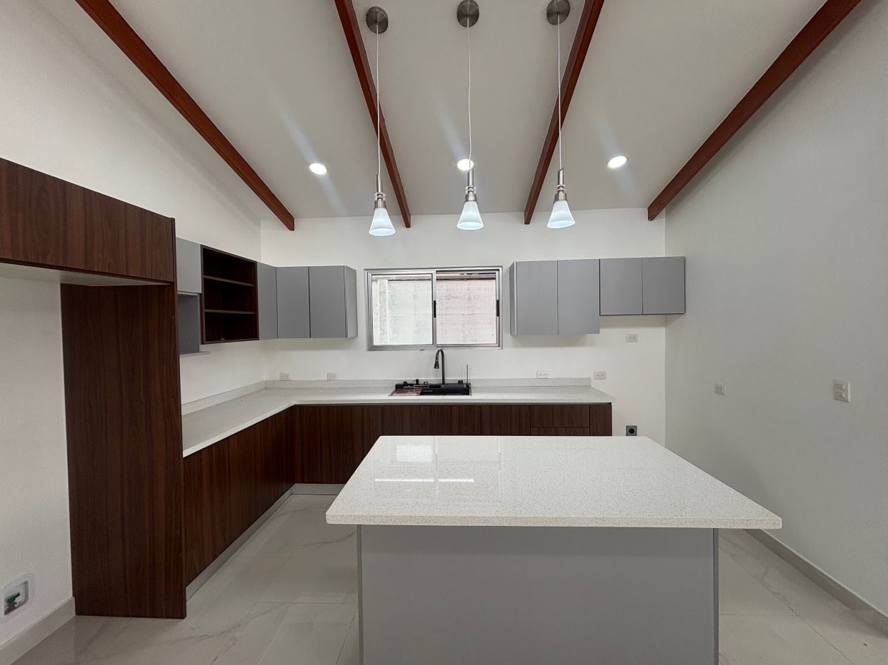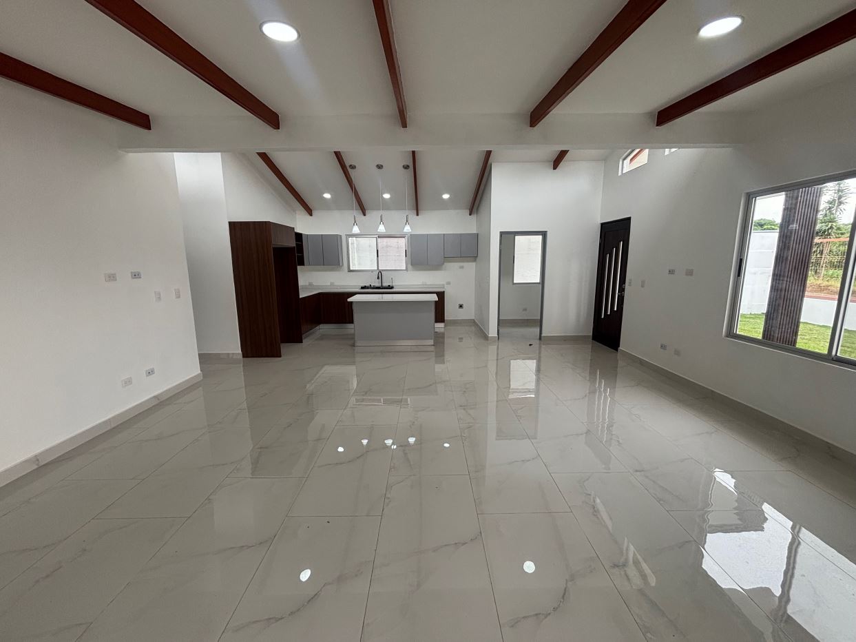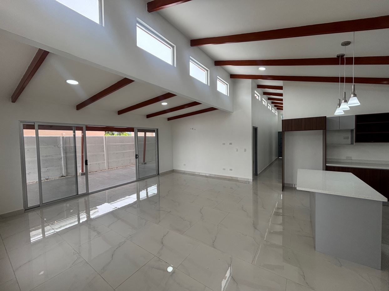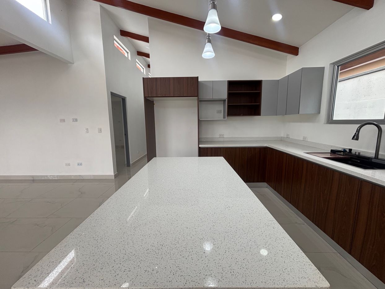 New modern style home in the Atenas countryside with big canyon views.  This 3 bedroom and 2 bath home is less than 10 minutes from town center in the countryside in a newer neighborhood with plenty of nice similar newer homes with a paved road and all services to the property..  This home is at the end of a small street and has modern sleek finishes throughout.  An ample and inviting living room with kitchen.  The is a nice size yard with a big porch ideal for outdoor living.