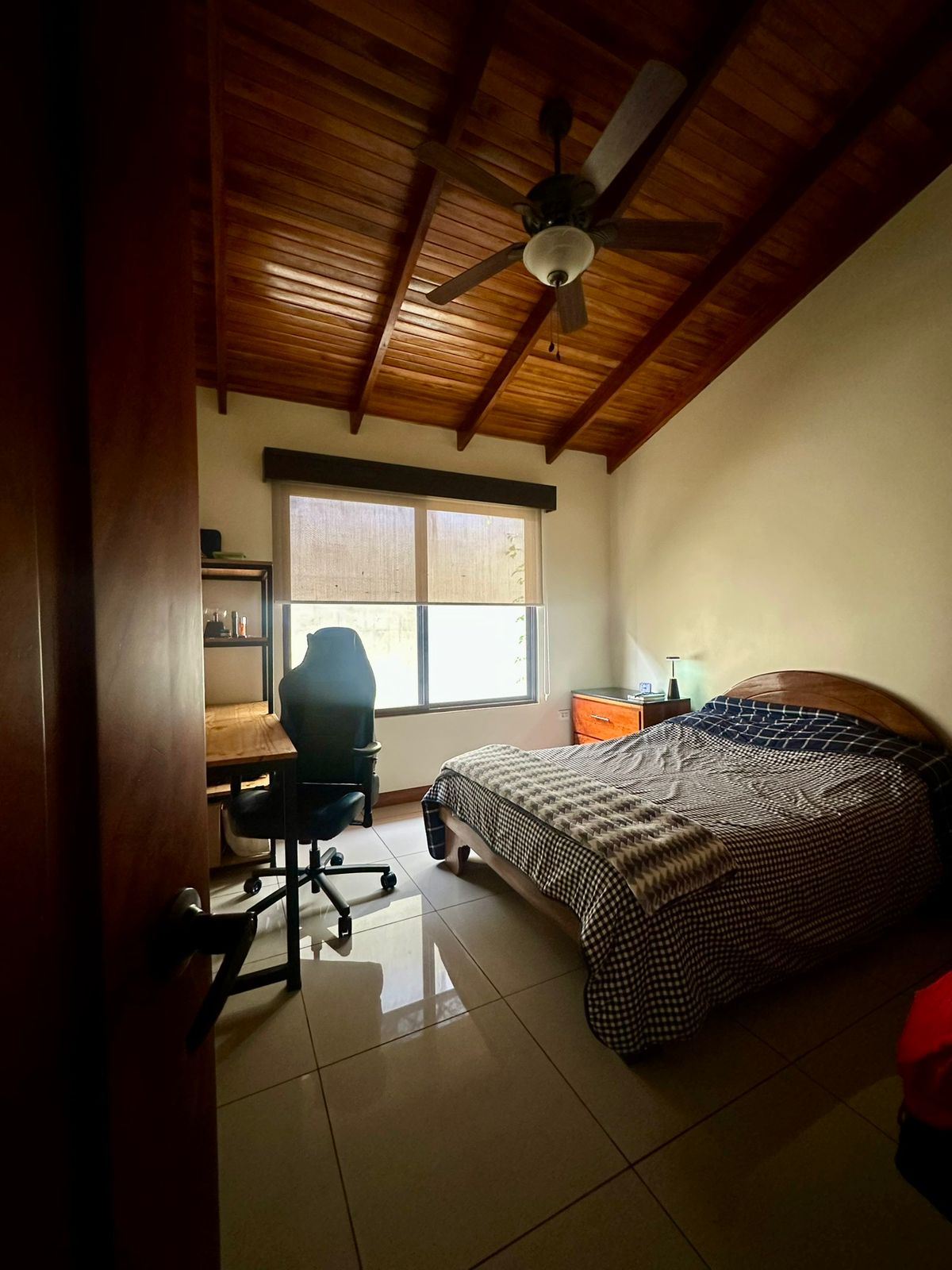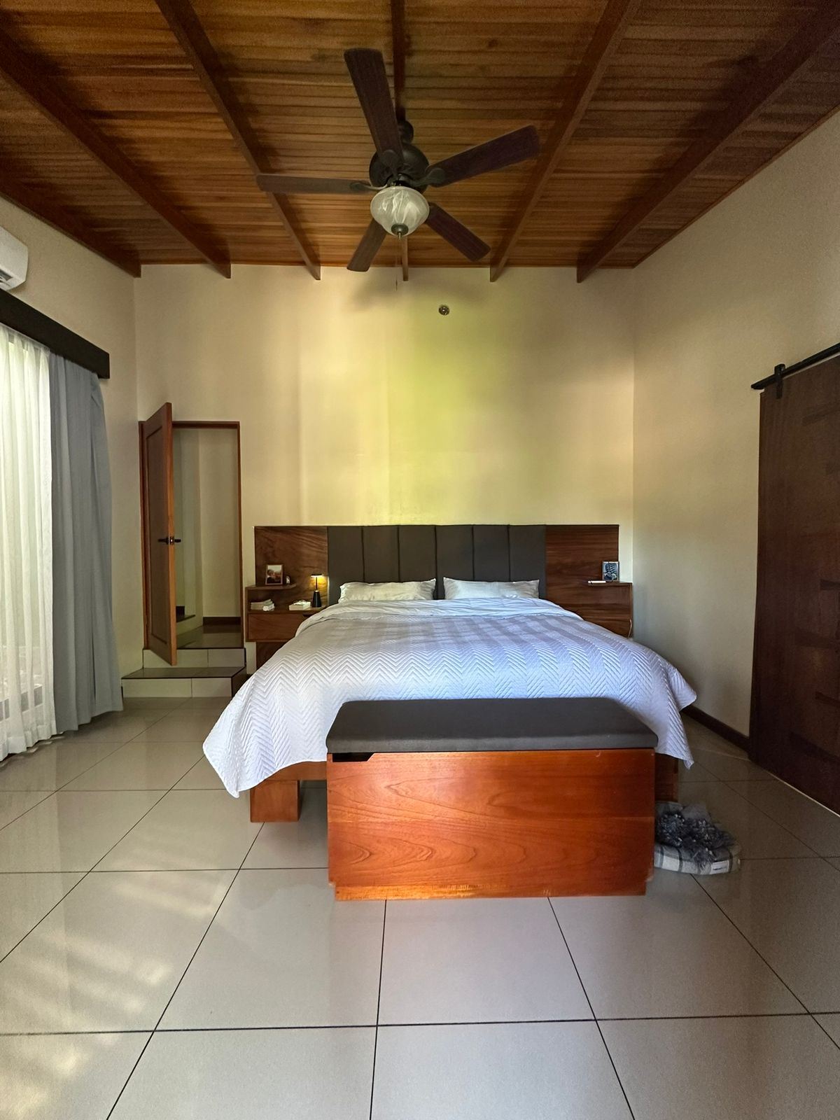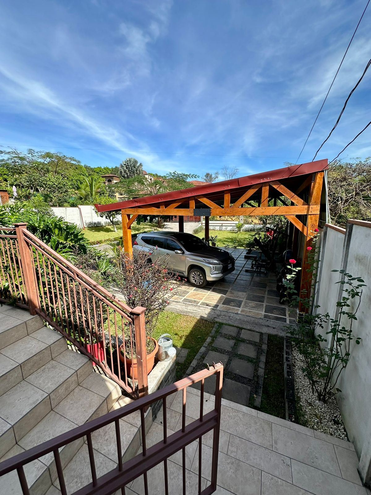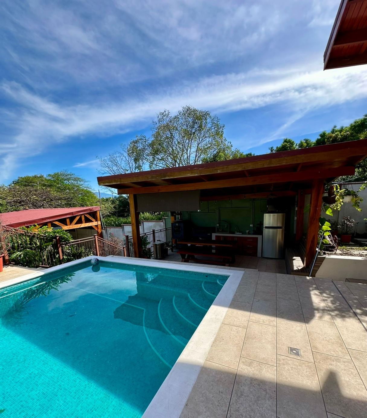 This nicely laid out and designed home is located just about 7 minutes from Atenas Center at the end of a quiet countryside community.  It features an entry with plenty of room for parking and entertaining with an inviting pool and deck area where one can enjoy the perfect Atenas weather.  There is an adjacent bbq area and side yard with lush landscaping.  The home is an open concept with 4 bedtooms and 4 baths with nice artesenal woodwork throughout.  There is an added office.