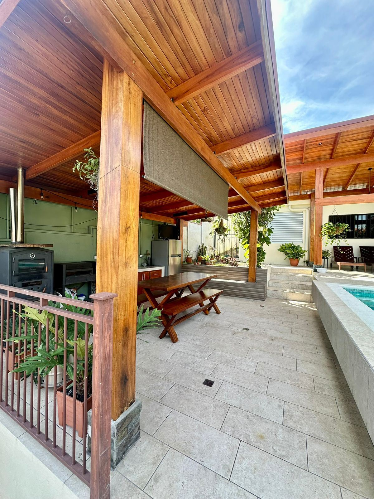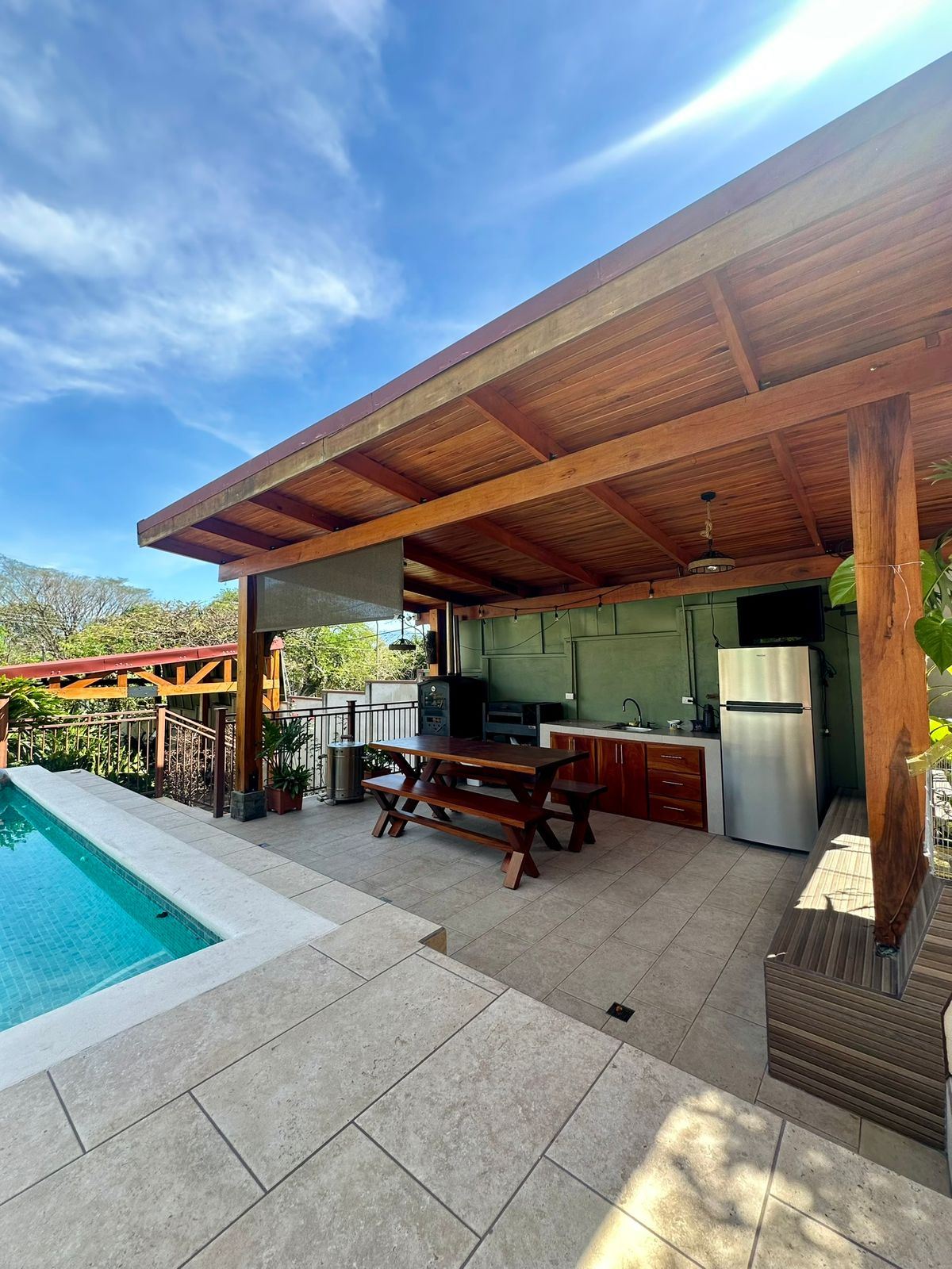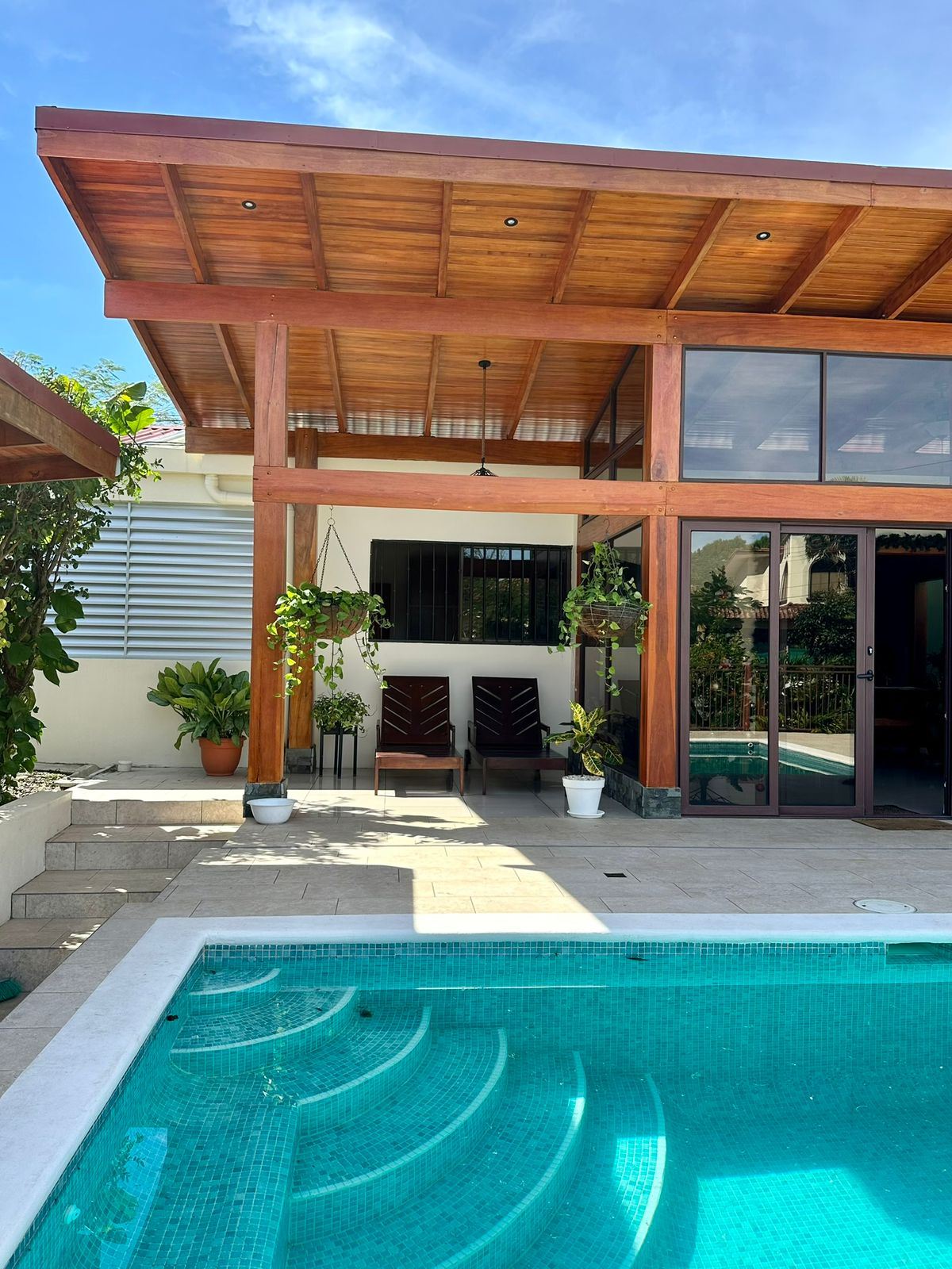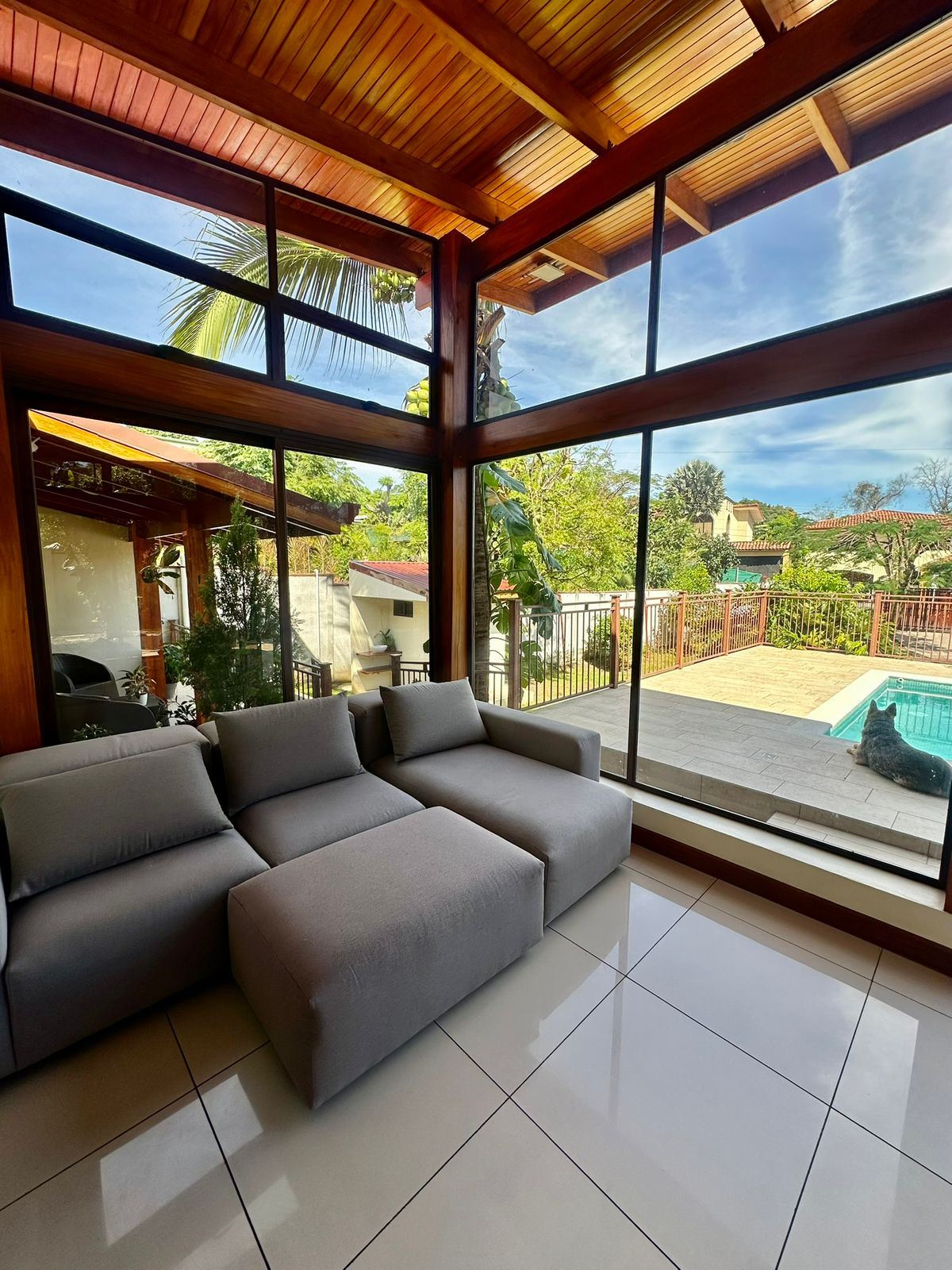 This nicely laid out and designed home is located just about 7 minutes from Atenas Center at the end of a quiet countryside community.  It features an entry with plenty of room for parking and entertaining with an inviting pool and deck area where one can enjoy the perfect Atenas weather.  There is an adjacent bbq area and side yard with lush landscaping.  The home is an open concept with 4 bedtooms and 4 baths with nice artesenal woodwork throughout.  There is an added office.