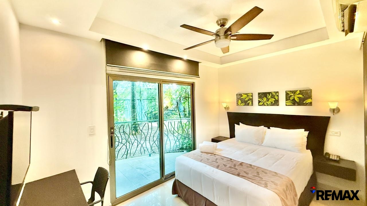 Peaceful & Private Condo in Jaco Beach – Experience comfort, privacy, and effortless ownership in this beautiful 1-bedroom, ground-level condo at Oceano Boutique Hotel & Gallery, located just three blocks from the beach in the heart of Jacó. This residence is tucked away in one of the most private corners of the community, offering peaceful views toward an undeveloped lot—giving you a quiet and intimate atmosphere while still enjoying full access to Oceano’s premium amenities.