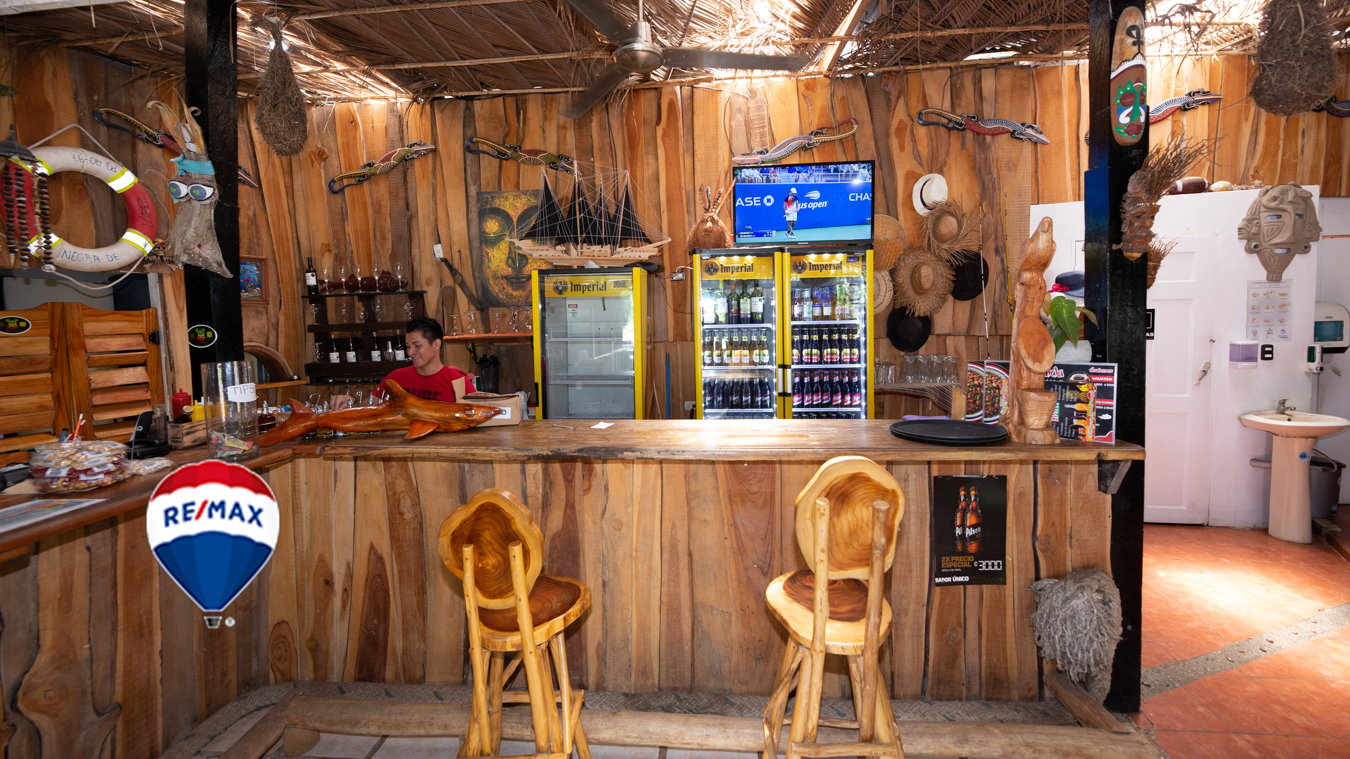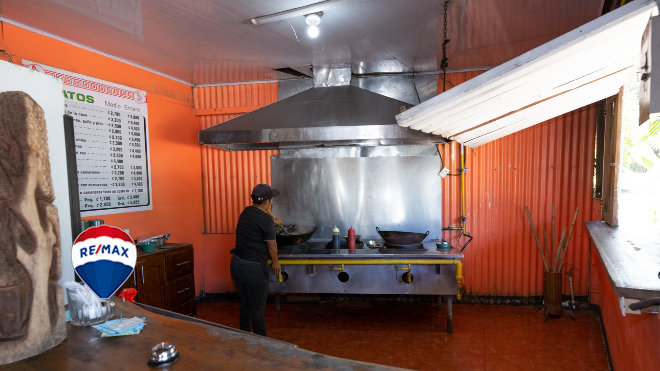 Business Opportunity. This location is currently the home of two successful restaurants, Pizza Express and China Wok, and is located at a key crossroad in Esterillos Oeste. It is just past the concession zone, making it titled property and an ideal location for businesses, restaurants and cabinas. The current structure is rustic, yet functional and houses 3 small cabinas, two cooking areas, a full bar and dining area.