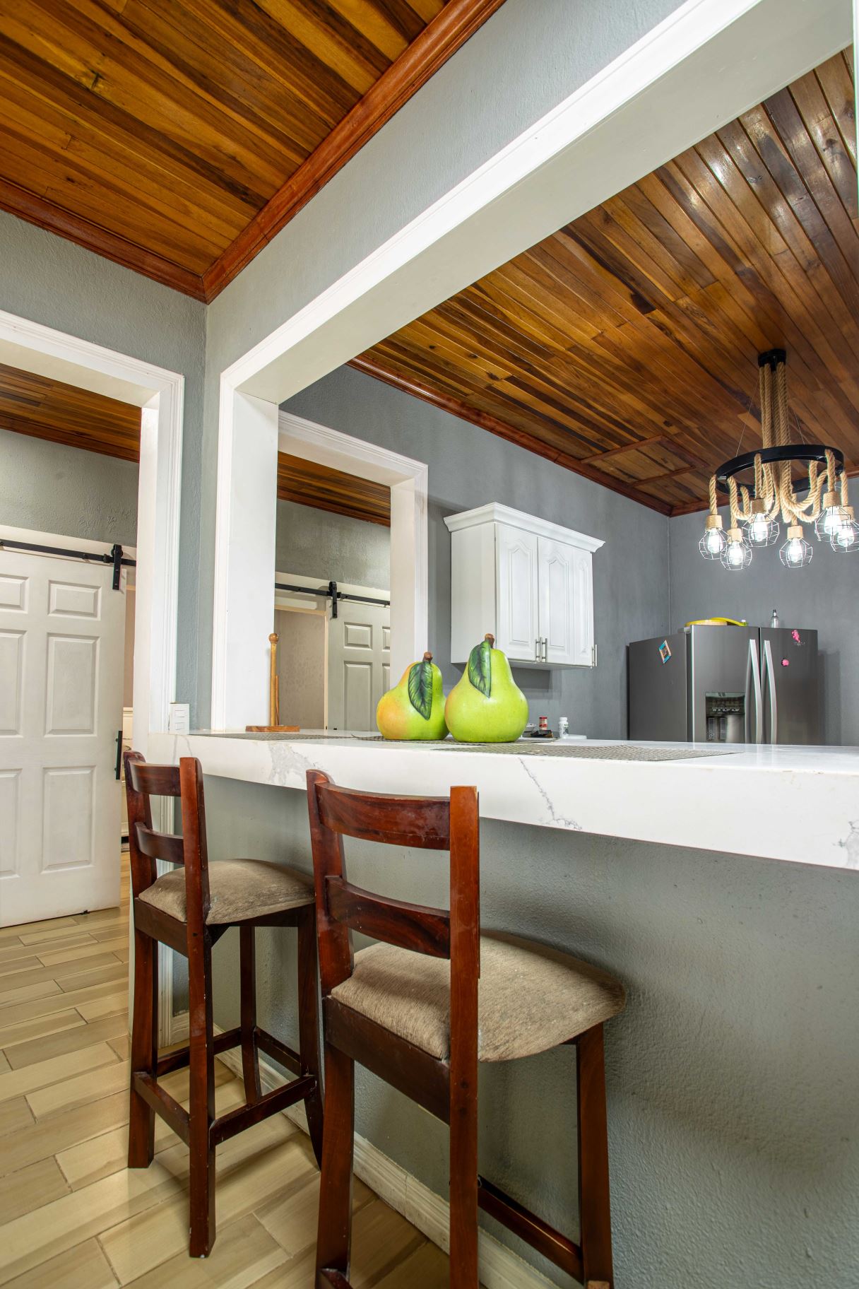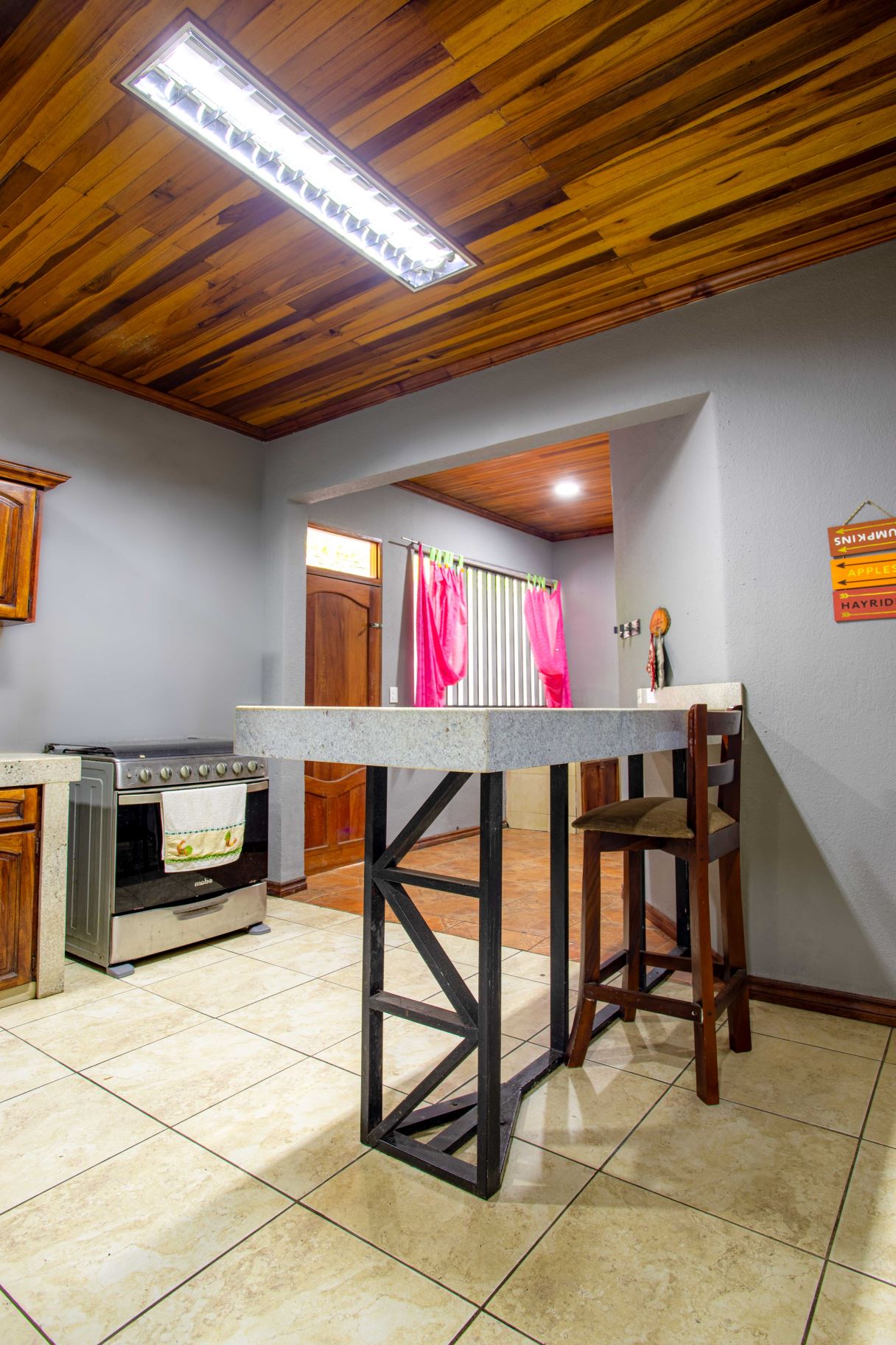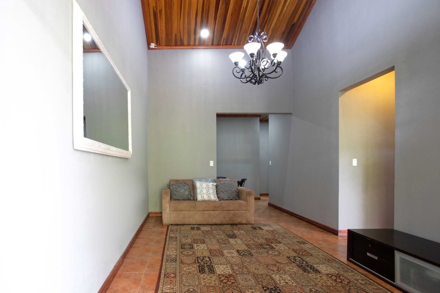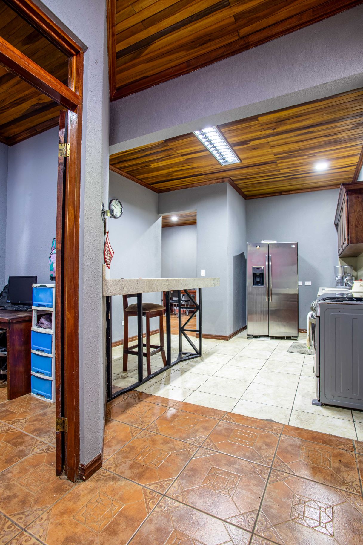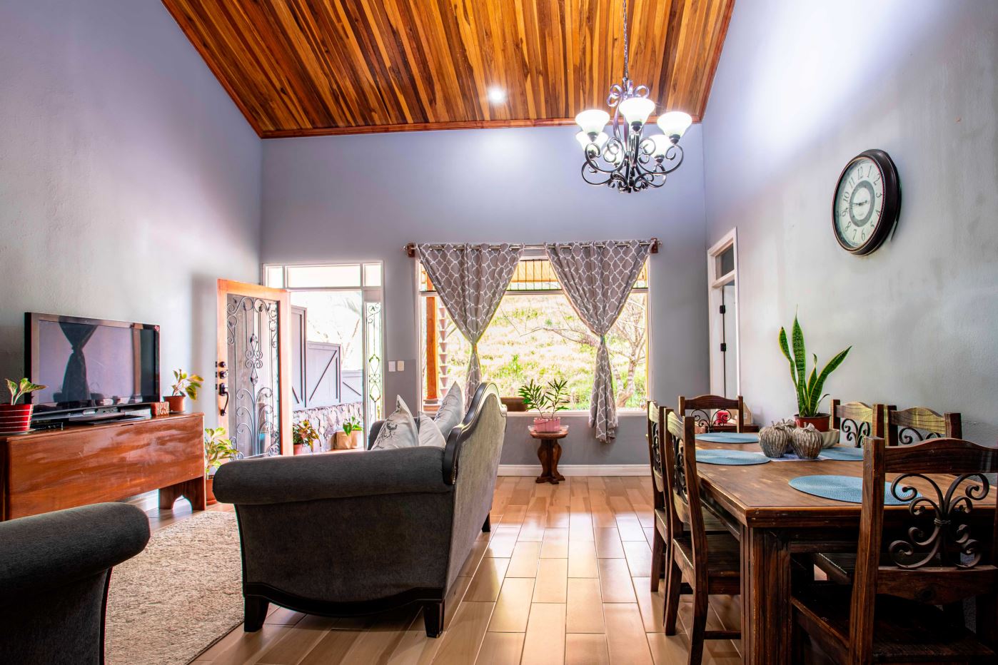 Large 5 room home that could be mixed use located just 4 minutes from town center in a private and natural enroinment adjacent a high end Atenas community. The property features a large entry with plenty of parking with a newly remodeled 2 apartment homes that can be combined to become one, with tall wooden ceilings throughout. The first apartment open floor plan feautures a formal living area, ample kitchen and dining areas. There is an extra large bedroom and ample size guest room with shared bath. The second apartments also has two bedrooms and one bath.