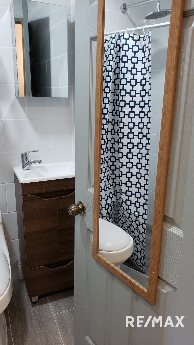 Upstairs, consists of 2 apartments; a 2-bedroom apartment with a private walk-out balcony in the back and one 1-bedroom apartment.