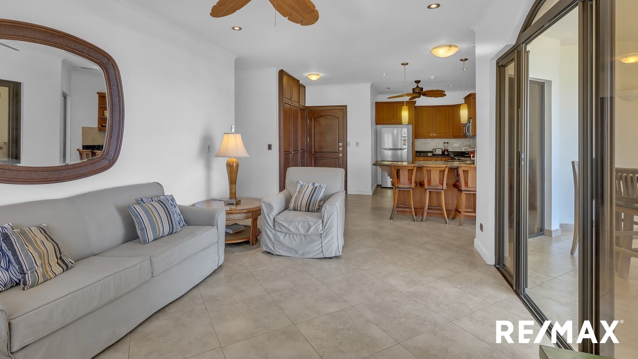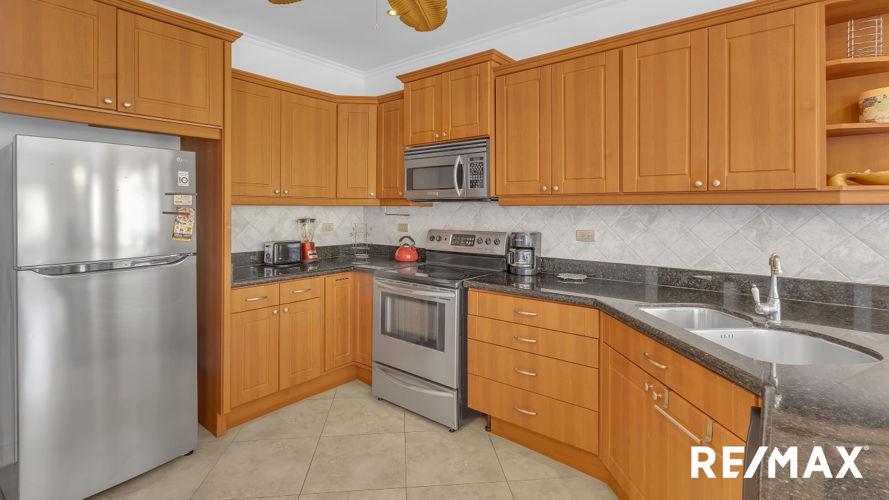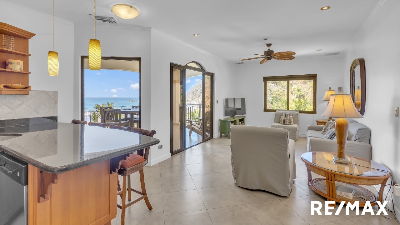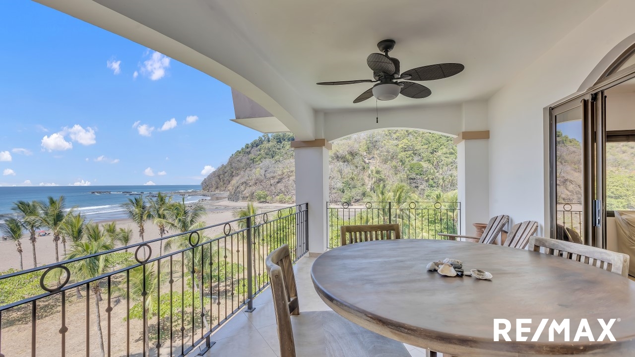 Tres Regalos 502S is a luxury condominium in Jaco Beach with unobstructed views of the ocean. This residence is located on the 5th floor that is the top floor and hosts 2 bedrooms and 2 bathrooms among 1,367 square feet. The living room and kitchen flow to the large oceanfront balcony from where you can see the lush mountains cascading into the sea. The unit is being offered fully furnished and rental ready.