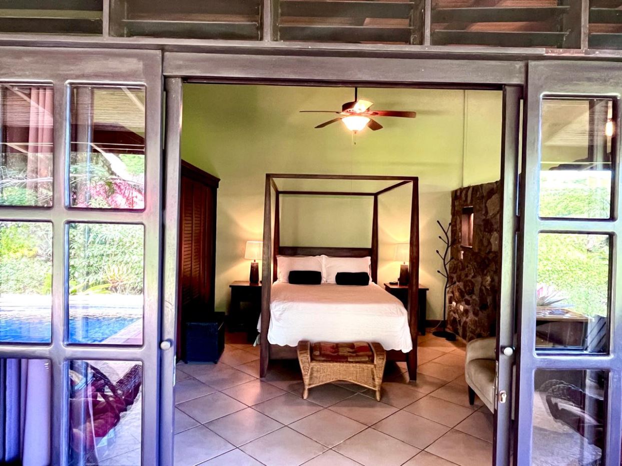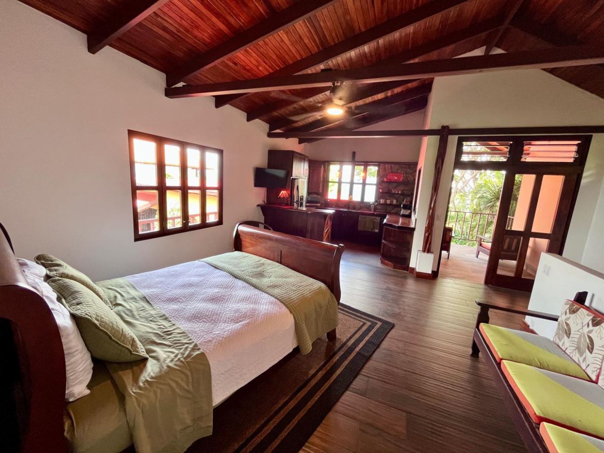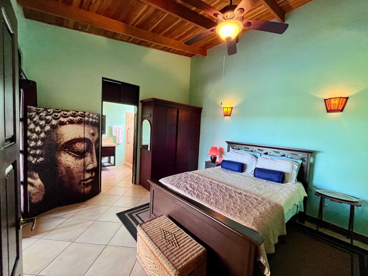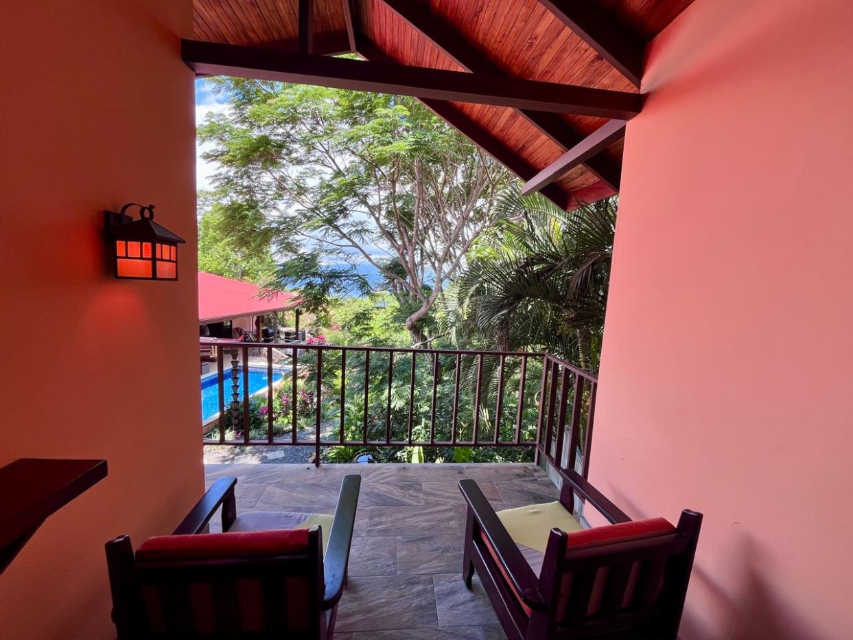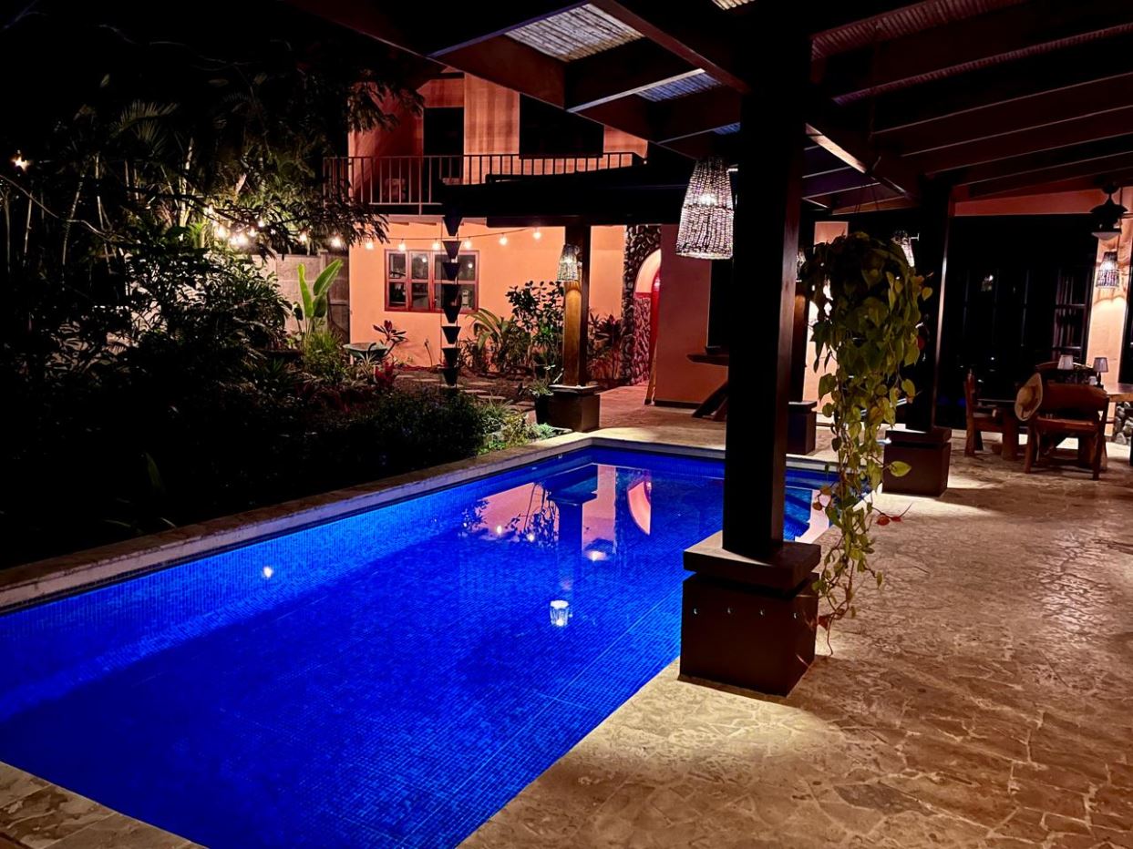 Unique Picaflora home and guest home in one of town’s most exclusive communities. Located just 5 minutes from town center the home sits in a countryside setting adjacent a primary forest with panoramic views of the area mountains and the scenary is full of flora and fauna. The automatic gates opens to a large parking area that leads one to the main home, the formal entry displays the open floor plan with beautiful rock and woodwork throughout. There is an ample remodeled kitchen and sliding doors that lead to the inviting courtyard and pool area. There is a half bathroom near the formal entry and a hallway leads to the guest bedroom suite and further inside is the master bedroom suite and large pantry and laundry areas.