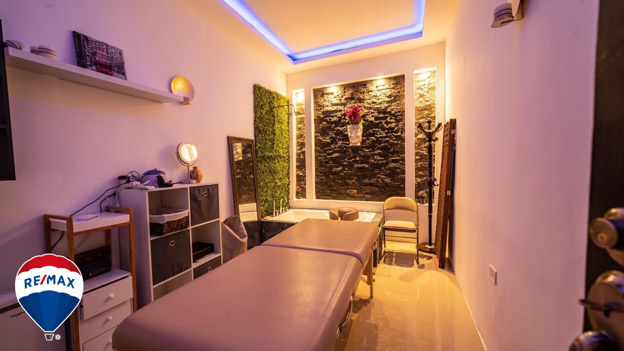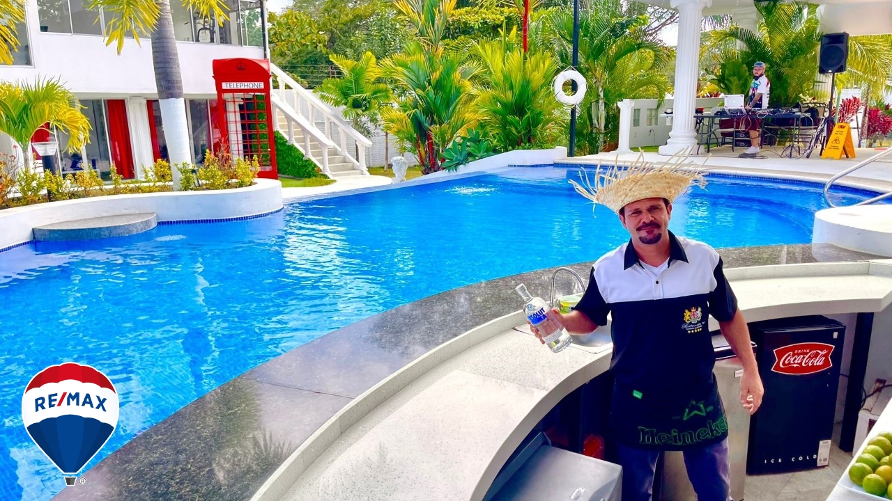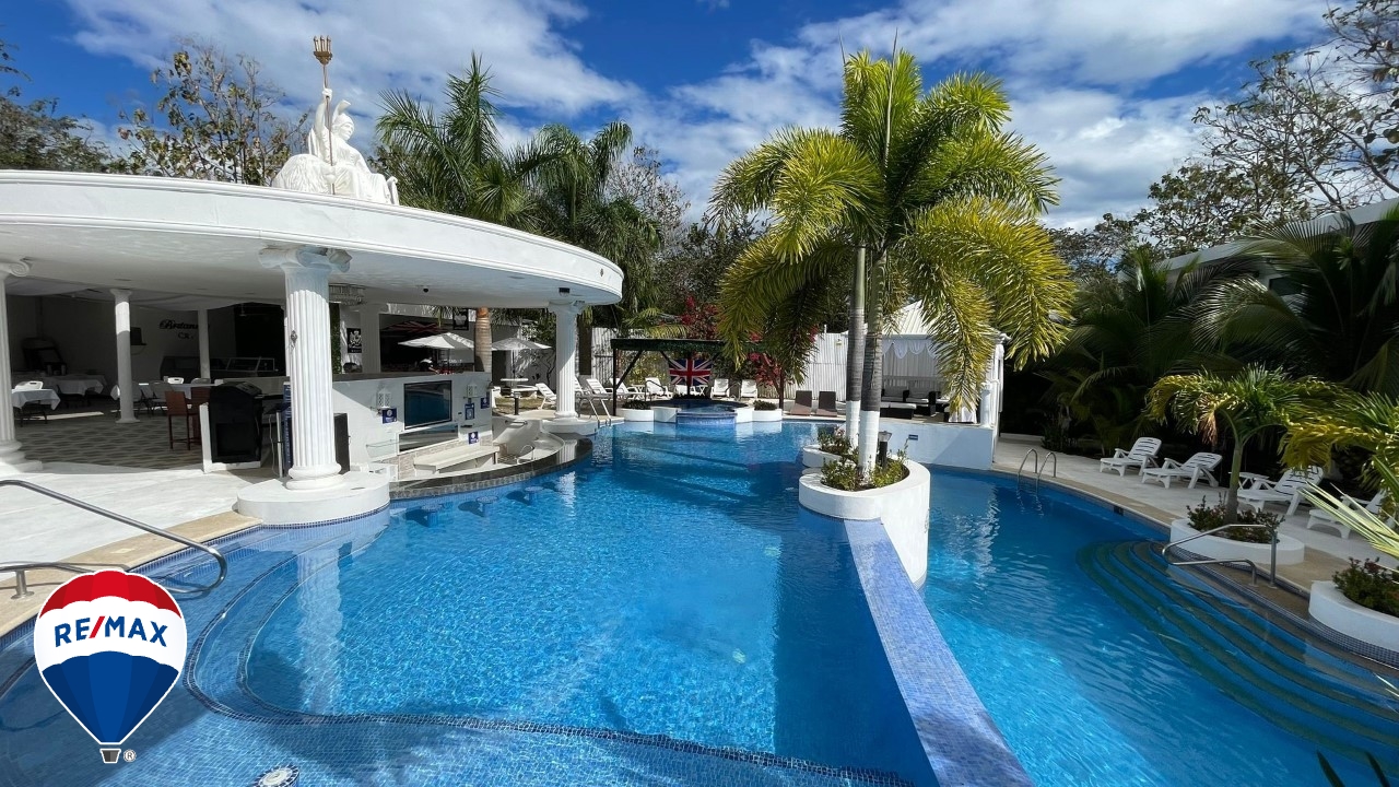 Adicionalmente, contamos con una discoteca con mini escenario, una oficina con aire acondicionado, para administrar eventos al aire libre, el salón de eventos está totalmente equipado, mientras que el área de piscinas ofrece dos opciones: una piscina con aqua bar y asientos de cuarzo y granito, con una profundidad de 1.25m y efectos de propulsión; y una segunda piscina de 1.25m a 2m de profundidad. Ambos espacios se complementan con un bar completamente equipado con cámaras de frío.